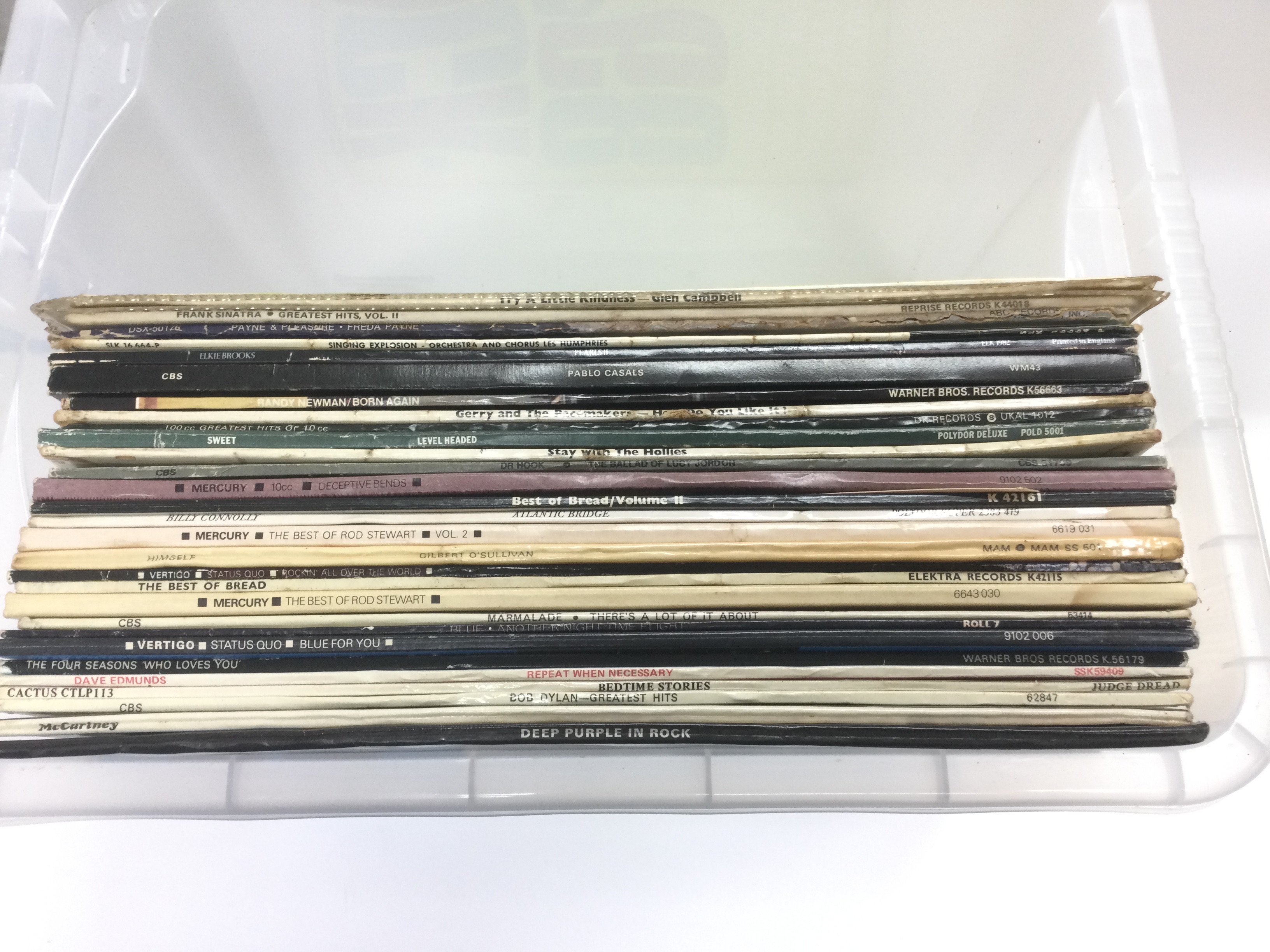 A collection of LPs by various artists including Deep Purple, Atomic Rooster, Paul McCartney and others.