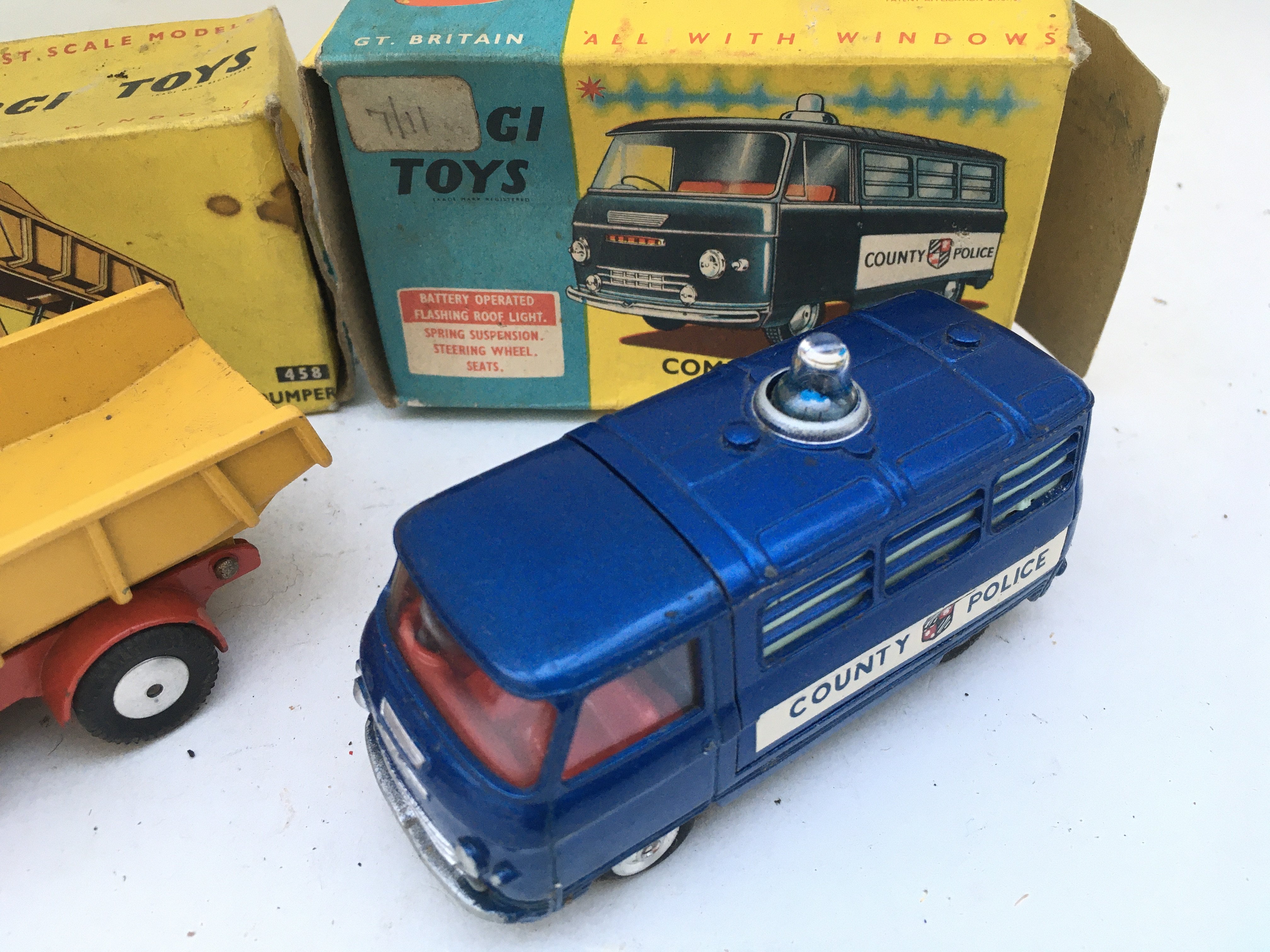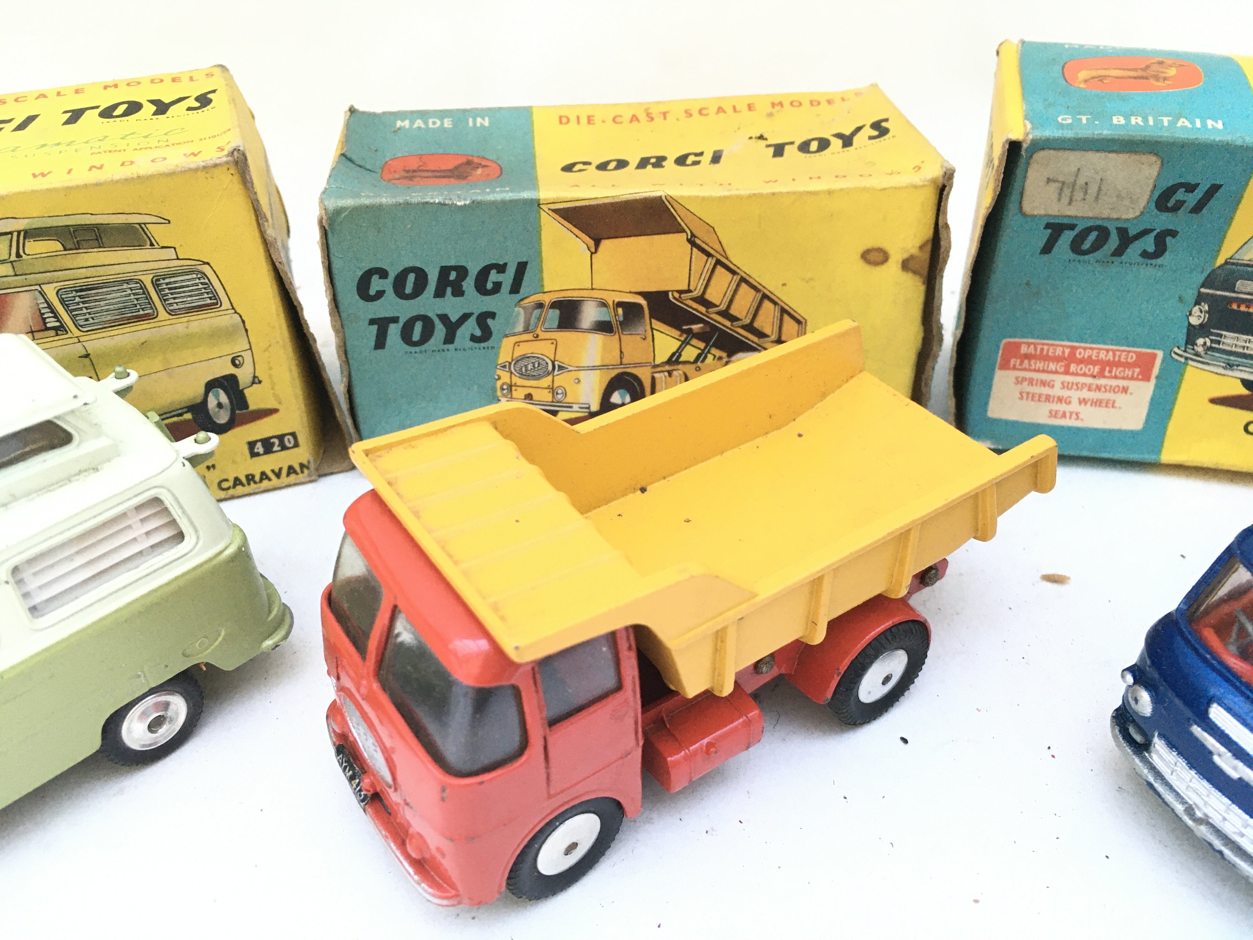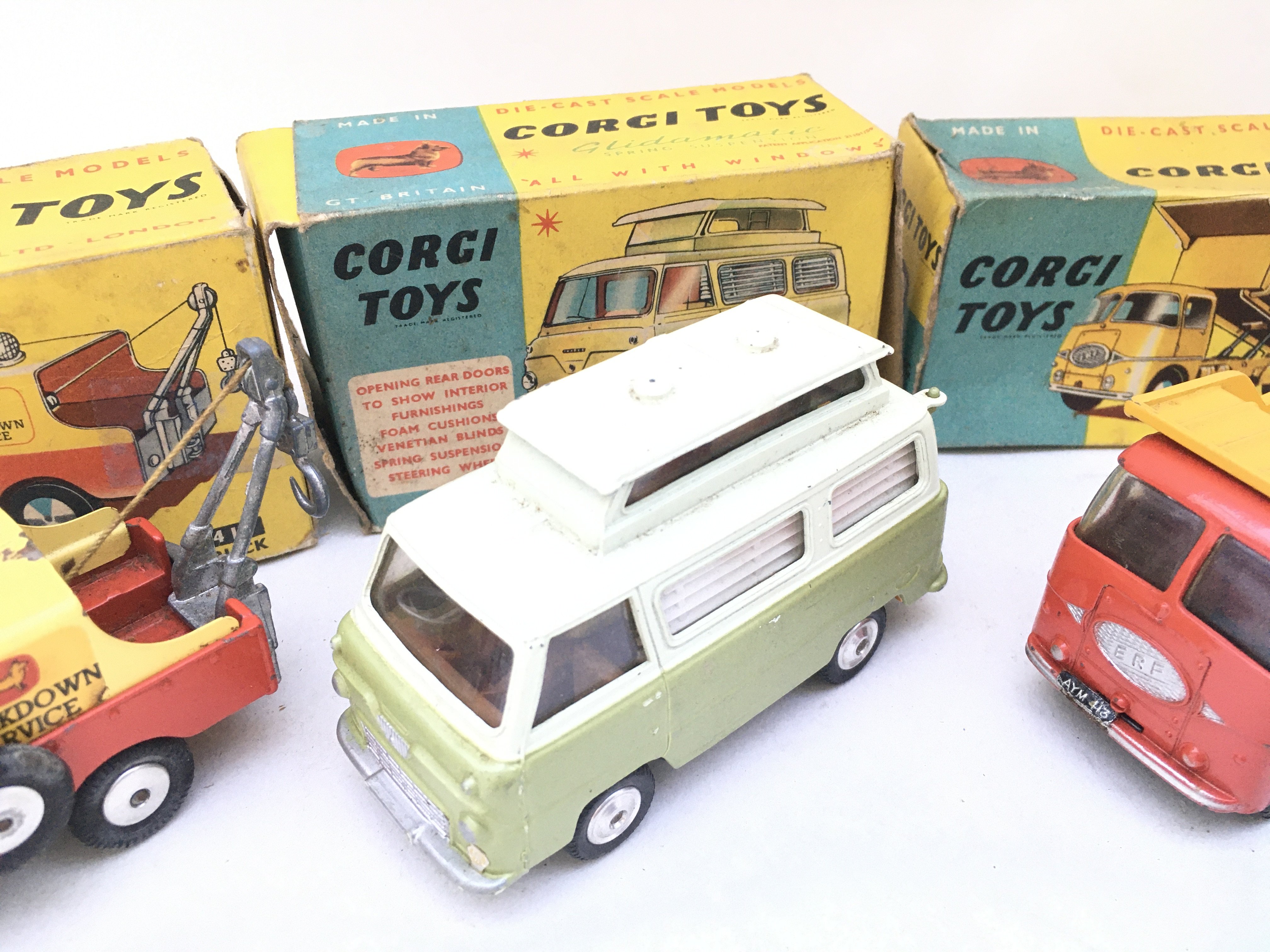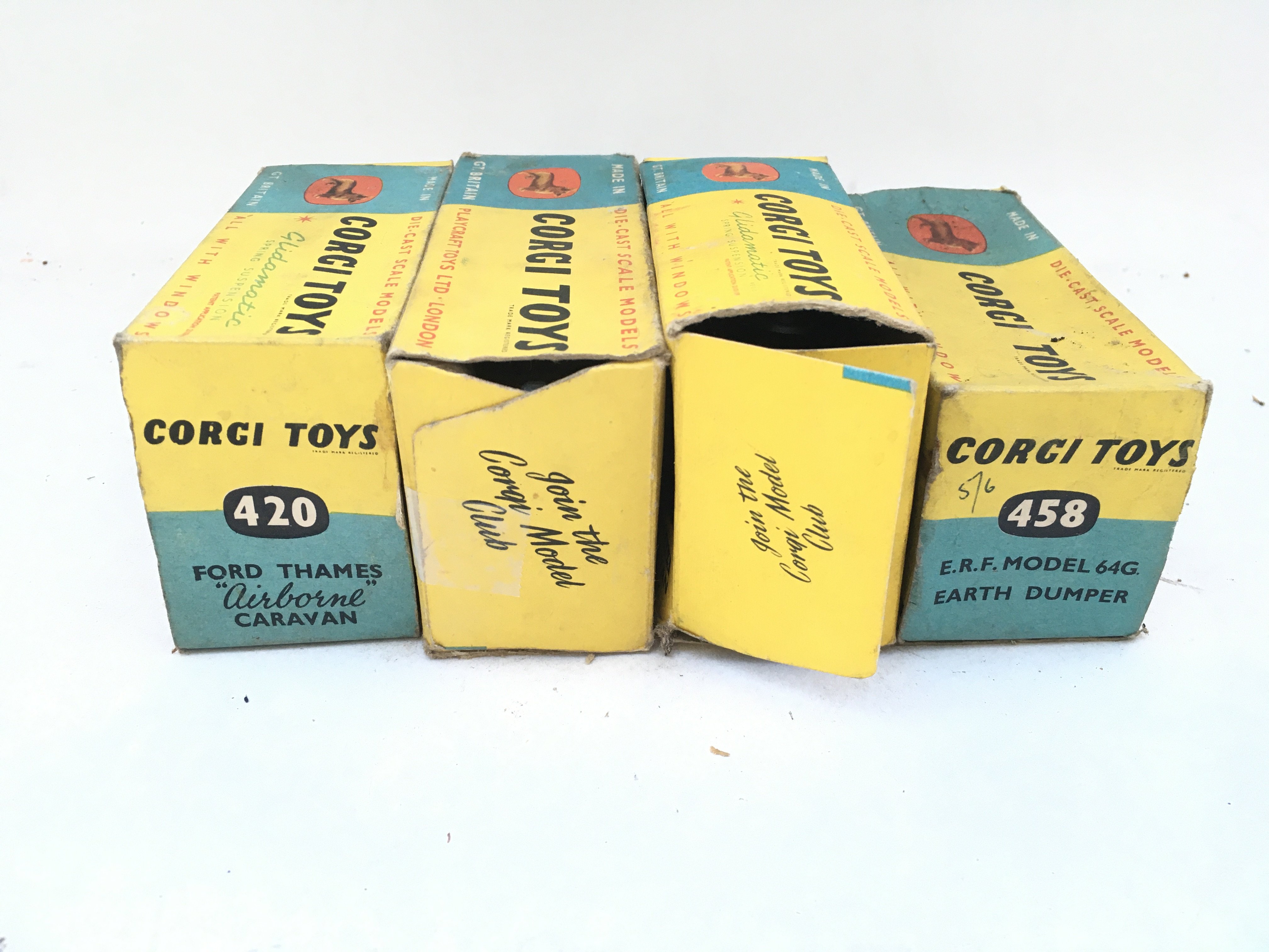 4 X Boxed Corgi Vehicles. A Land-Rover Breakdown Truck #427. A Ford Thames Airborne Truck #420. An E.R.F. Model64G #458 And A Commer Police Van #464.