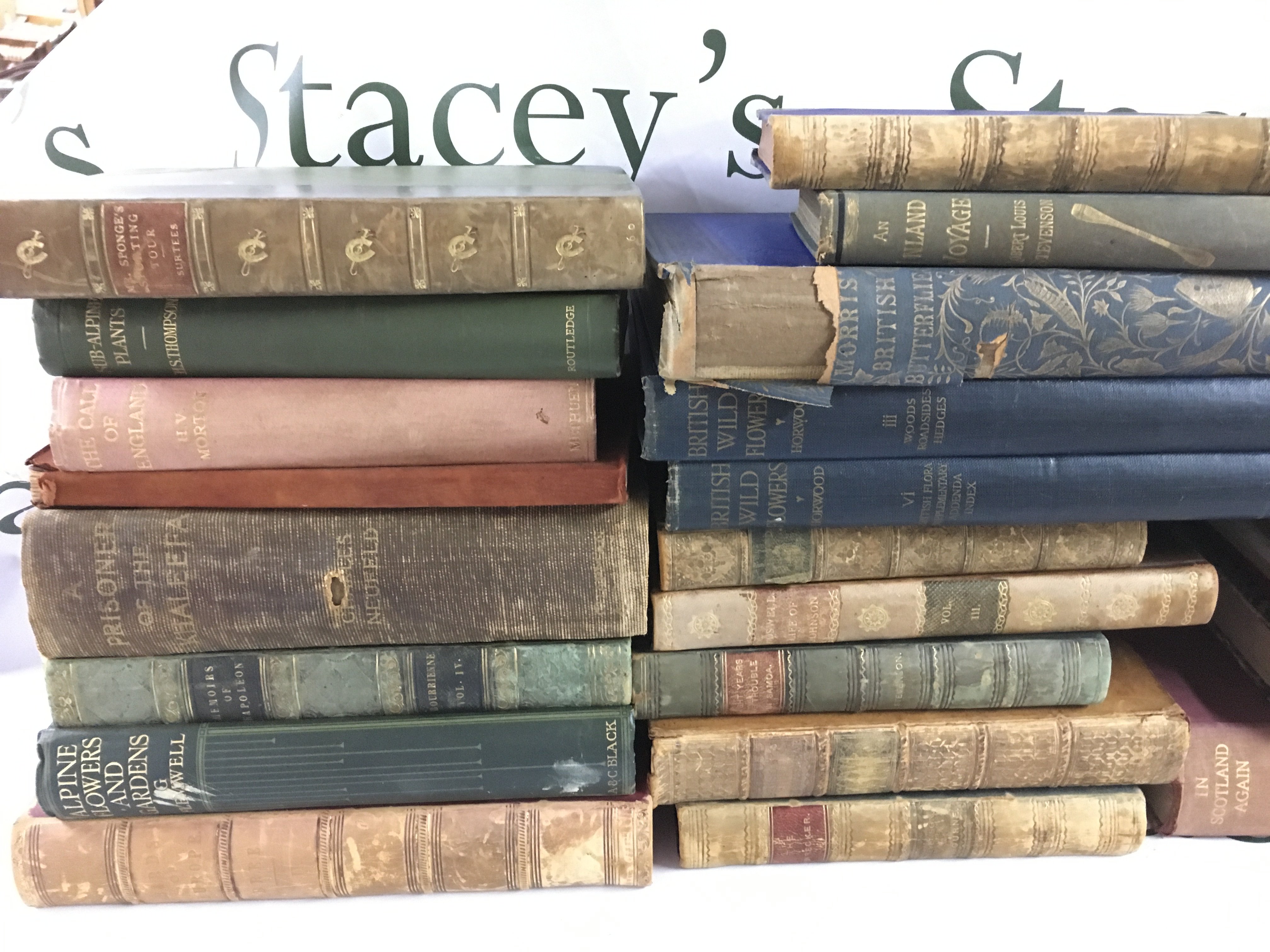 A large collection of vintage books including A Prisoner of the Kitaleefa by Charles Neufeld, In Scotland Again by H.V Morton, Mr Sponges Sporting Tour, Birds of Europe etc. postage category Cx2
