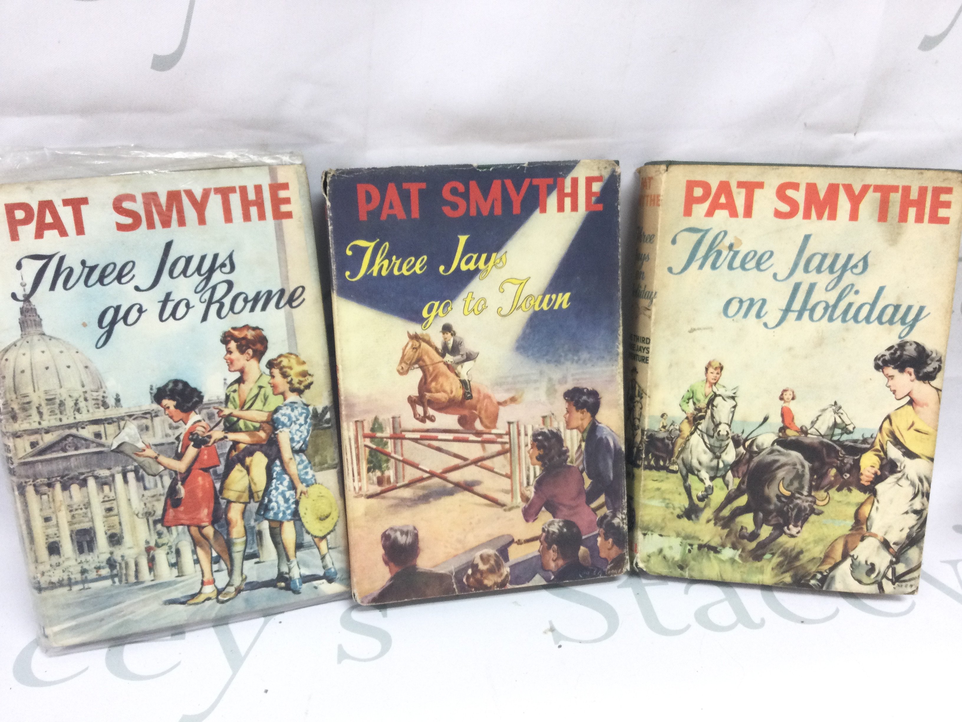 Vintage Pat Smythe books including Three jays over the border, Go to Rome, Go to town etc .Postage category B
