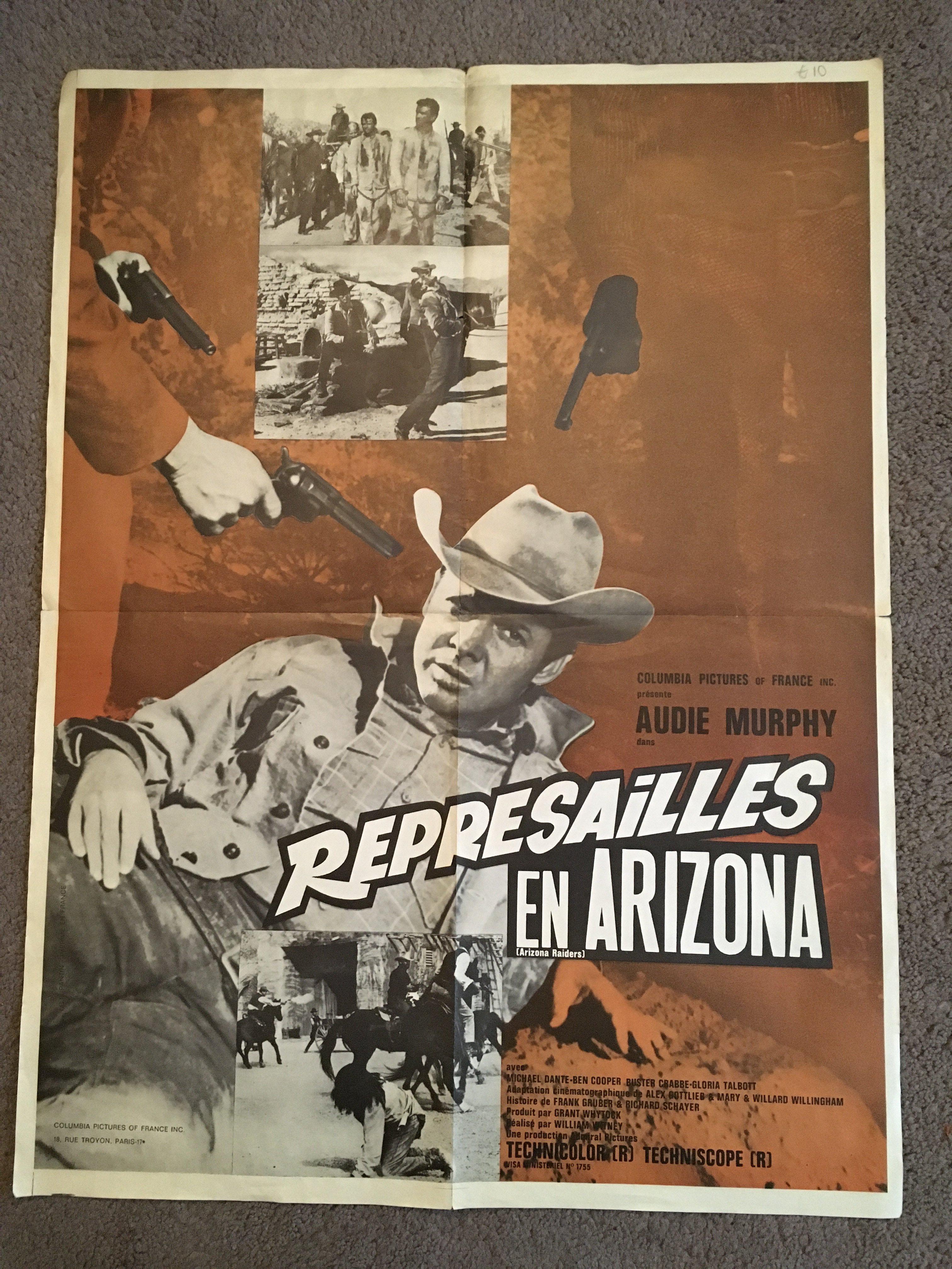 Four film posters of Westerns comprising a UK quad of 'Desperados', a French one sheet of 'Arizona Raiders' and two others., all folded with small tears.