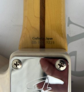 A 2004 Fender Japan Left Handed Telecaster electric guitar in excellent unplayed condition. This guitar comes with a maple neck and is finished in translucent US Blonde (Paint reference 67) which is a Fender Japan only finish. It comes with Fender Noiseless Pickups and all original parts. In near-mint condition with no real evidence of significant play-wear. No visible markings g or damage of any kind or tarnishing to brightwork. Comes with non original tweed case