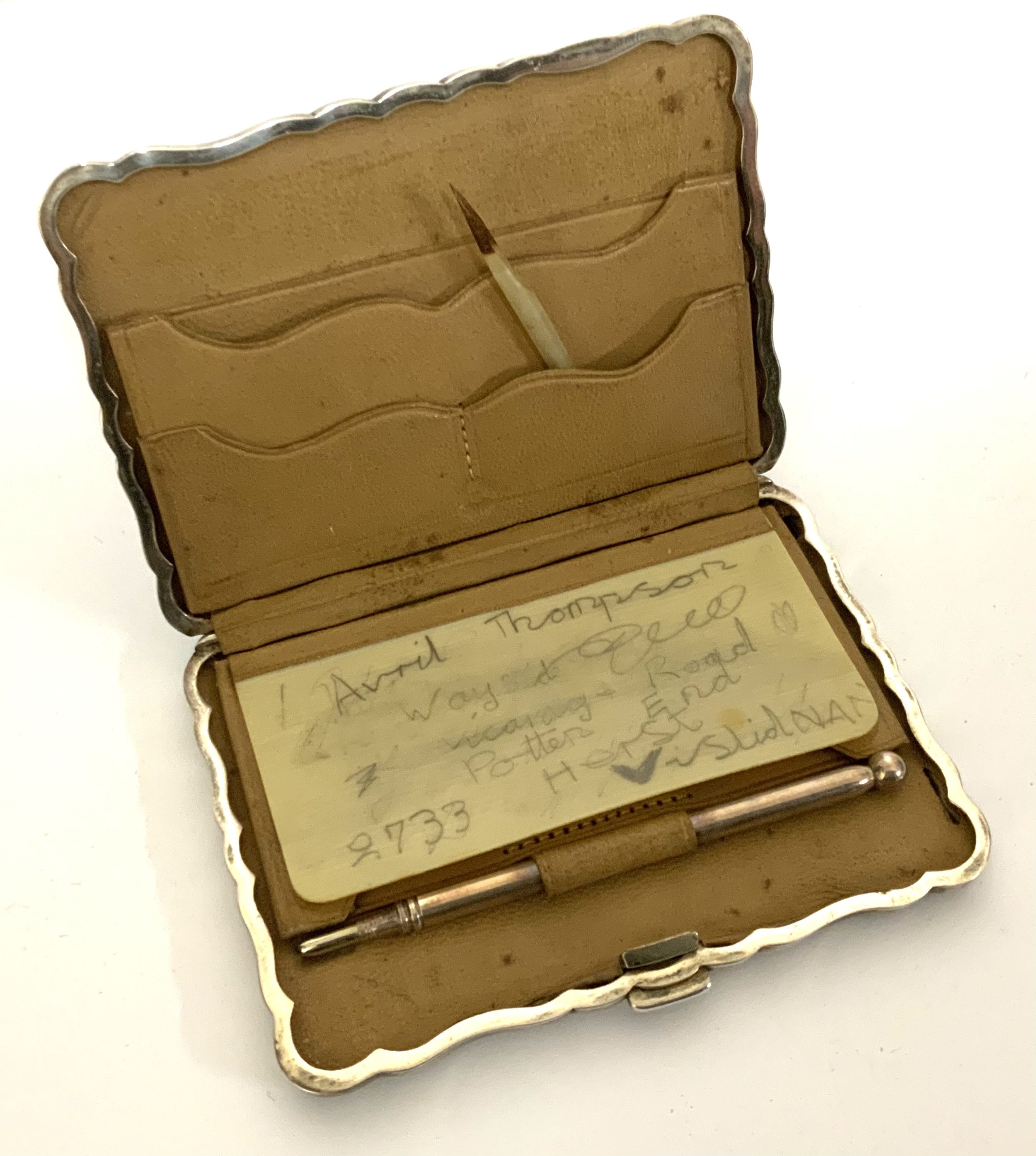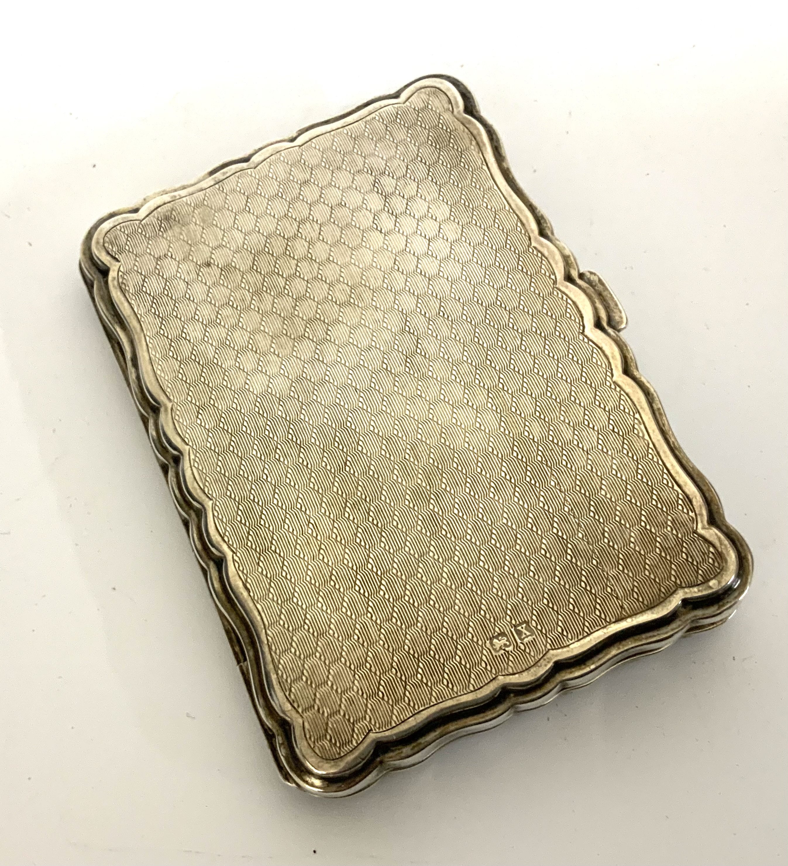 A hallmarked silver engine turned and leather lined pocket notebook. (A)