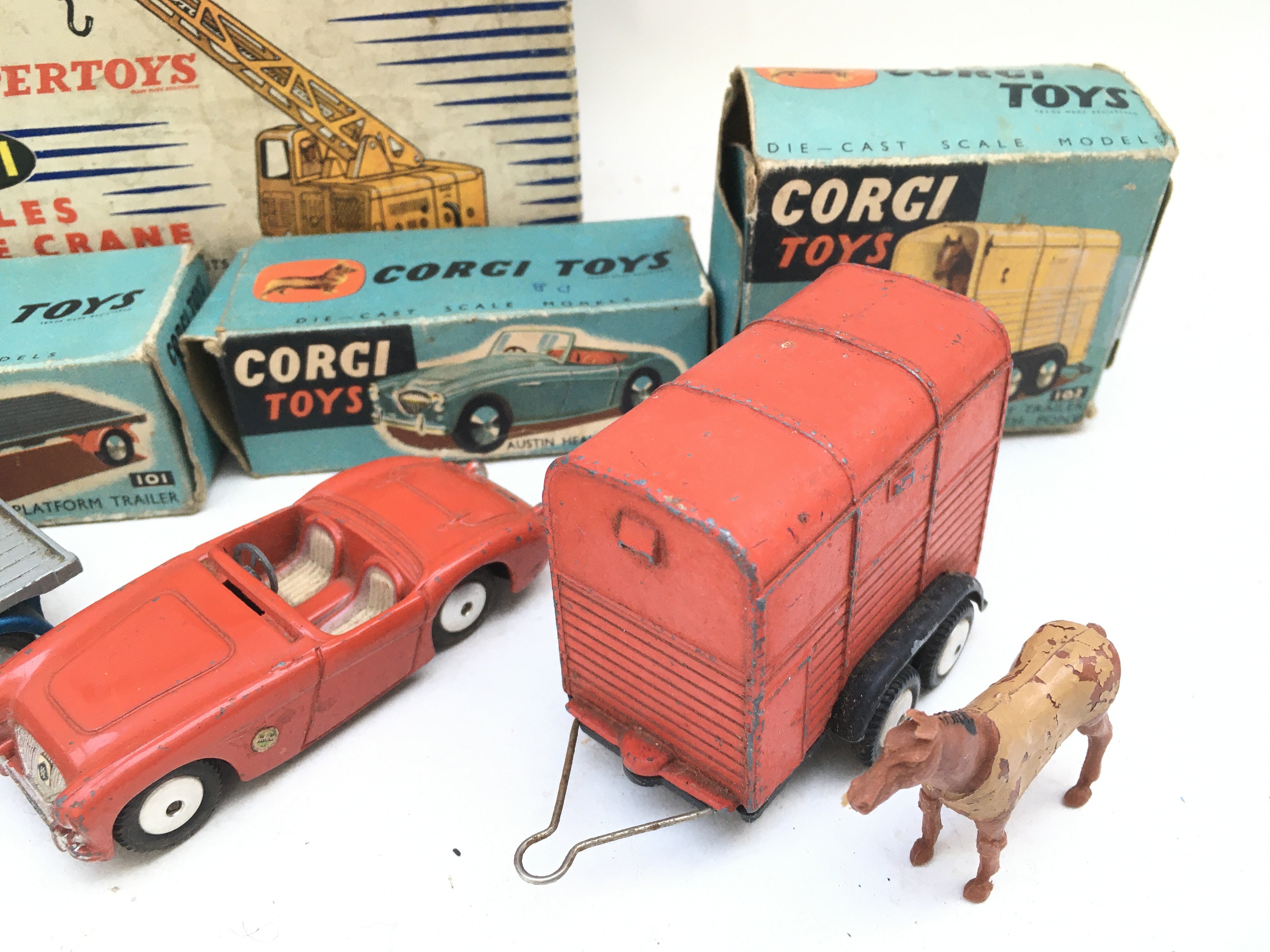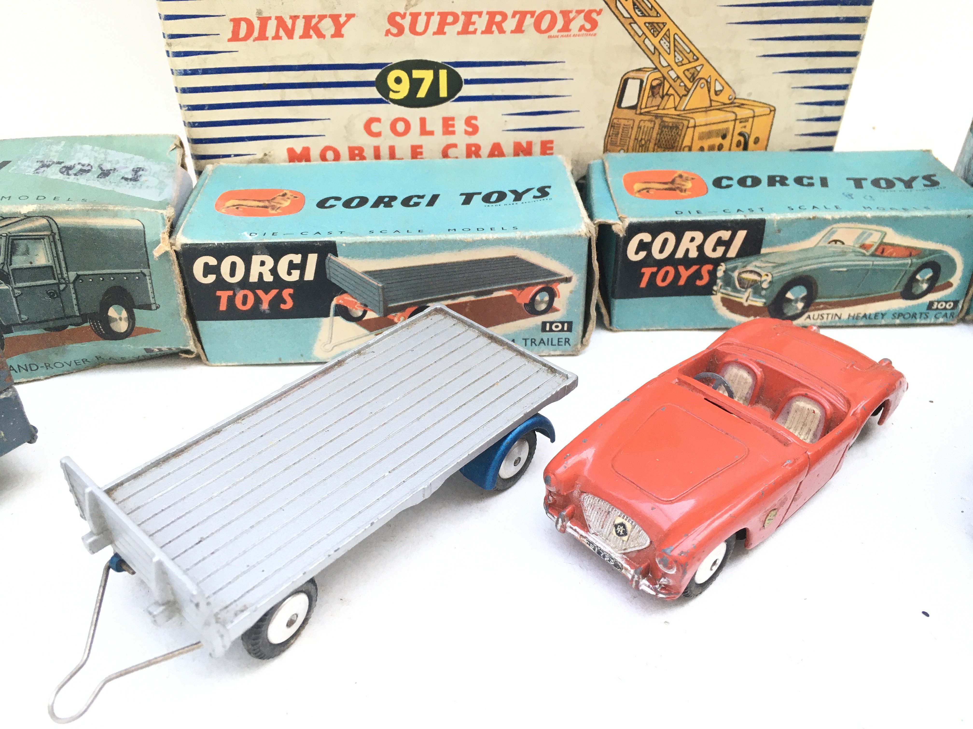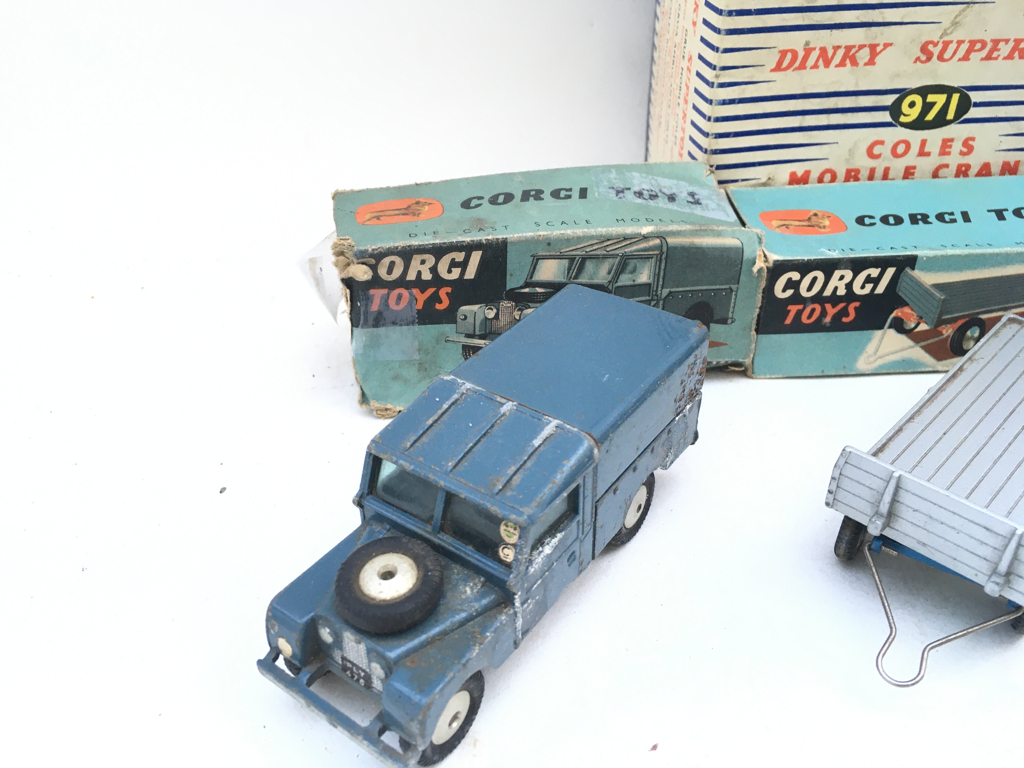 4 Boxed Corgi Vehicles and a Dinky Coles Mobile Crane. Boxes And Vehicles aim Various States.