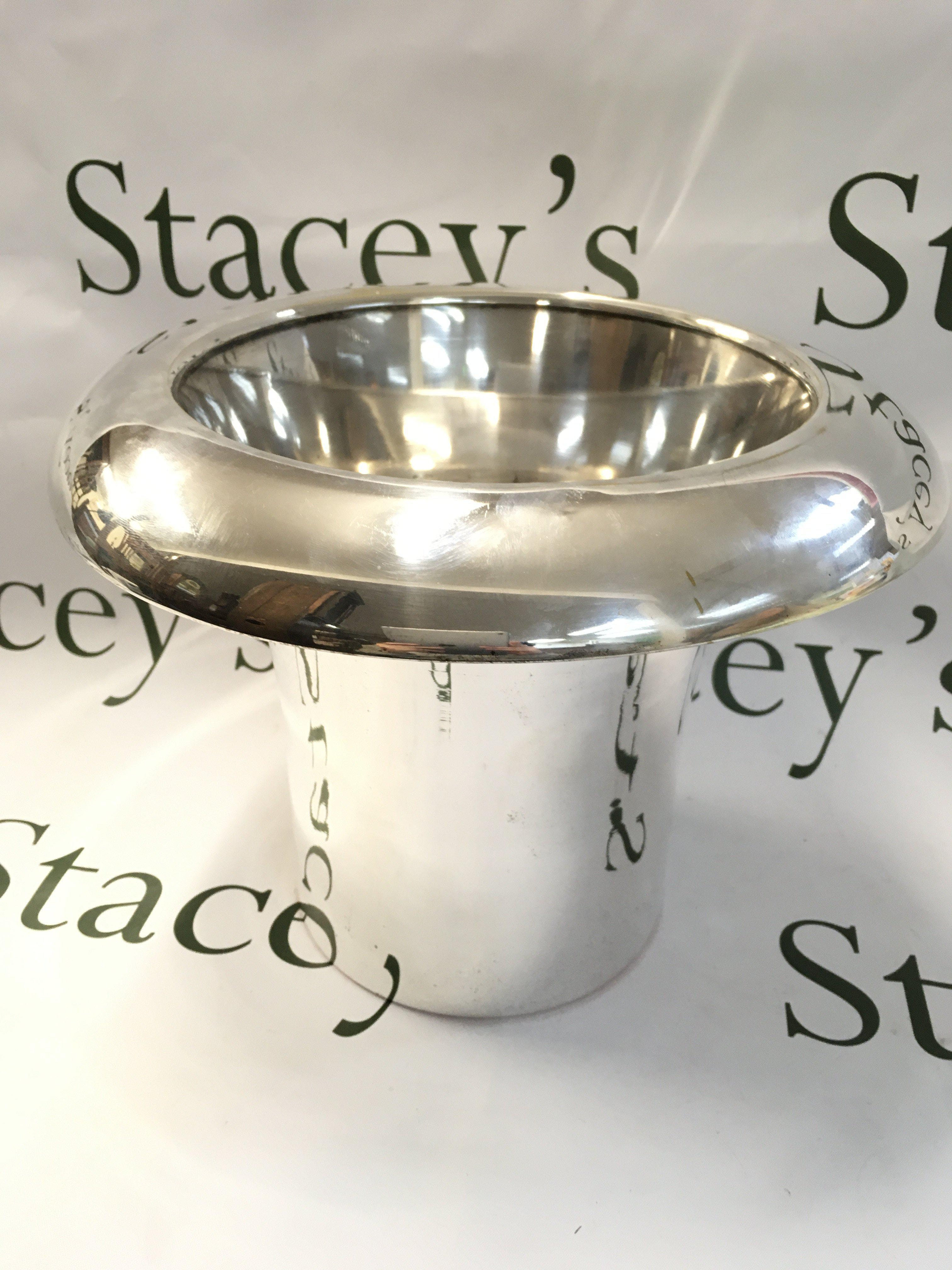 A 1980s silver plated top hat wine cooler, 23.5cm tall , 30cm wide approximately . Postage category C NO RESERVE
