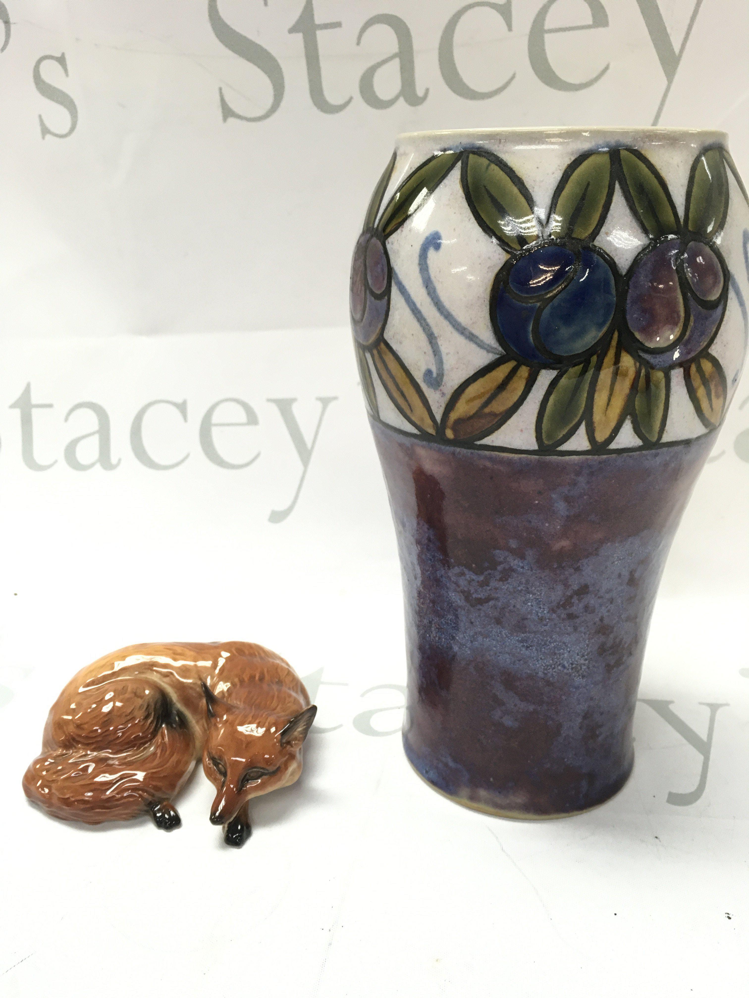 Royal Doulton vase and Beswick porcelain fox figure. This lot cannot be posted NO RESERVE