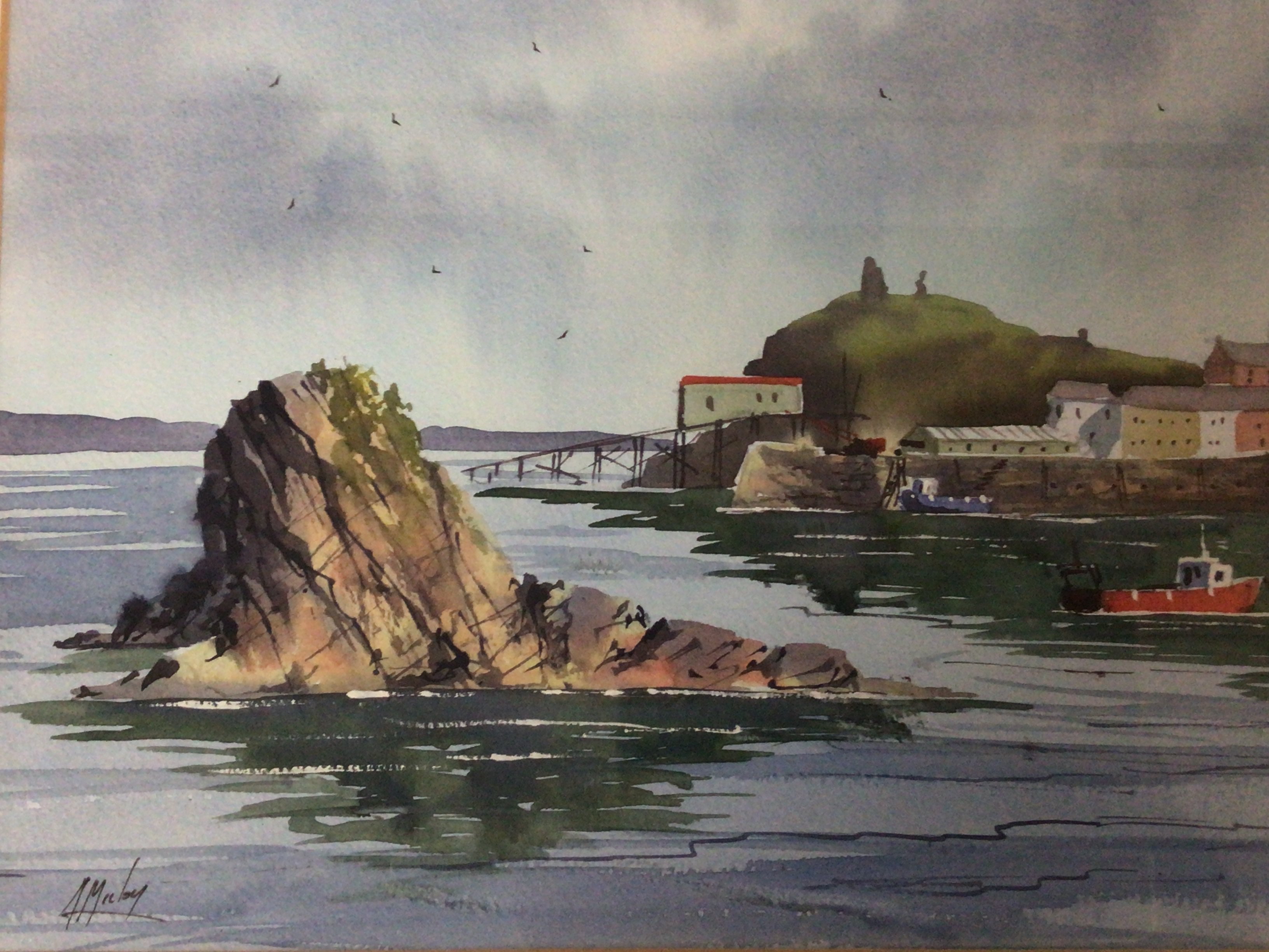 Three Cornish watercolours beach and harbour scenes signed by W.A Moody William A Moody. NO RESERVE
