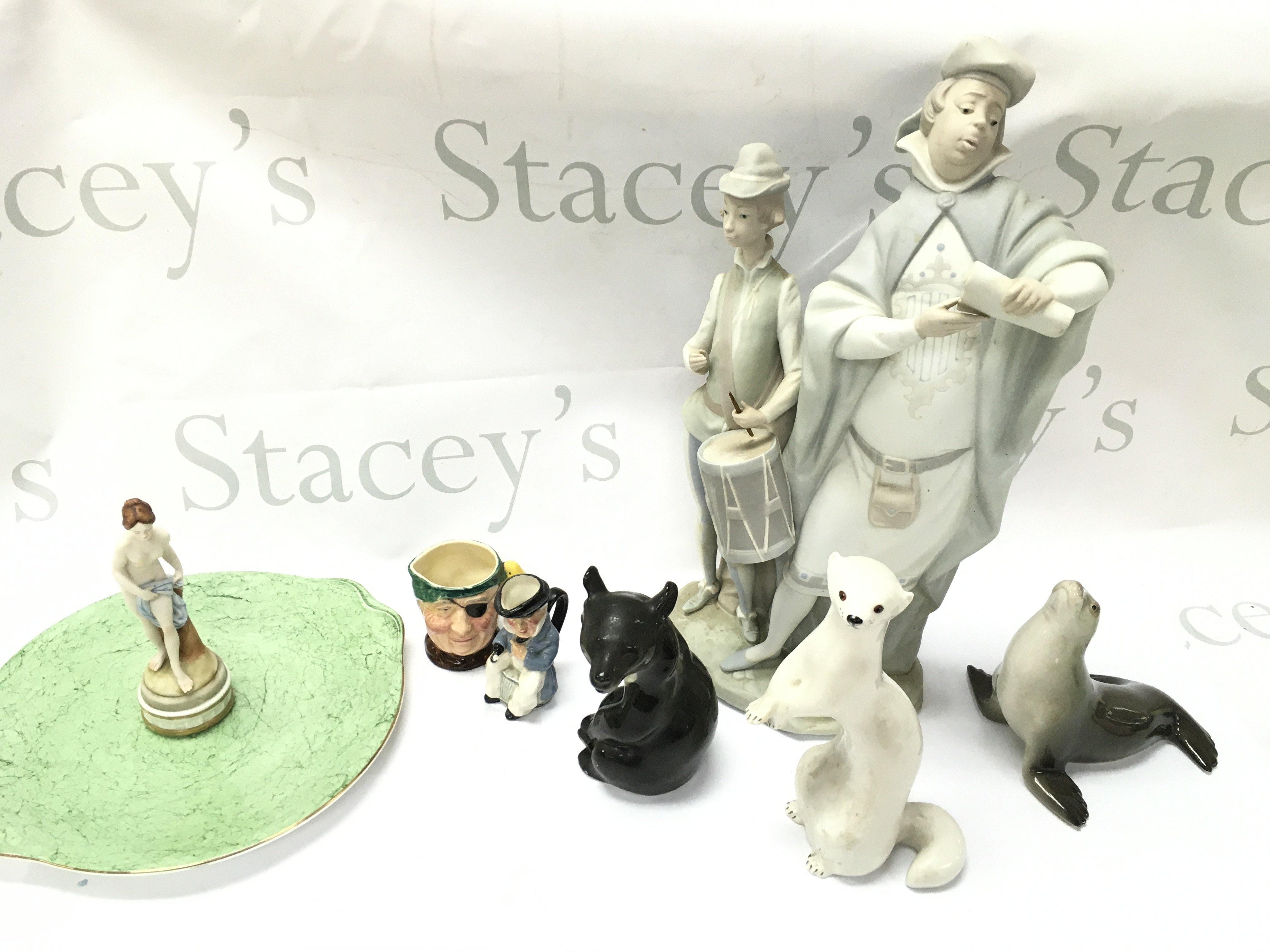 A collection of ceramics including a large Lladro Pregonero figure ,USSR animal figures, Royal Albert Gossamer dish. This lot cannot be posted NO RESERVE