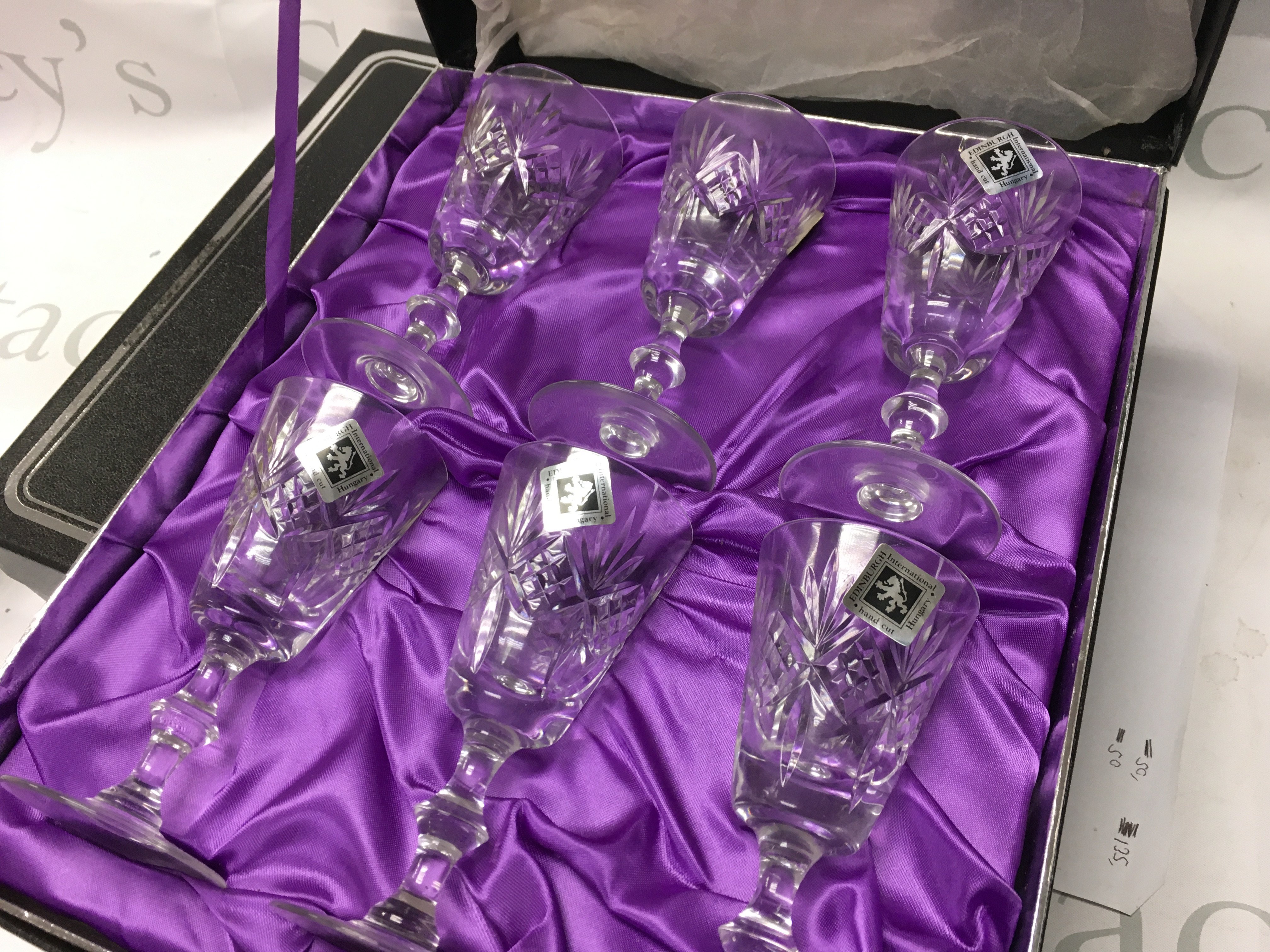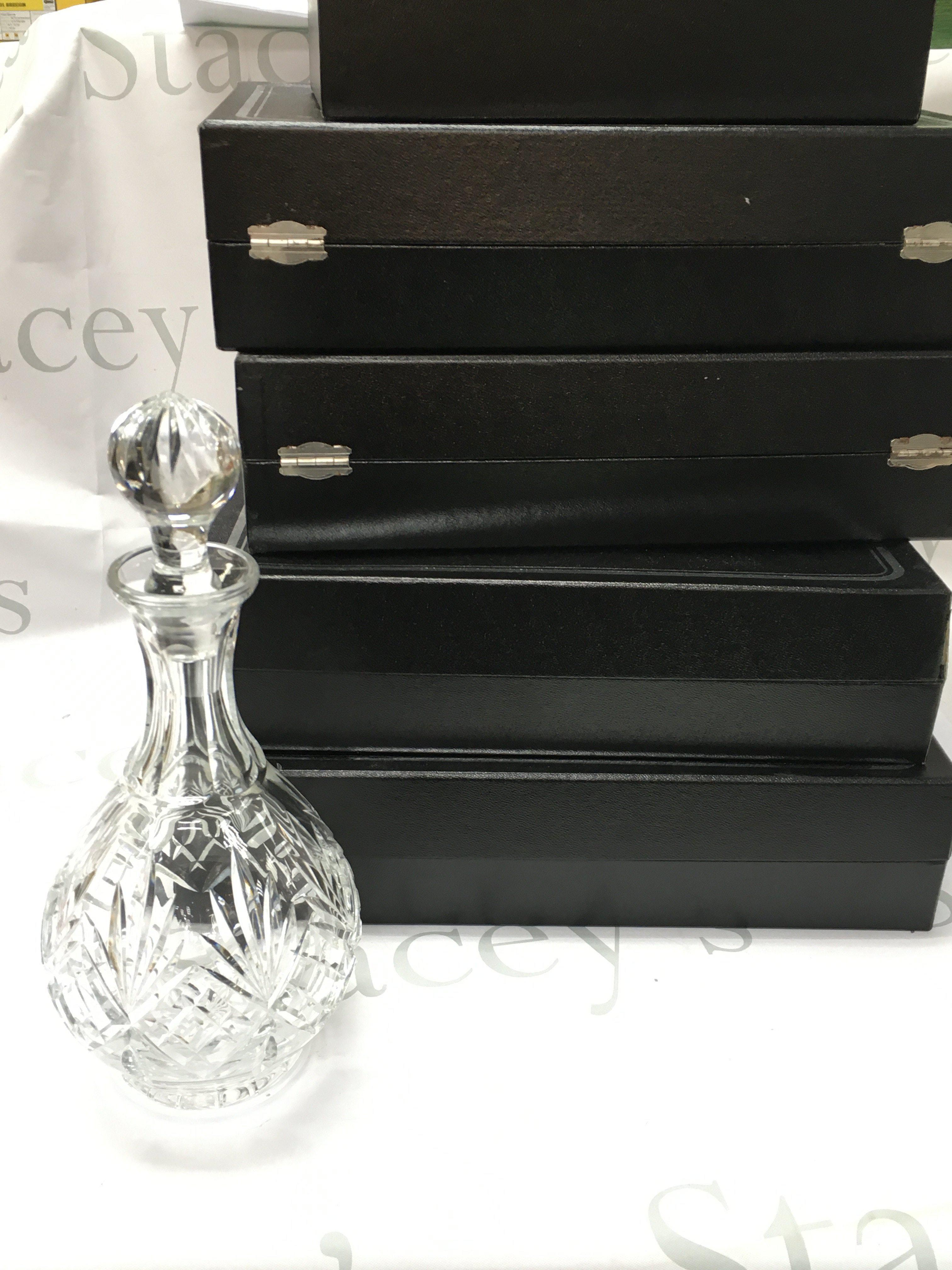 Five boxed sets of Edinburgh crystal glasses and an unboxed decanter. This lot cannot be posted