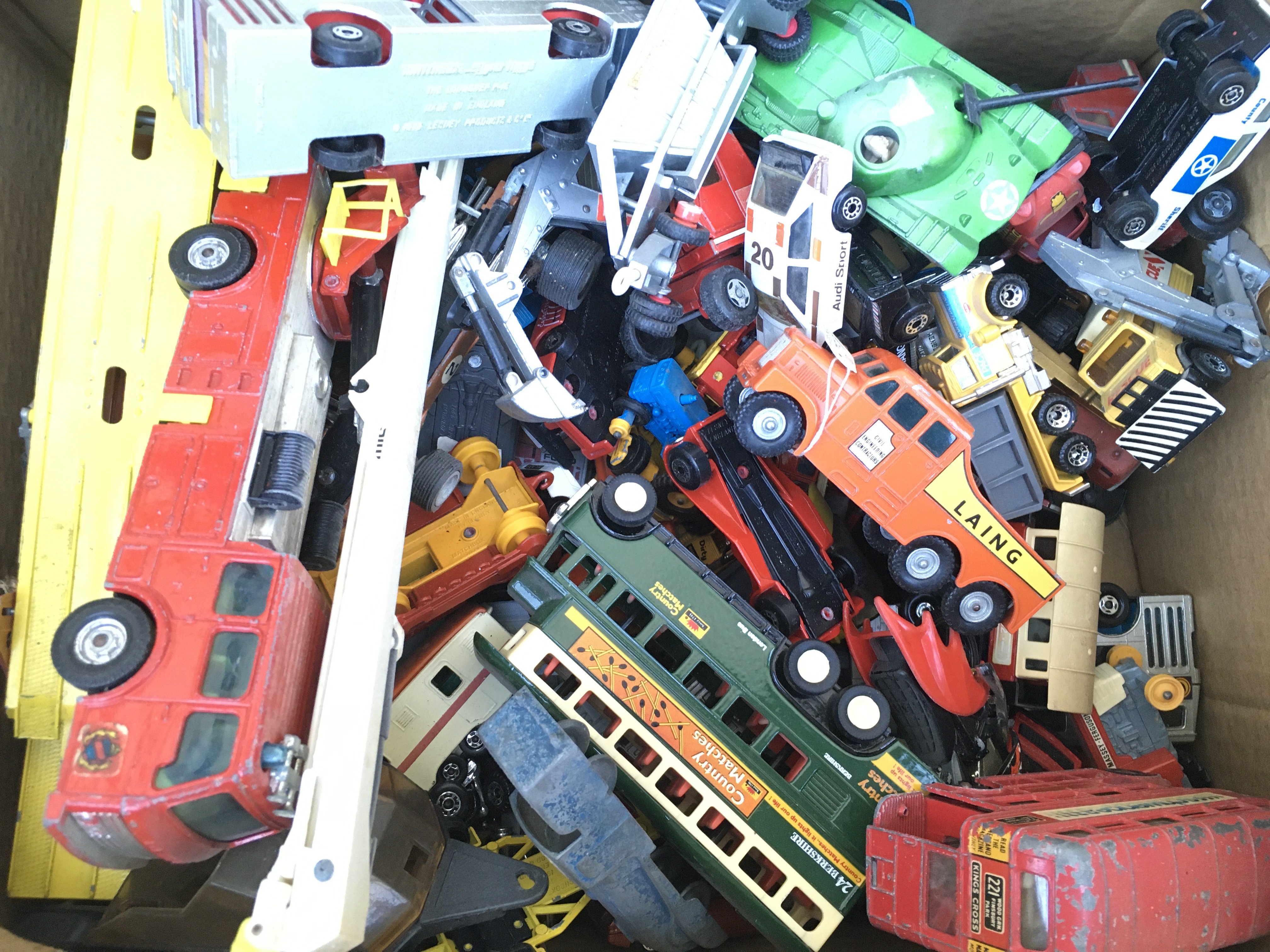 A Box Containing Playworn Diecast. Including Corgi And Matchbox.
