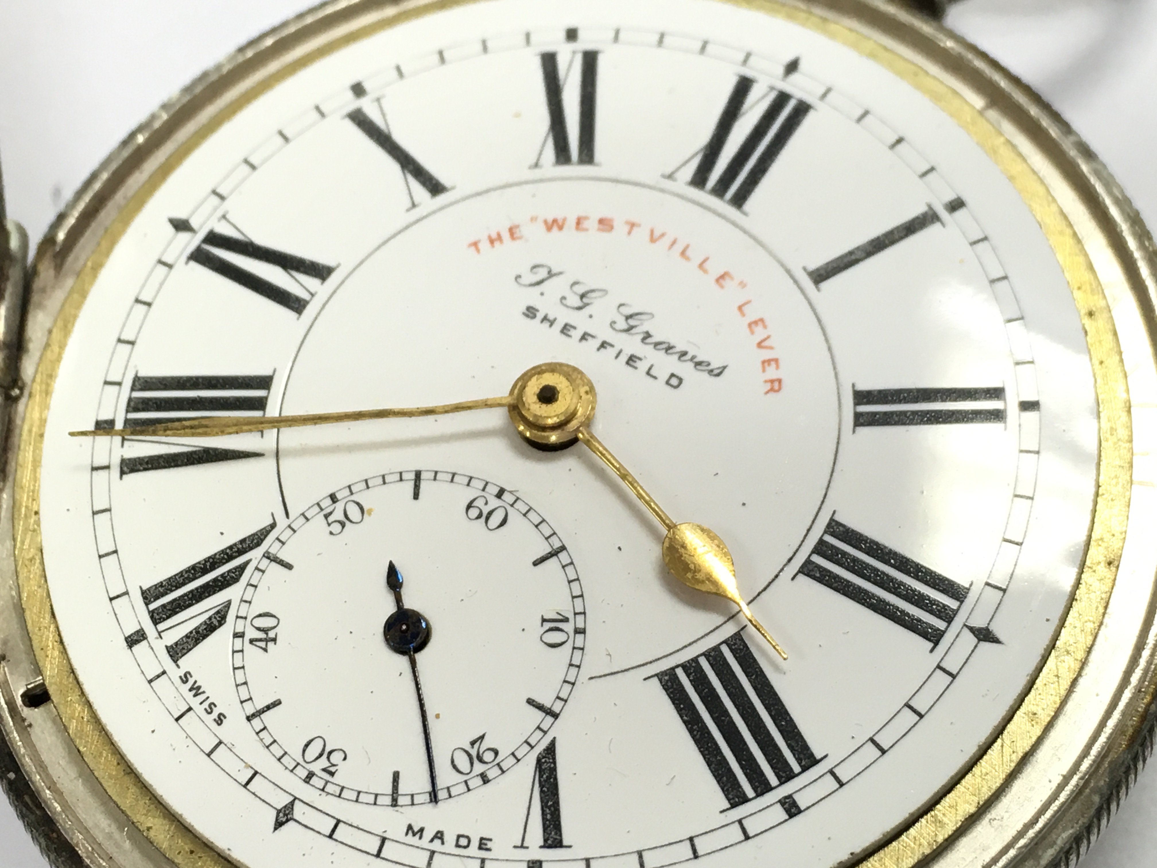 A full hunter silver cased J.G. Graves Sheffield pocket watch marked 935. Postage category A