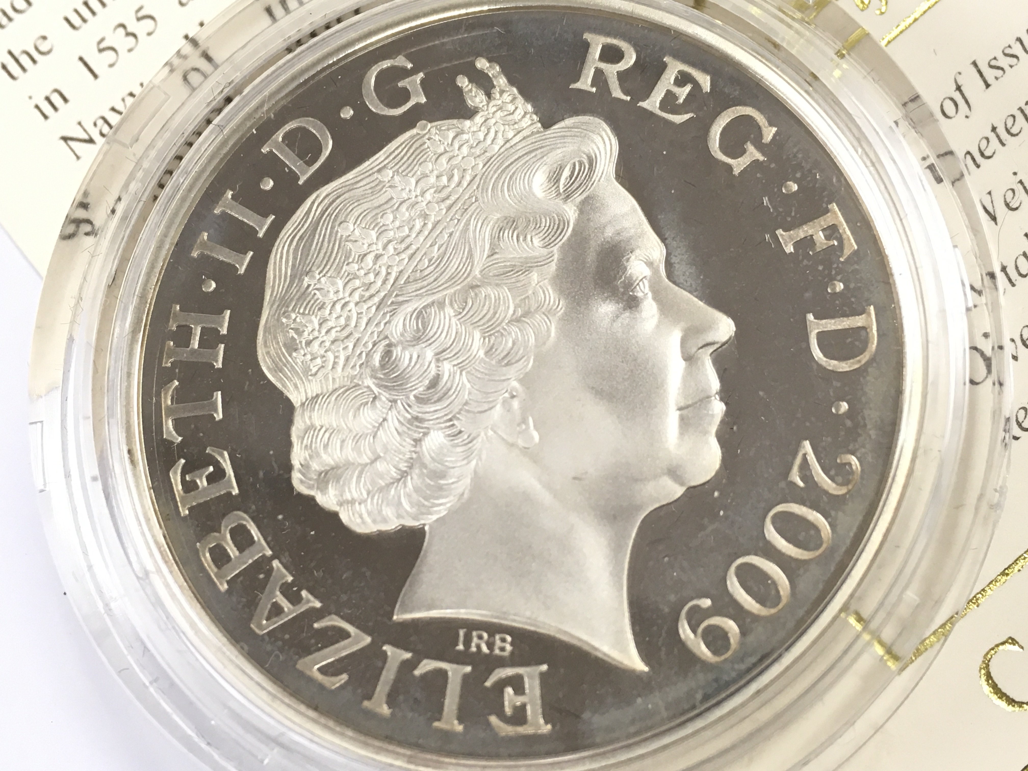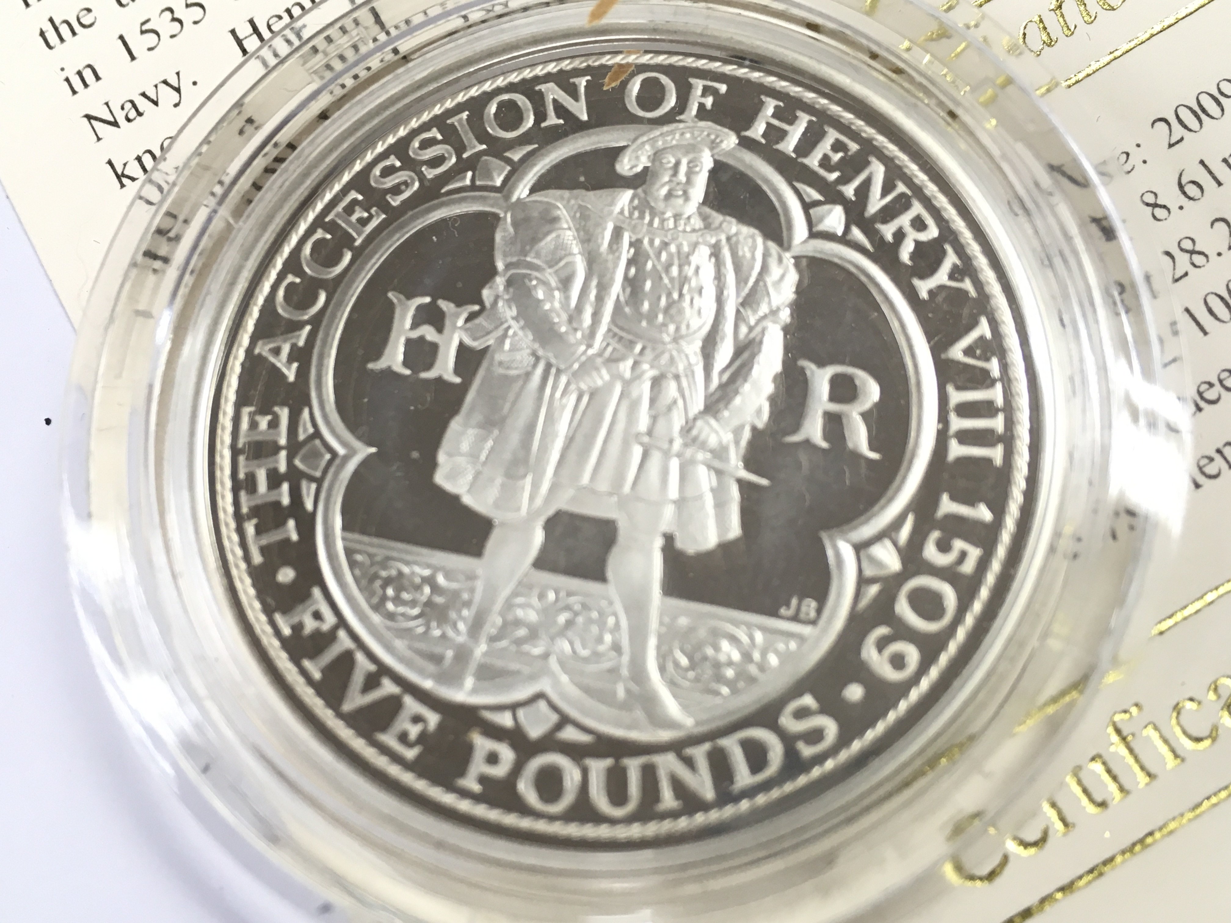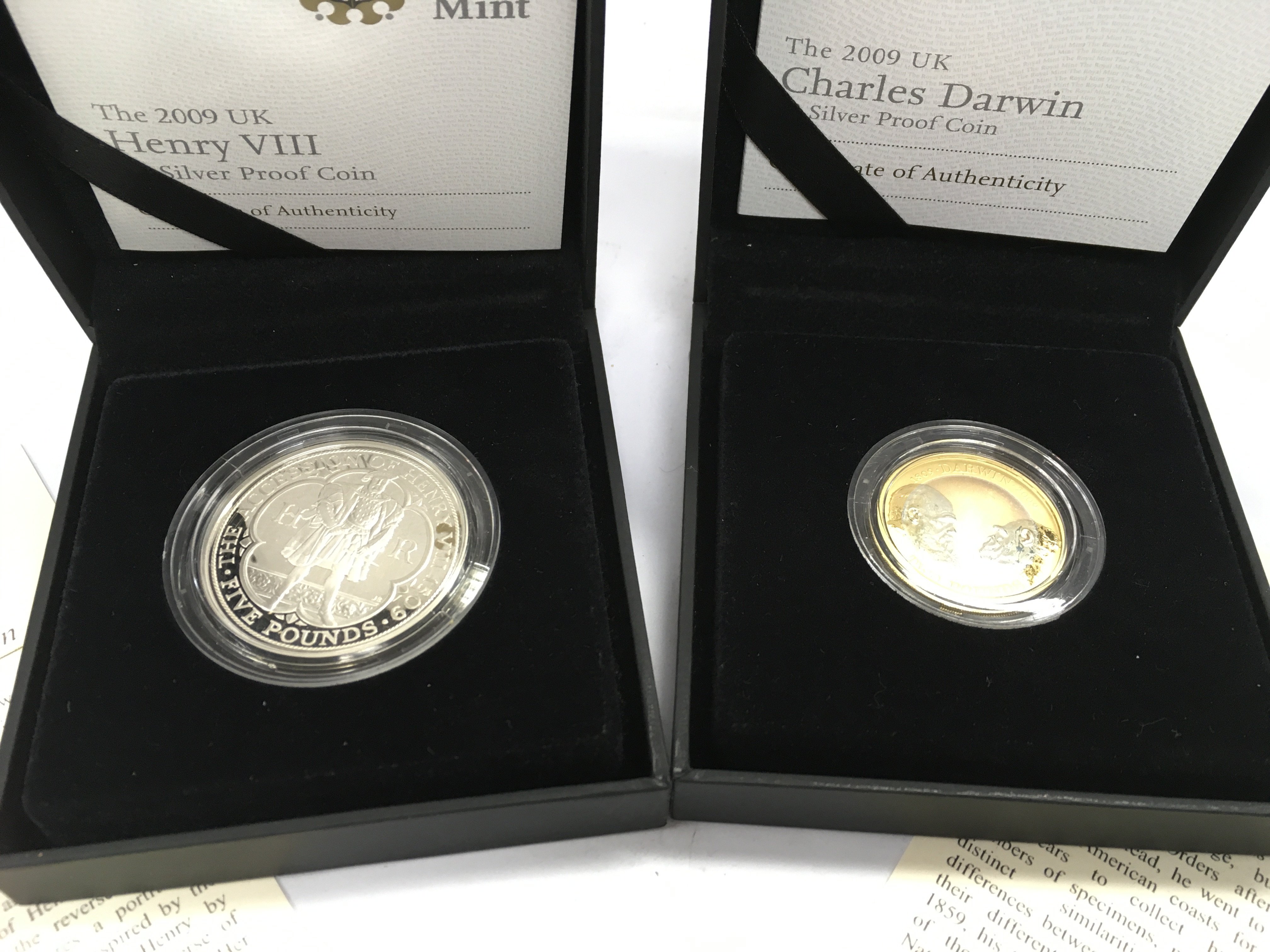 Cased Royal Mint Henry VII 2009 and Charles Darwin silver proof coins. Postage cat A