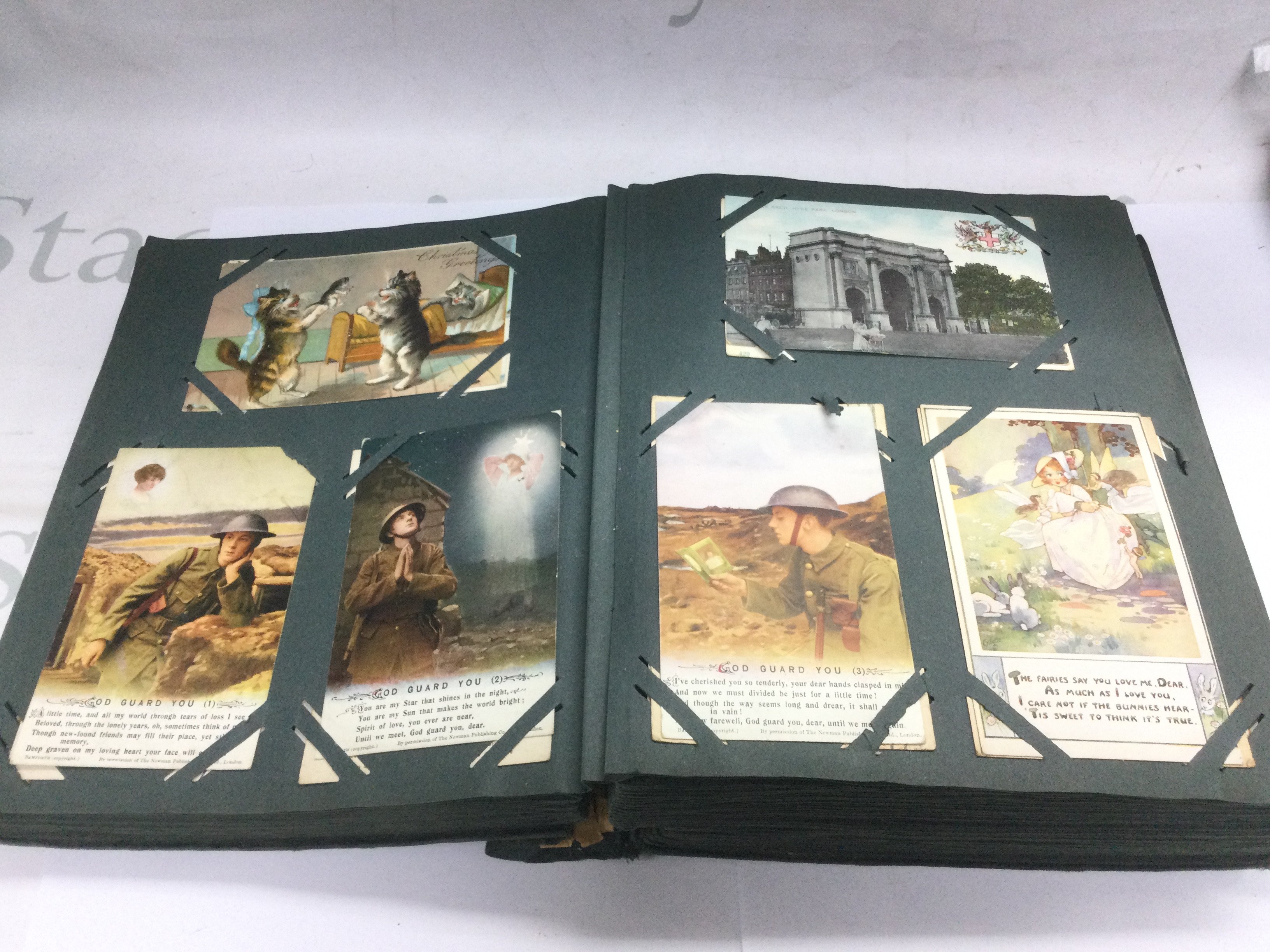 An album containing over 400 postcards including WW1, topographical, humorous etc. Shipping category B.