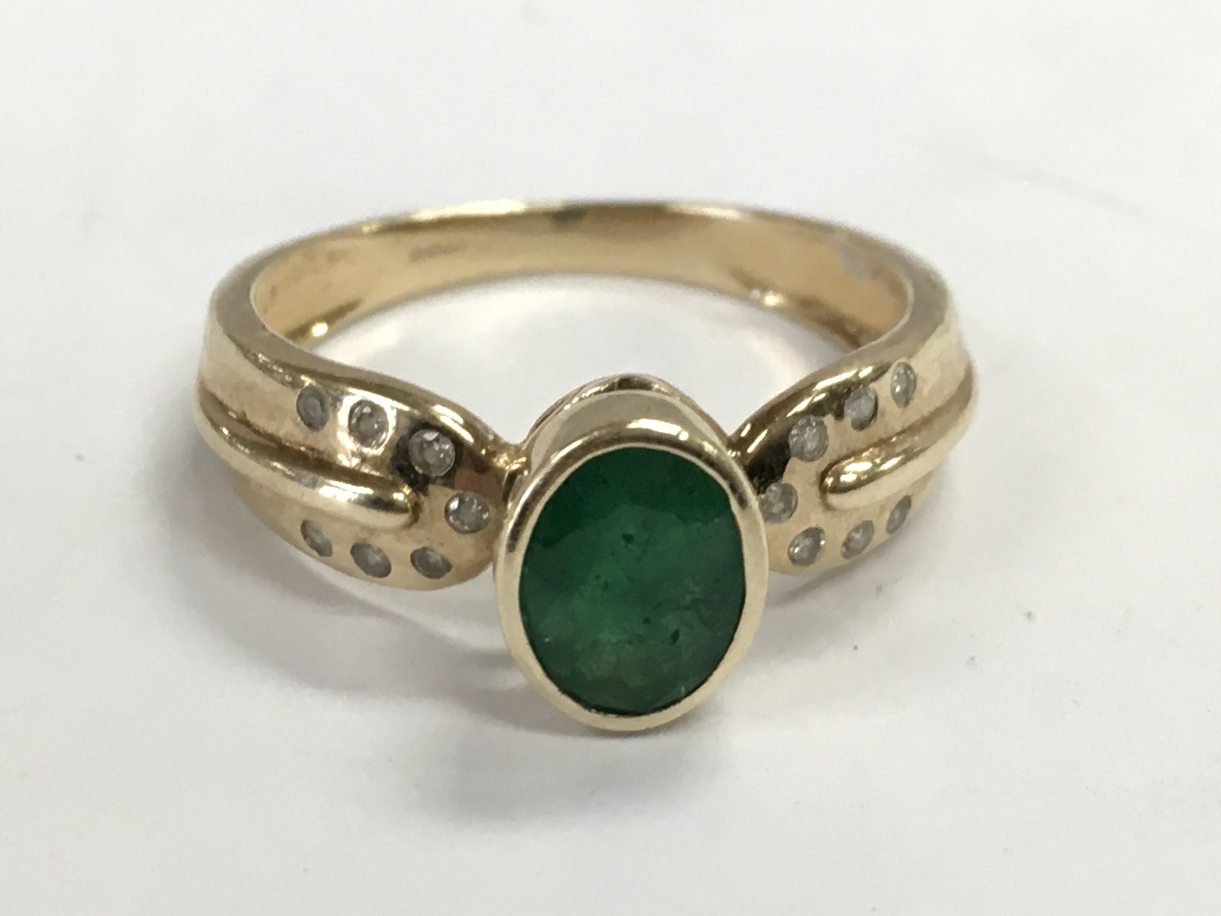 A 9 carat gold ring emerald, size S . 3.5g Postage category A