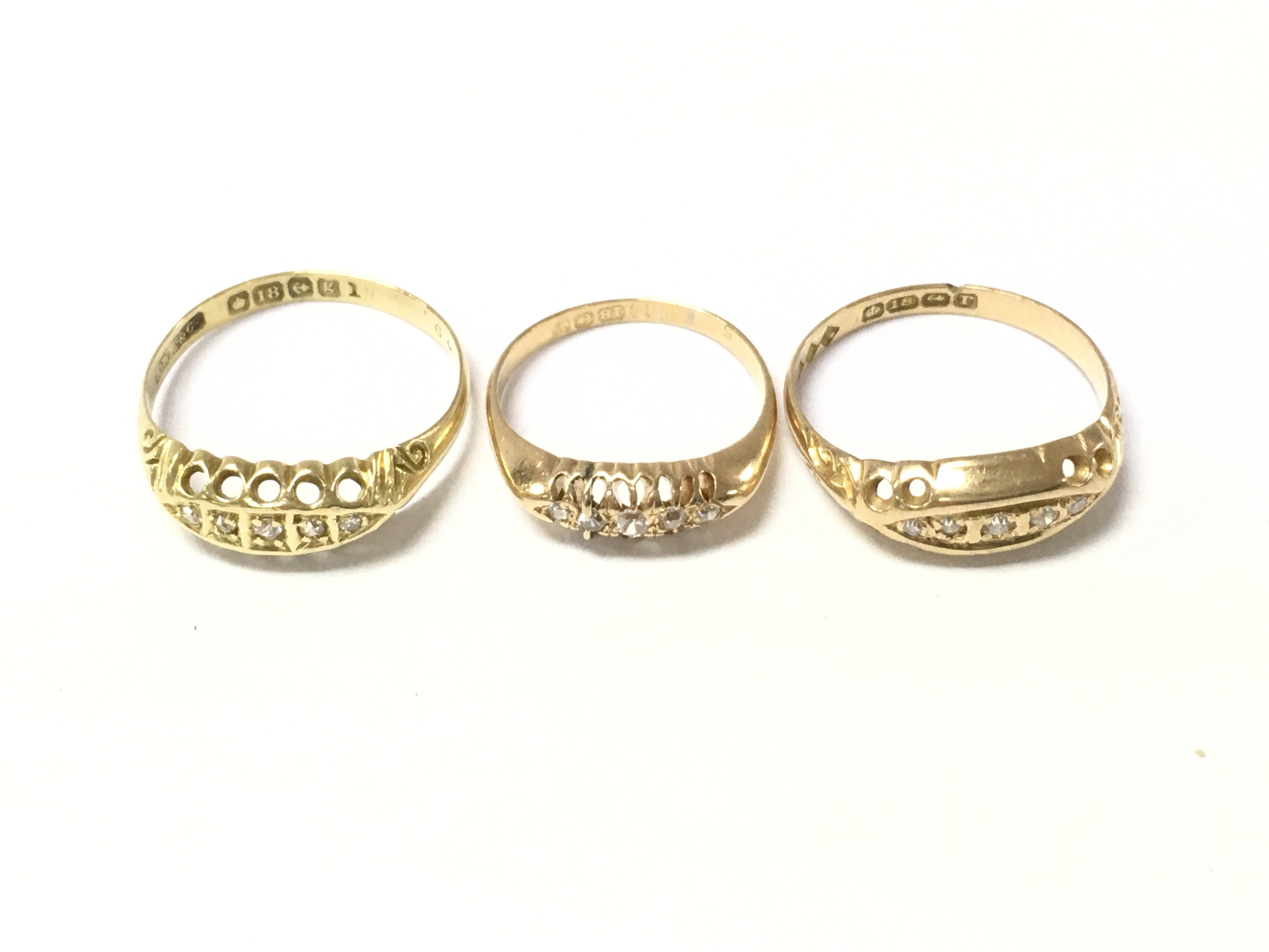 Three 18ct gold old style 5 diamond rings. 7.5g