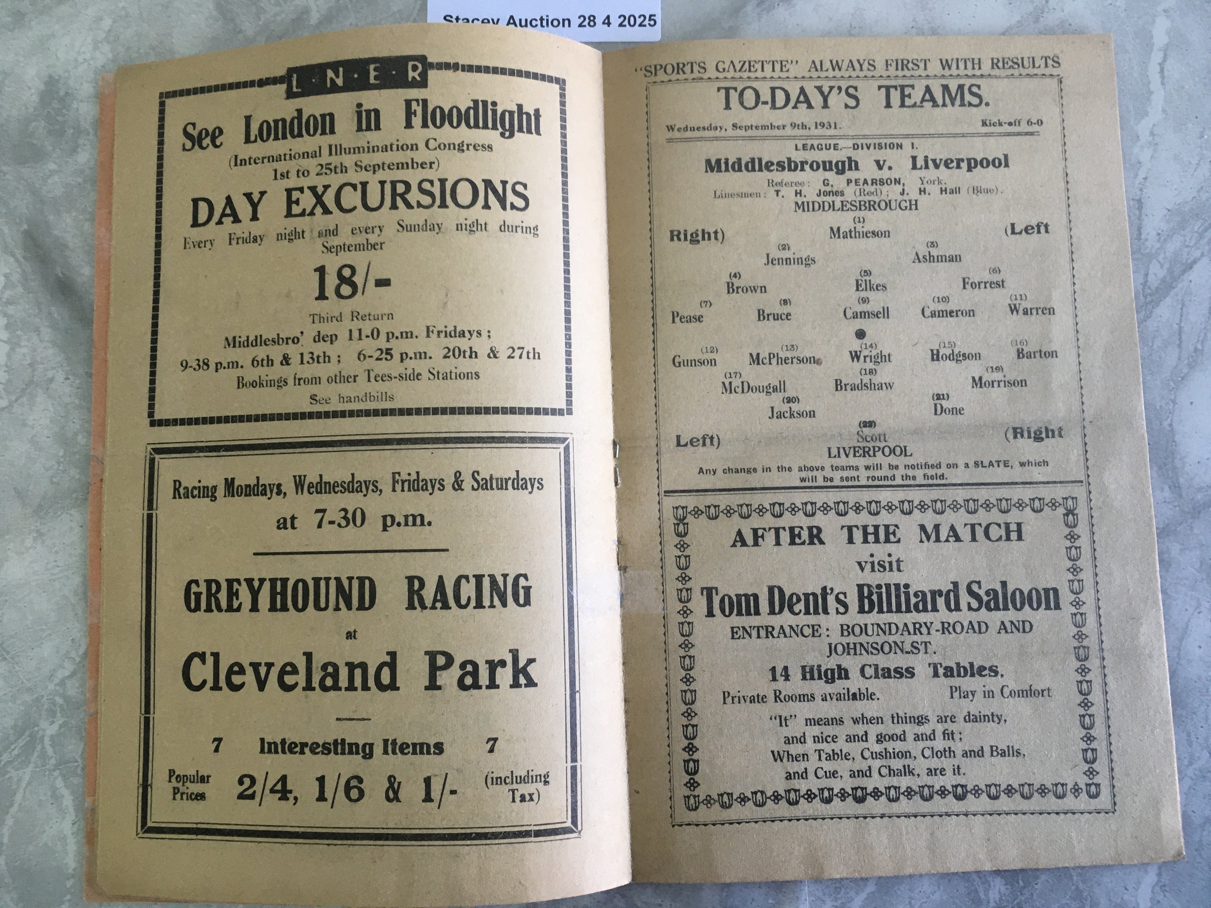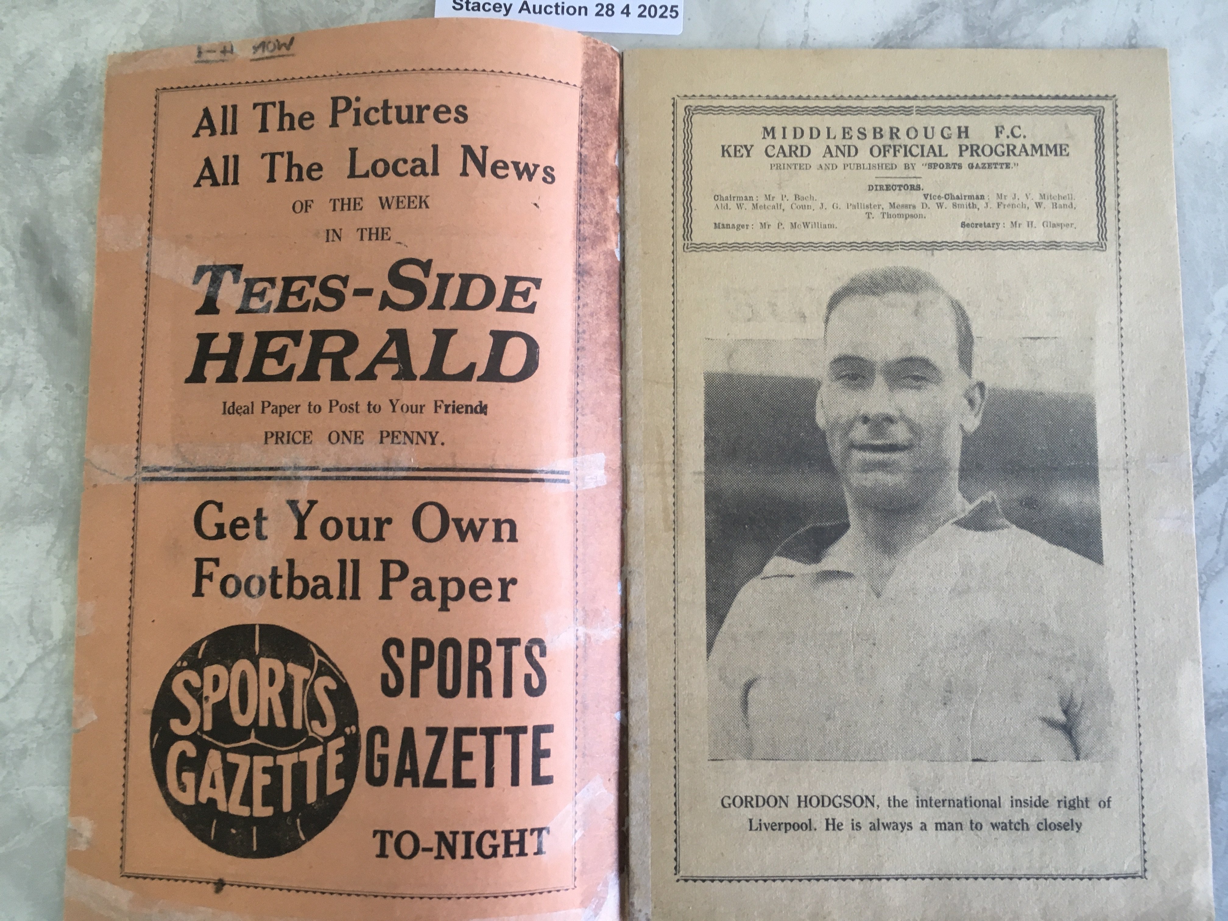 31/32 Middlesbrough v Liverpool Football Programme: Repaired with celotape mark to spine and a couple of additional repairs to border. Score to cover and wear to back page. No team changes.