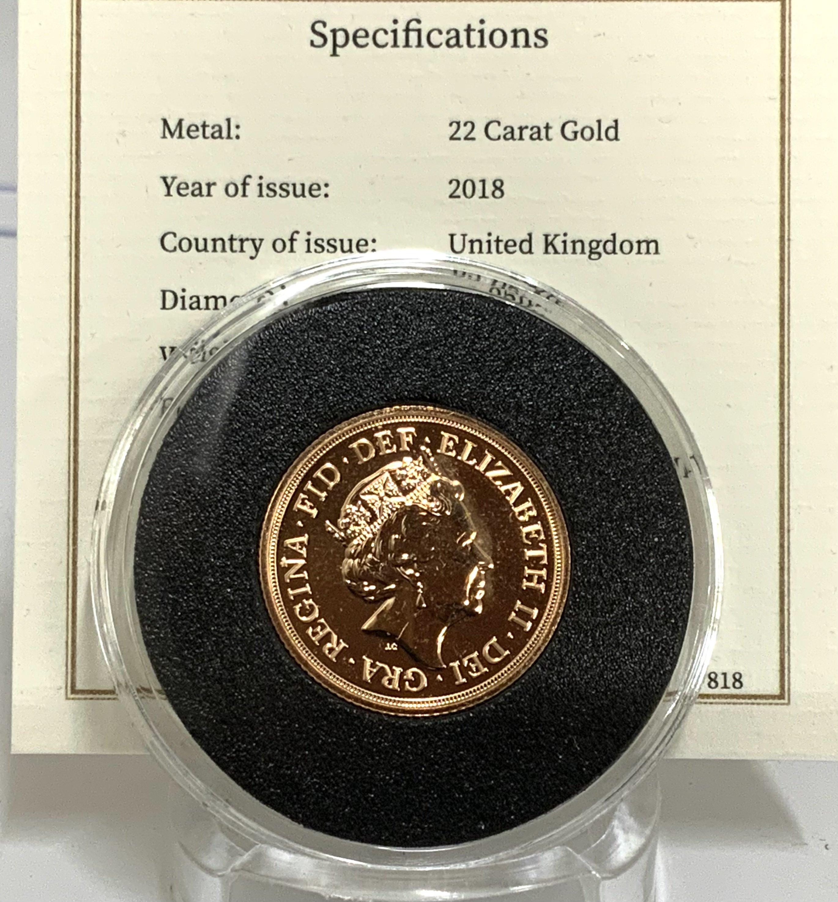 Queen Elizabeth II 2018 Full Uncirculated sovereign. (A)