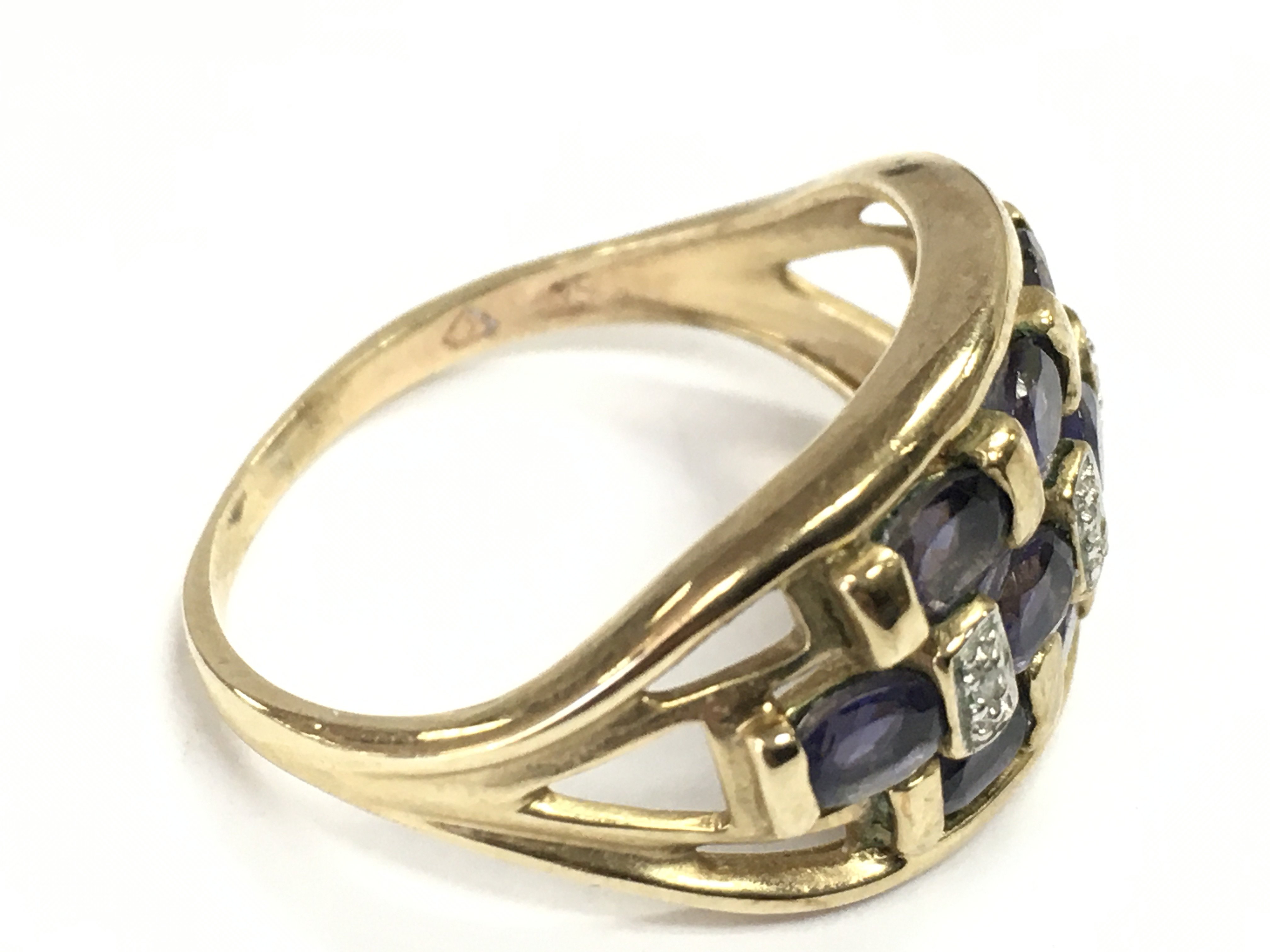 A 9 carat gold diamond and sapphire ring Q/R. 3.9g Postage category A