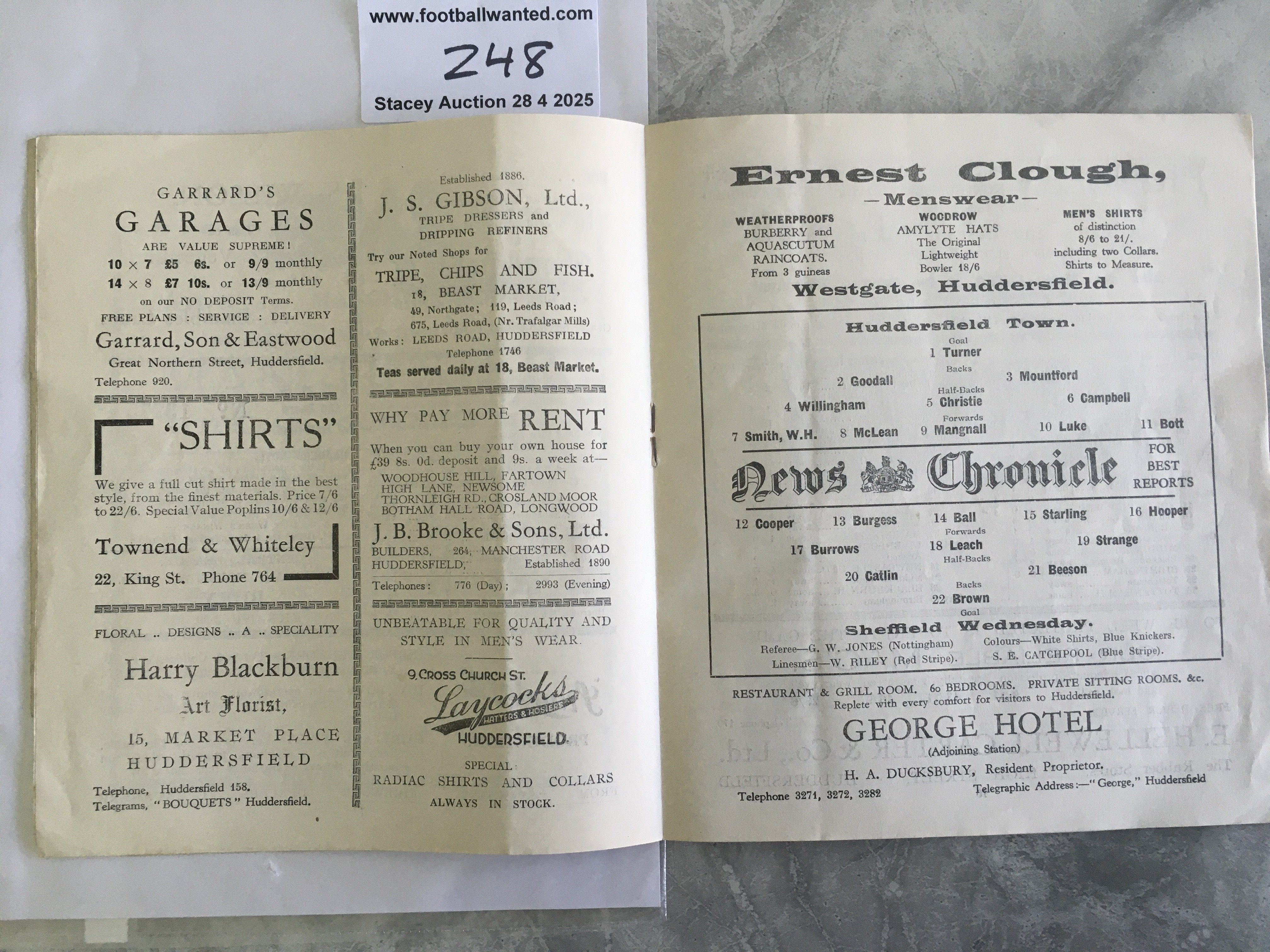 33/34 Huddersfield v Sheffield Wednesday Football Programme: First division match with no team changes but a piece missing from cover in bottom right corner. Fold.