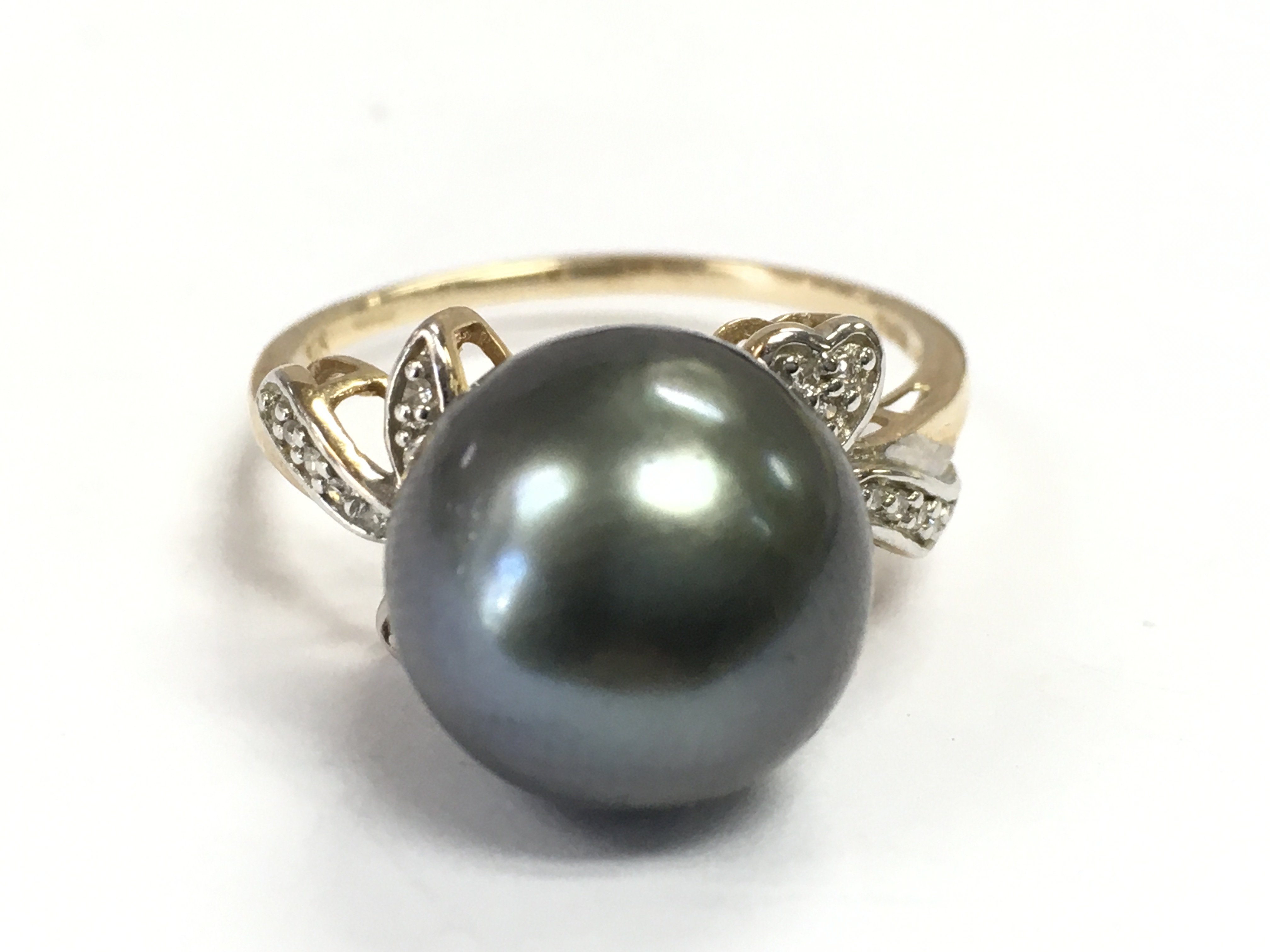 A 9 carat gold Tahitan black pearl ring , size S . 4.7g total weight Postage category A