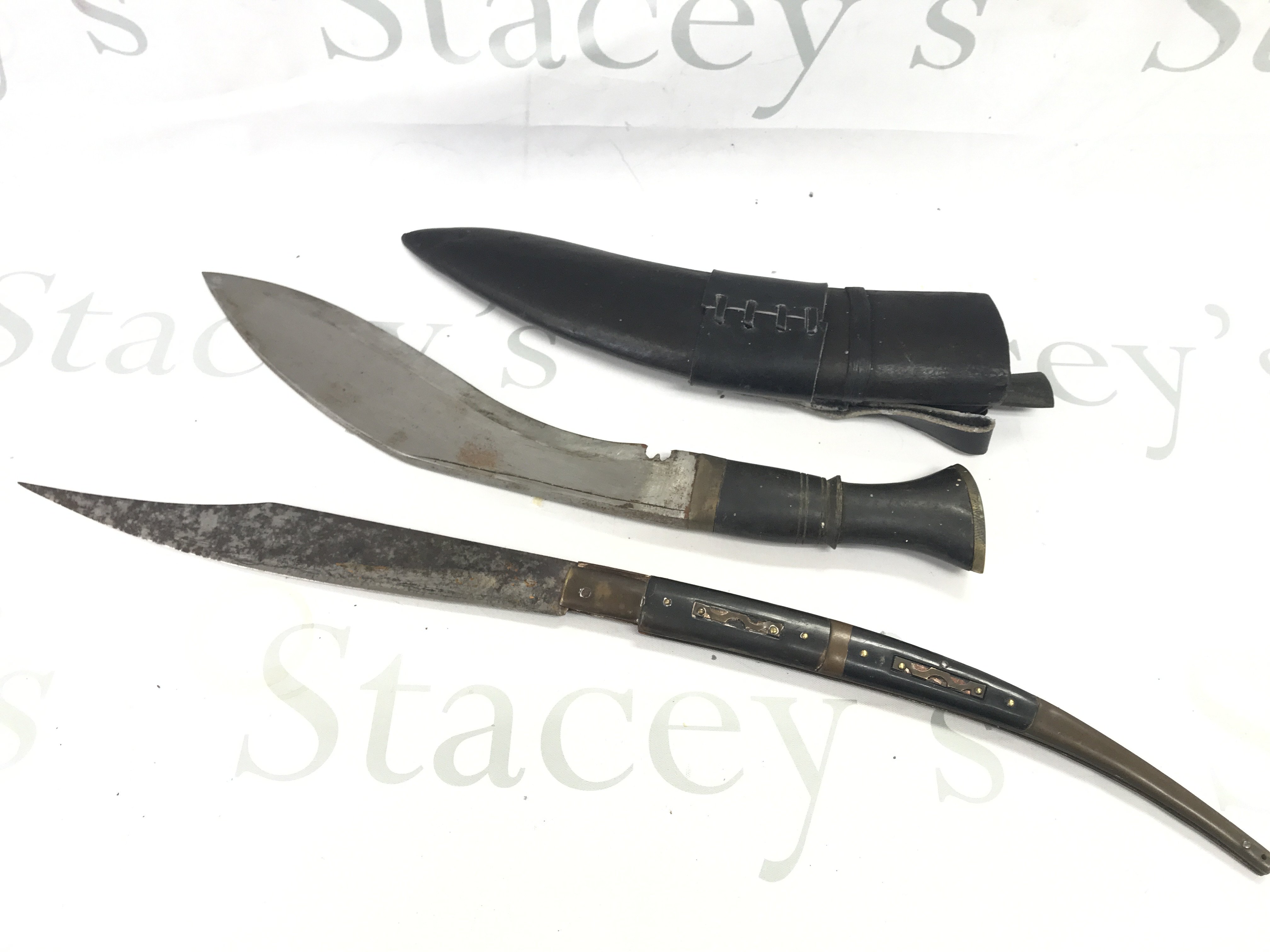 A Kurki knife (38cm long) and a Navaja, (blade approx 24.5cm long, total length 51cm).