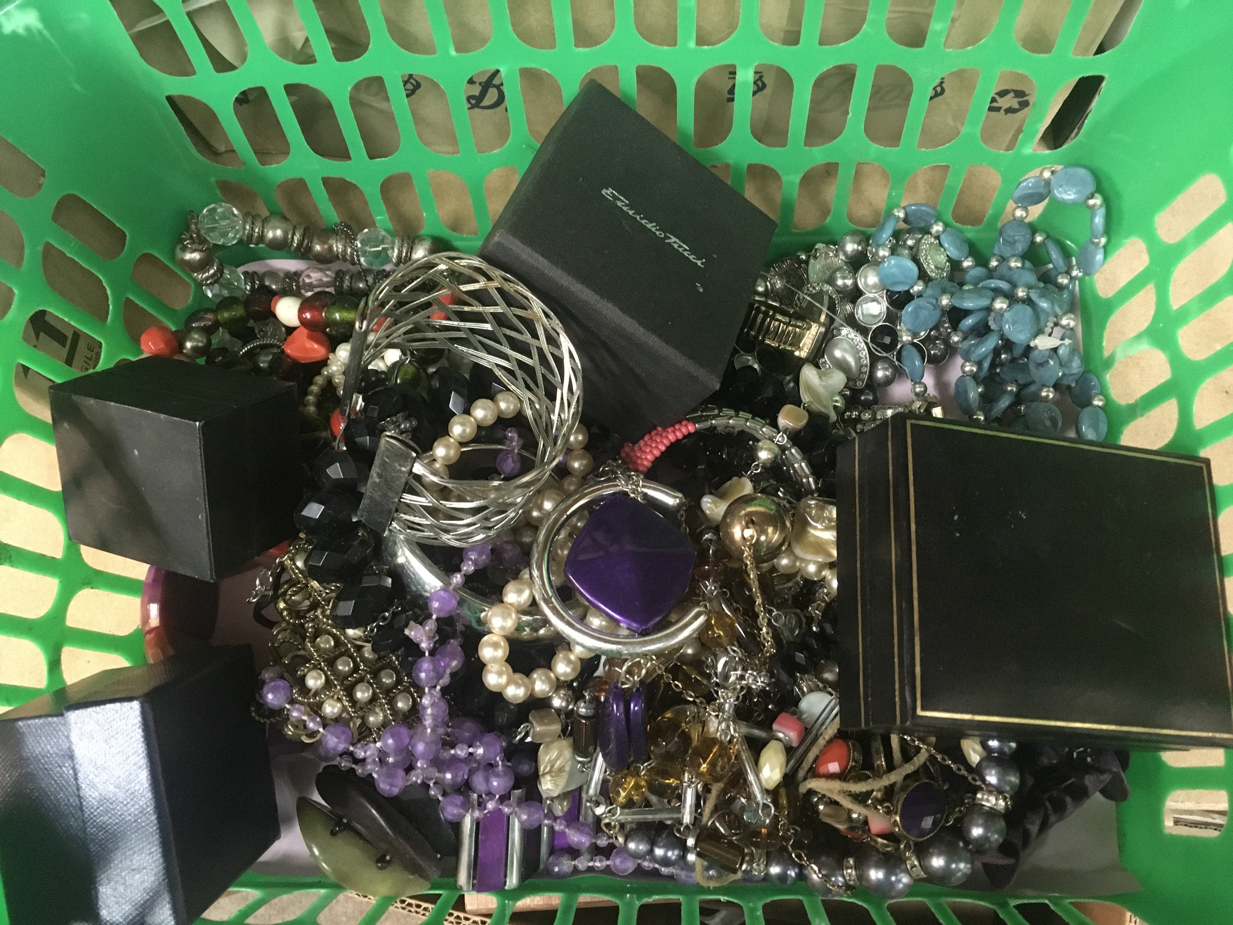 A box of costume jewellery including bangles, necklaces , bracelets etc . Postage cat B. NO RESERVE