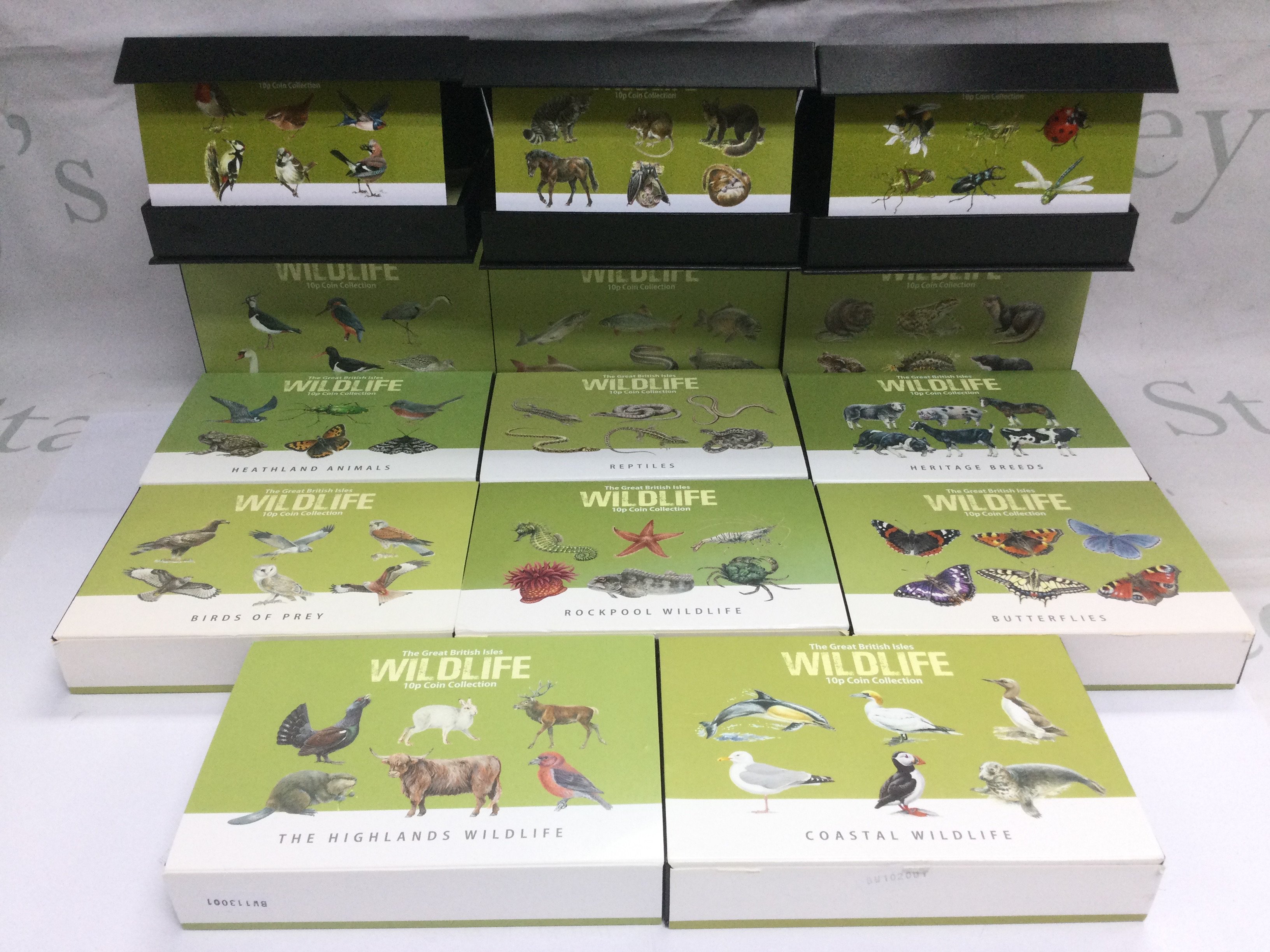 Fourteen boxed Wildlife 10p coin sets. Shipping category B.
