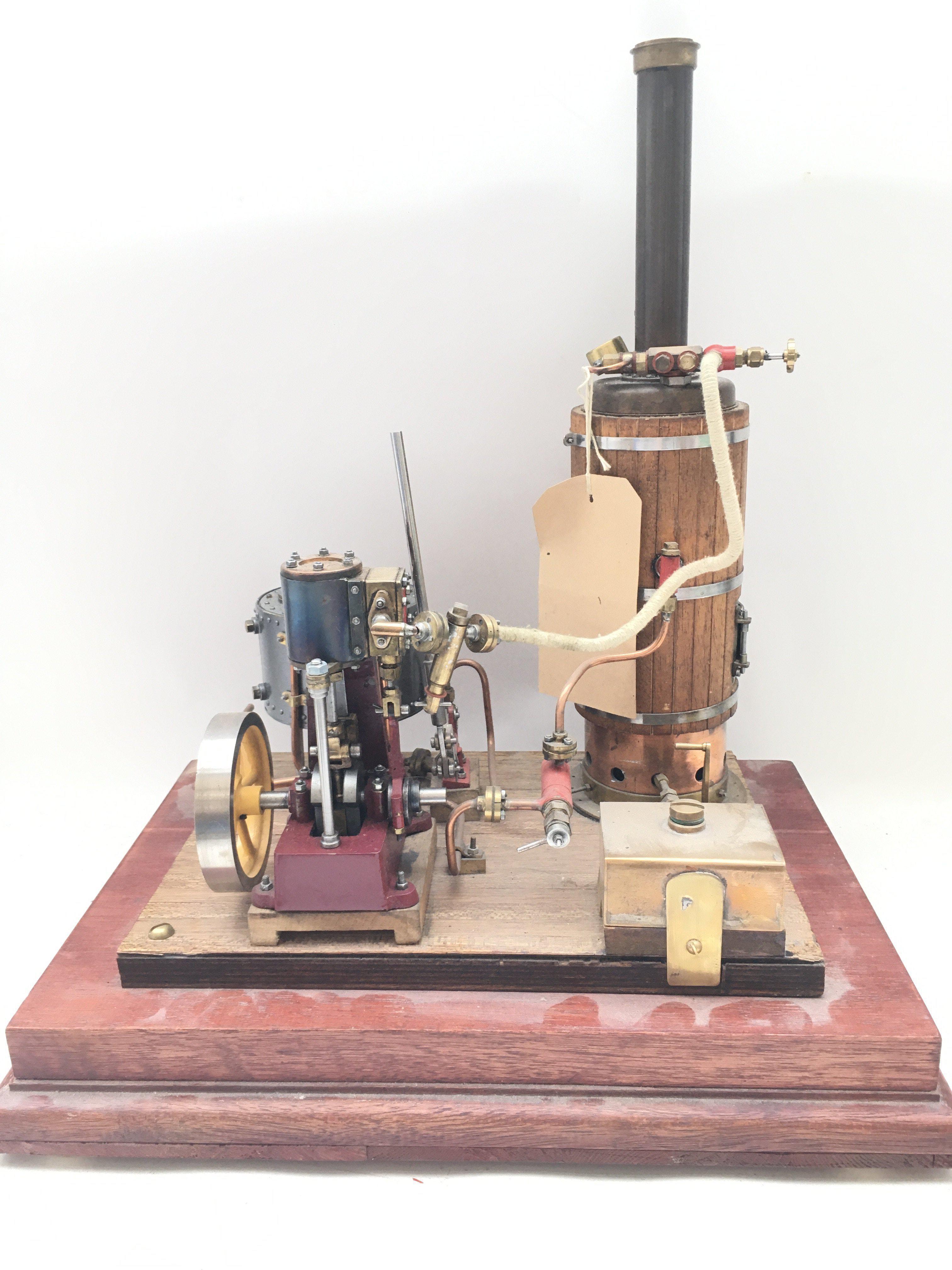 A Steam Engine On Wooden Plinth. Approx Height 45CM.