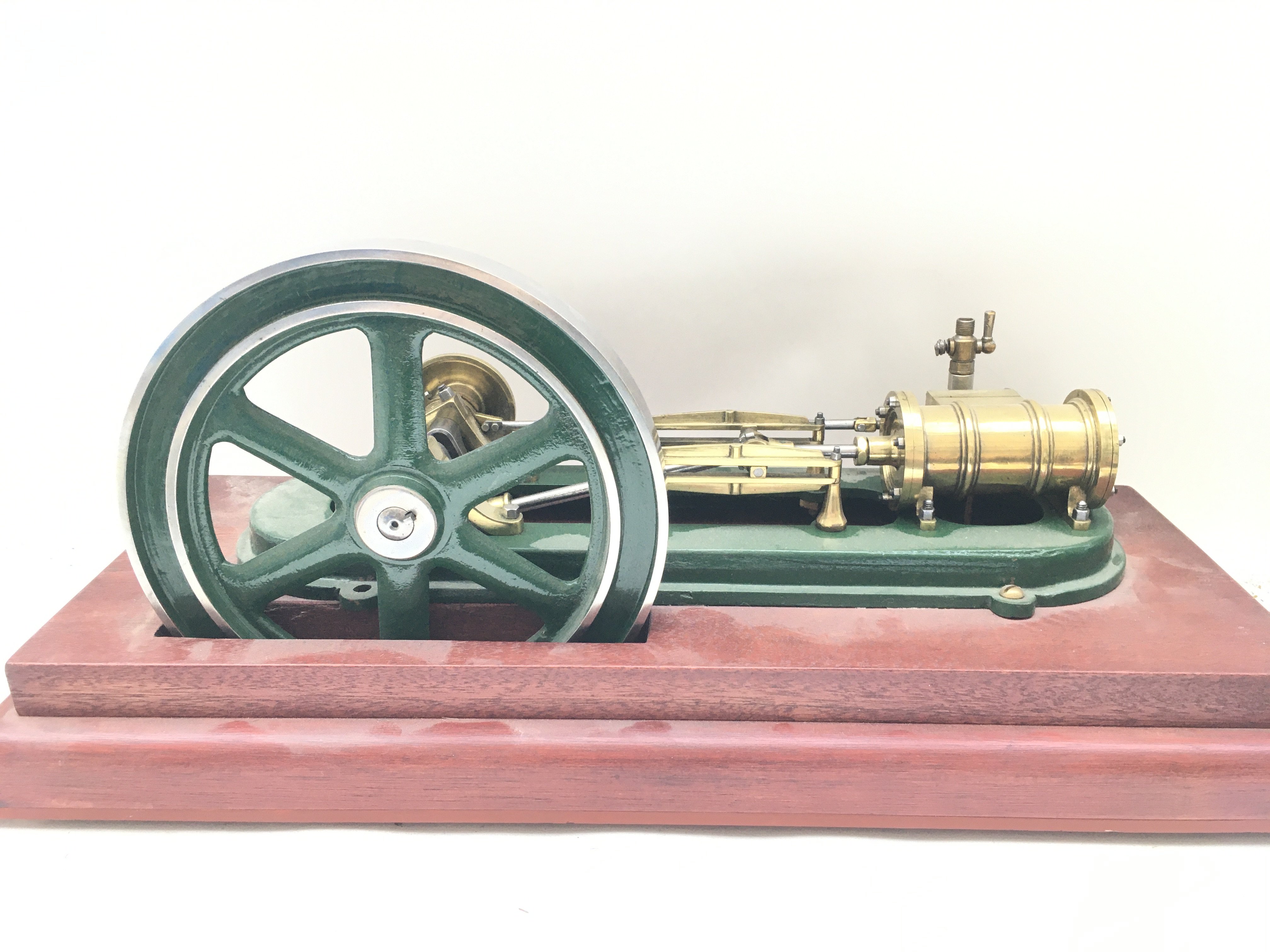 A Vertical Live Steam Engine On Wooden Plinth. Approx Height 24Cm length 58CM.