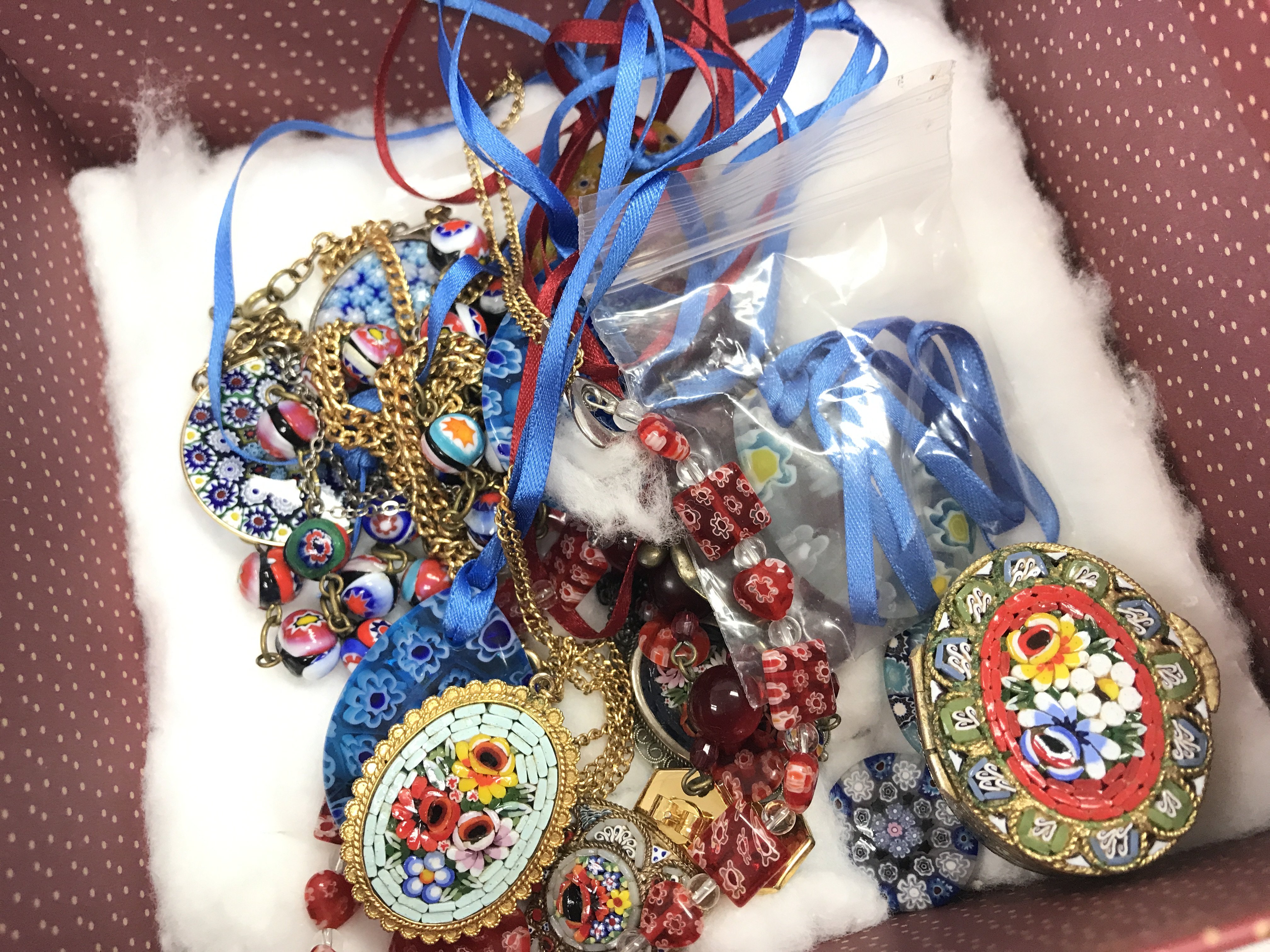Millifori collection and necklaces , two brooches, pill boxes . Postage category A