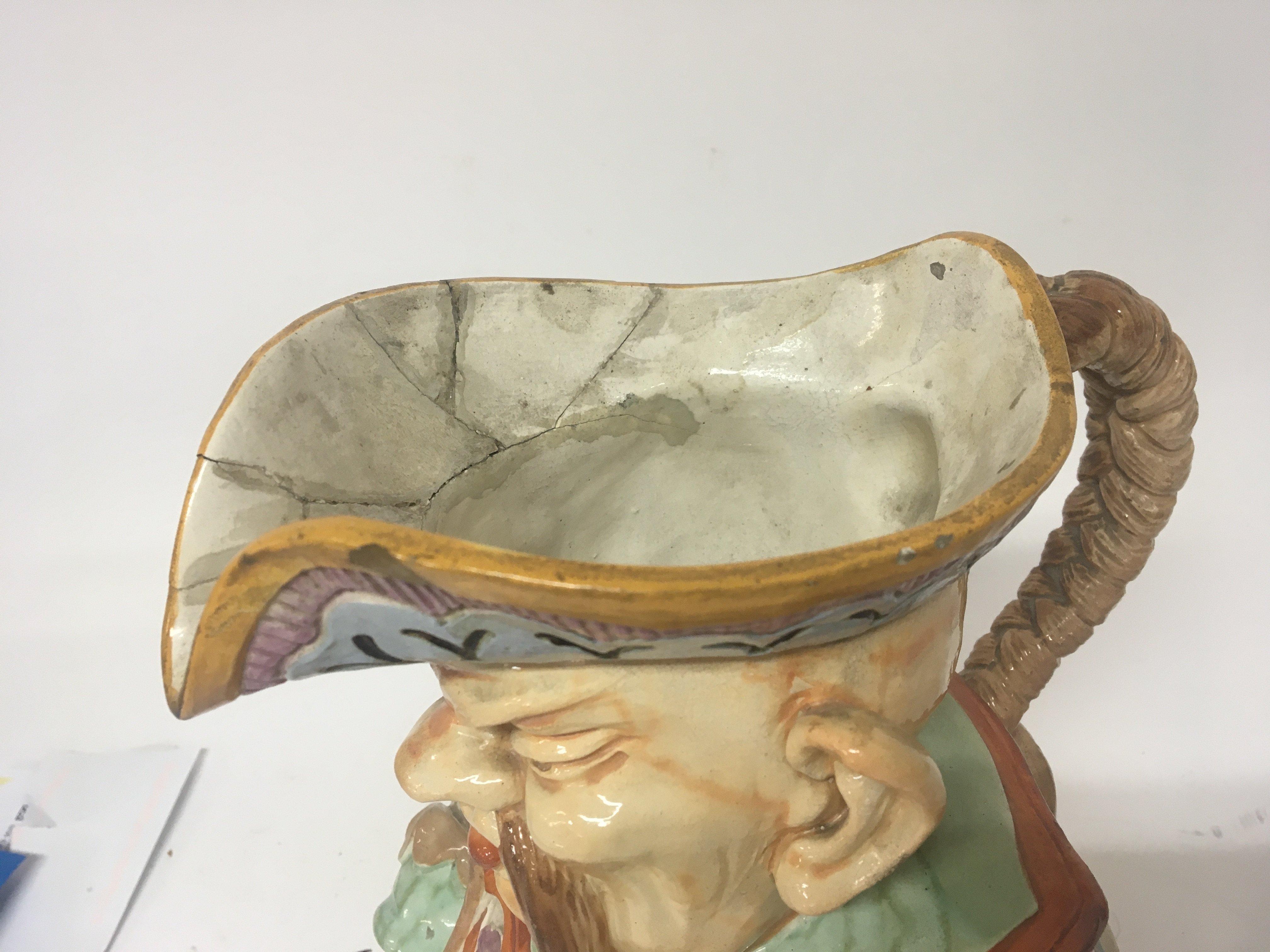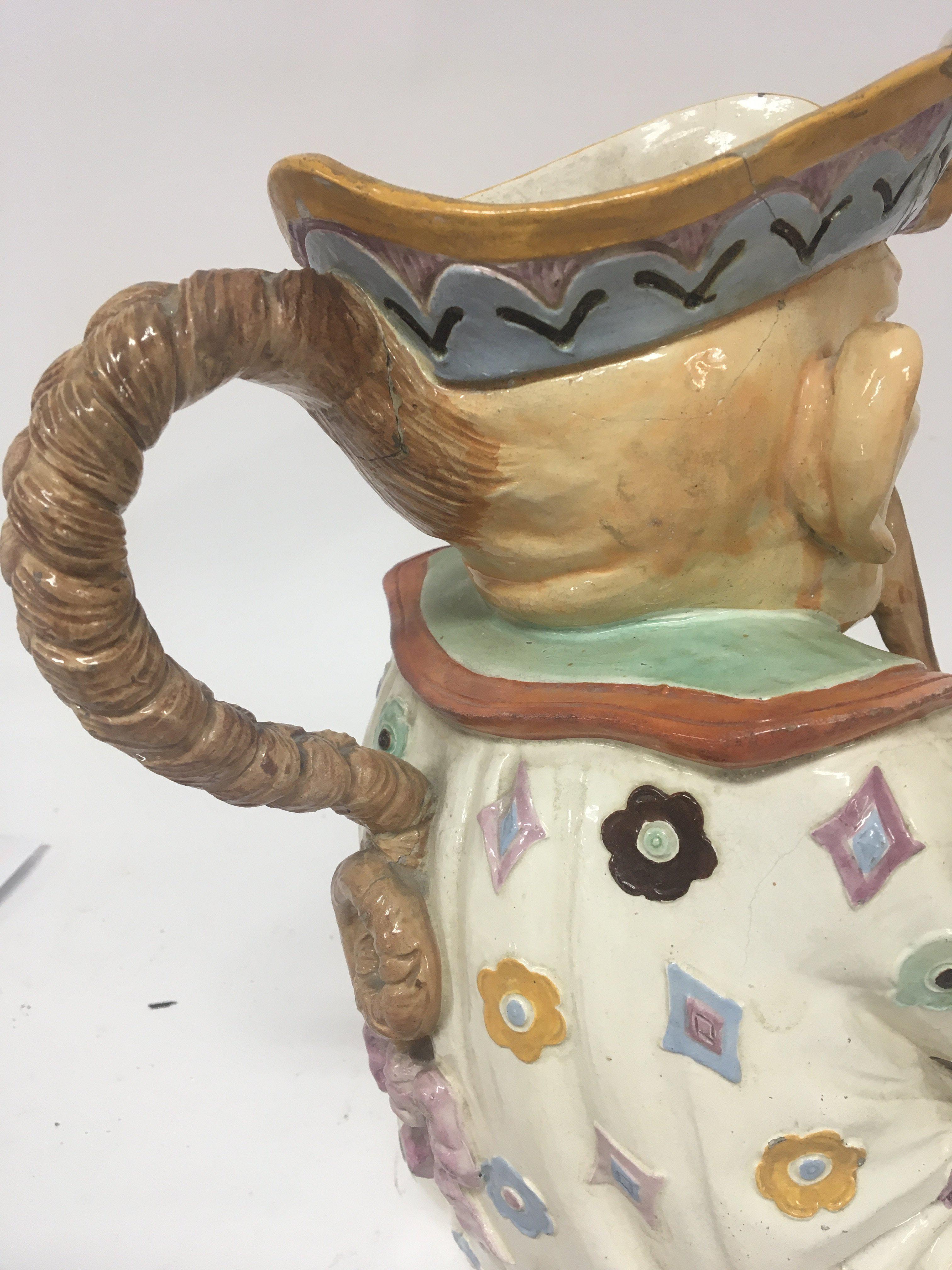 A large Victorian Majolica caricature jug in the form of a seated oriental man marks to the base W & R L 3. Height 30cm some damage see images.