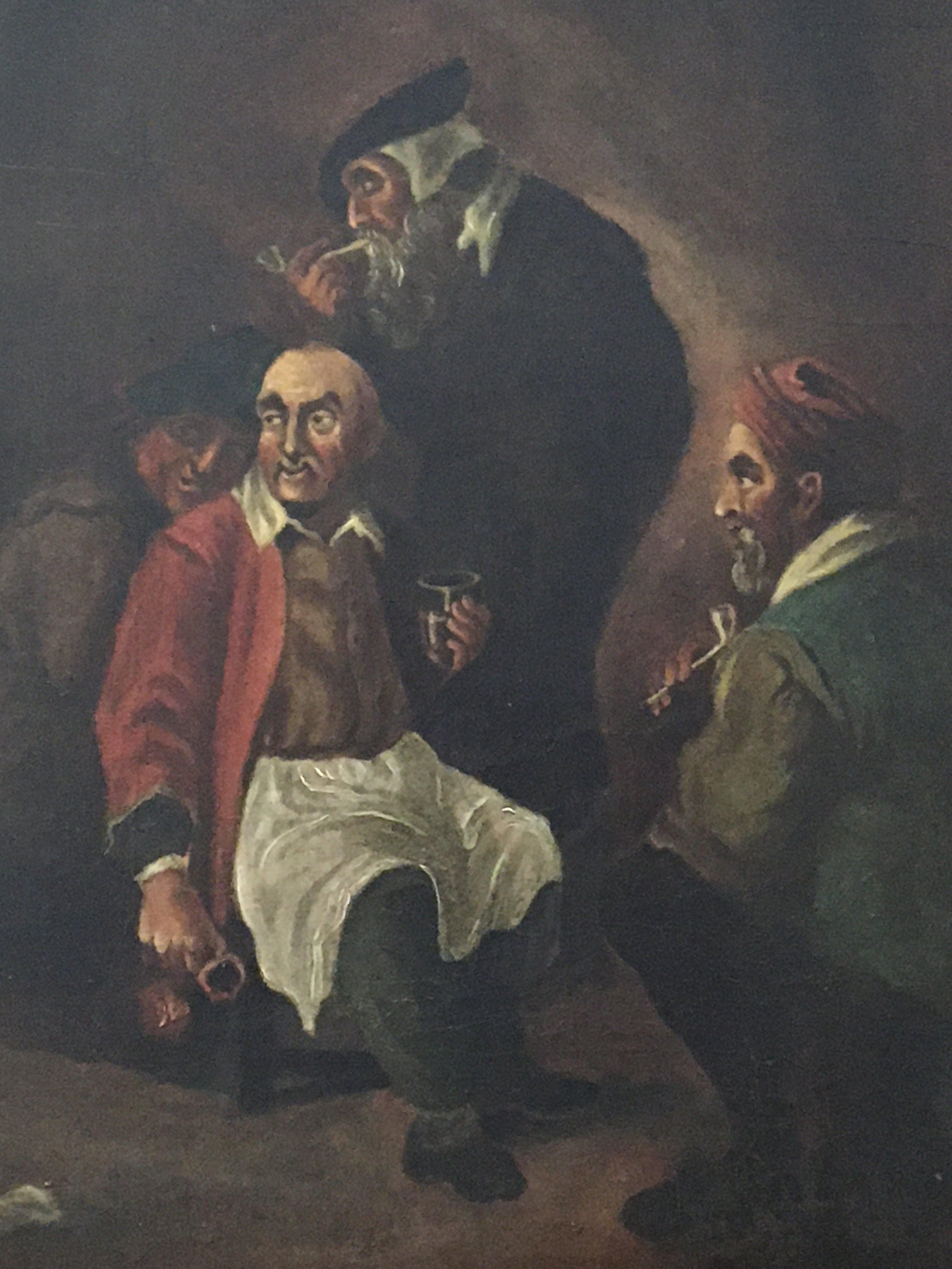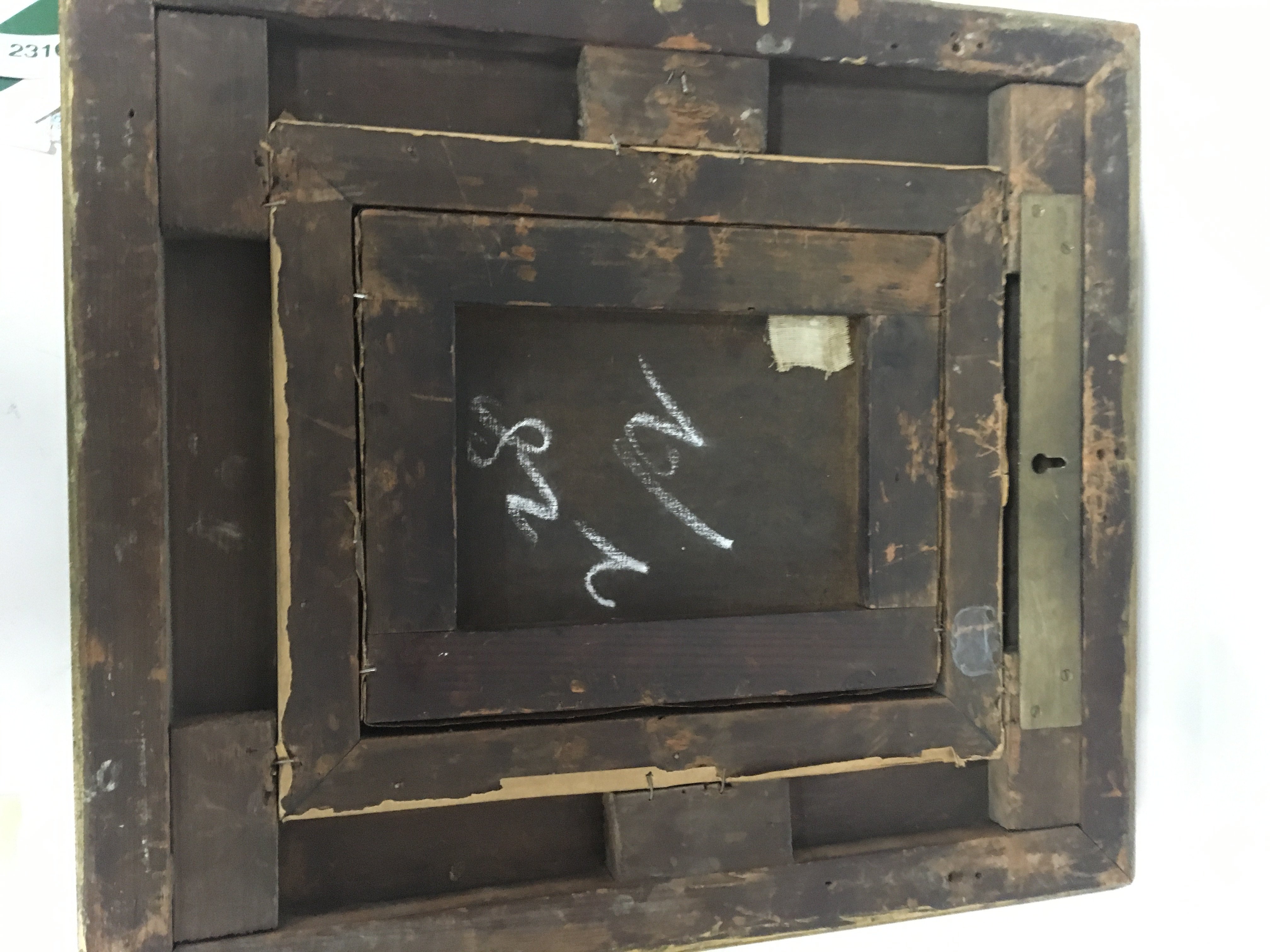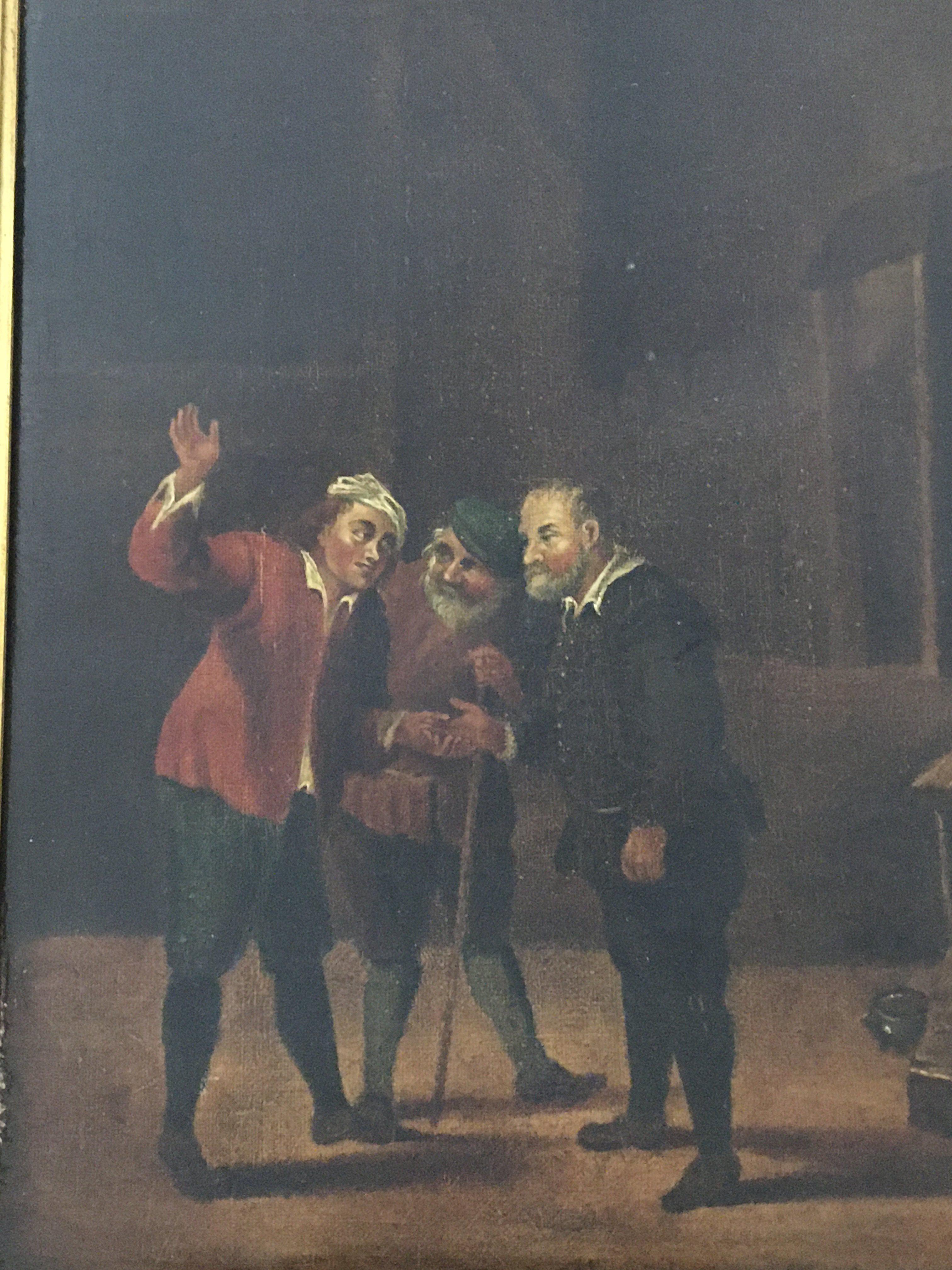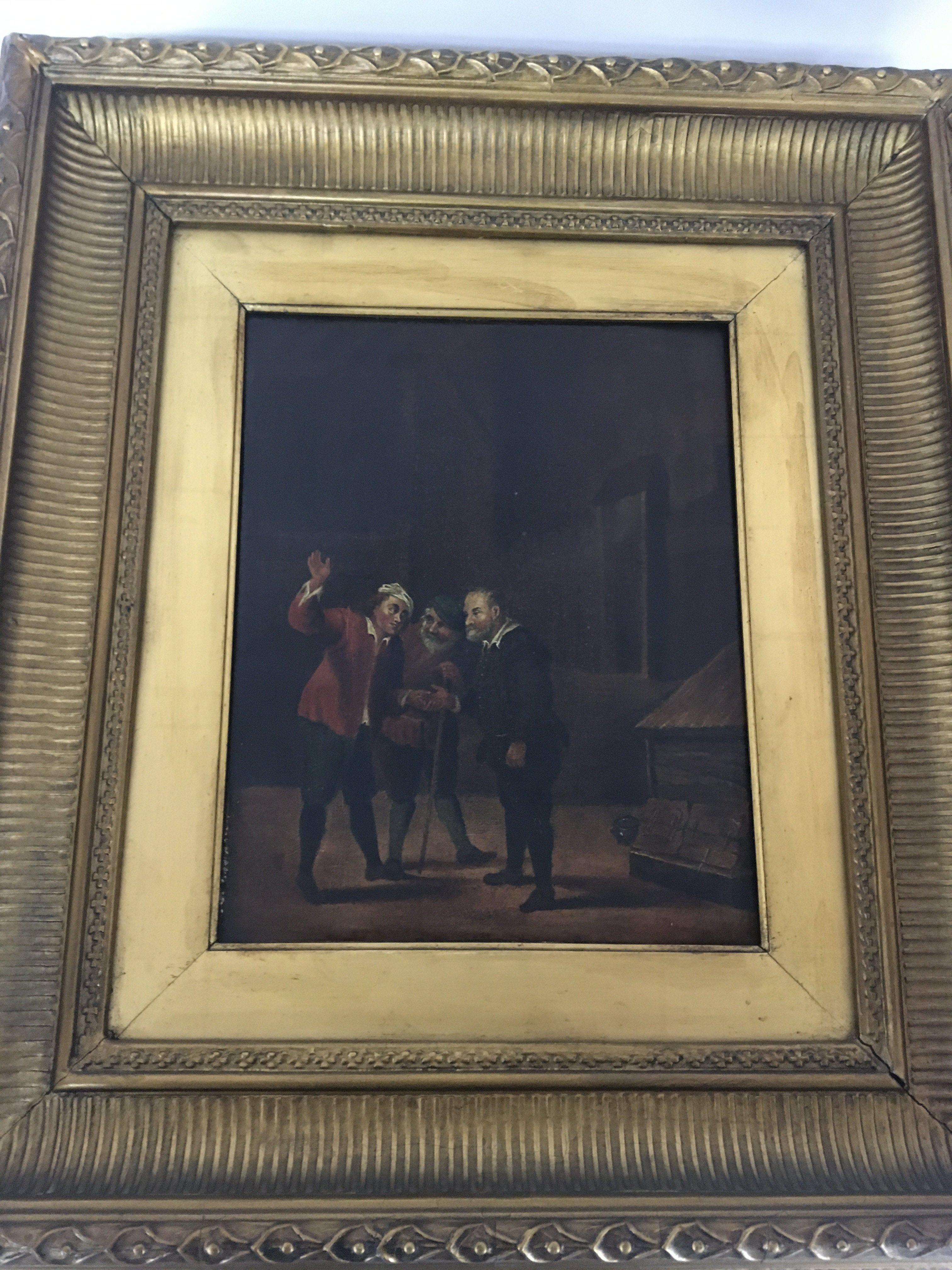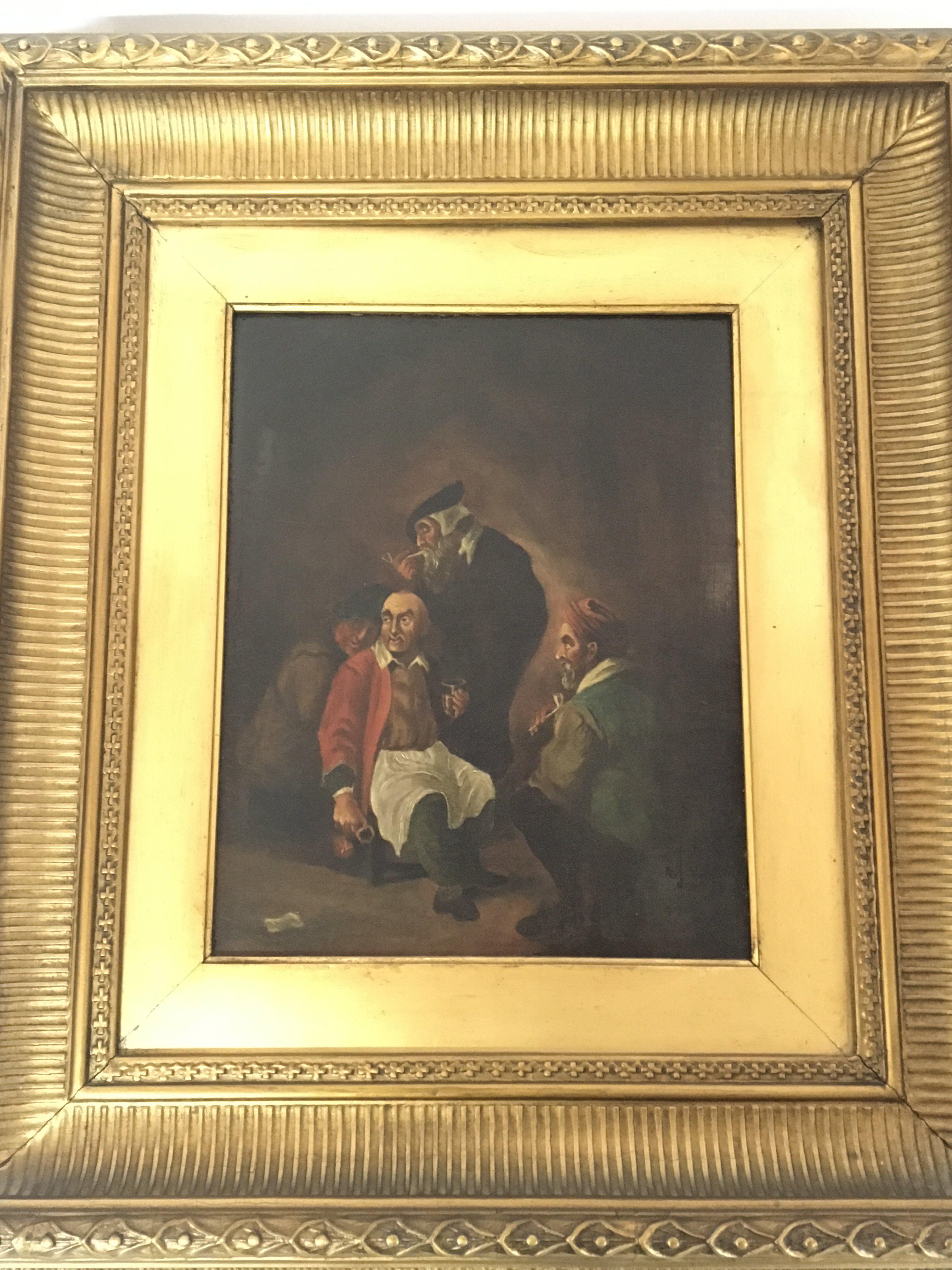 A pair of 19th century Continental oil paintings in gilt frames figures in an interior. (2) 40x45cm