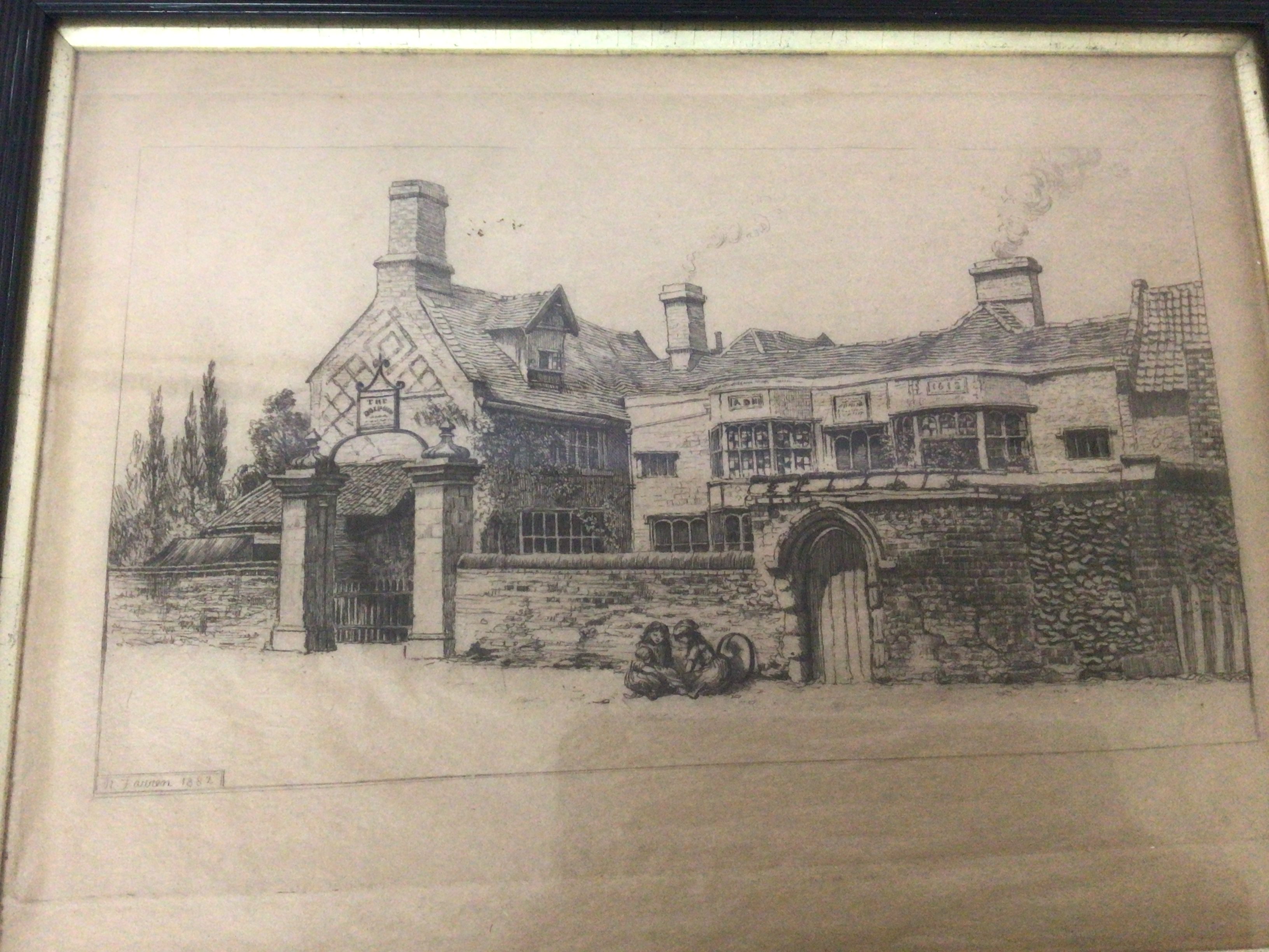A small framed 19th century oil painting on panel portrait of a Continental figure reading a paper. A retrospective oil painting study of Dutch sailing ships and other oddments.