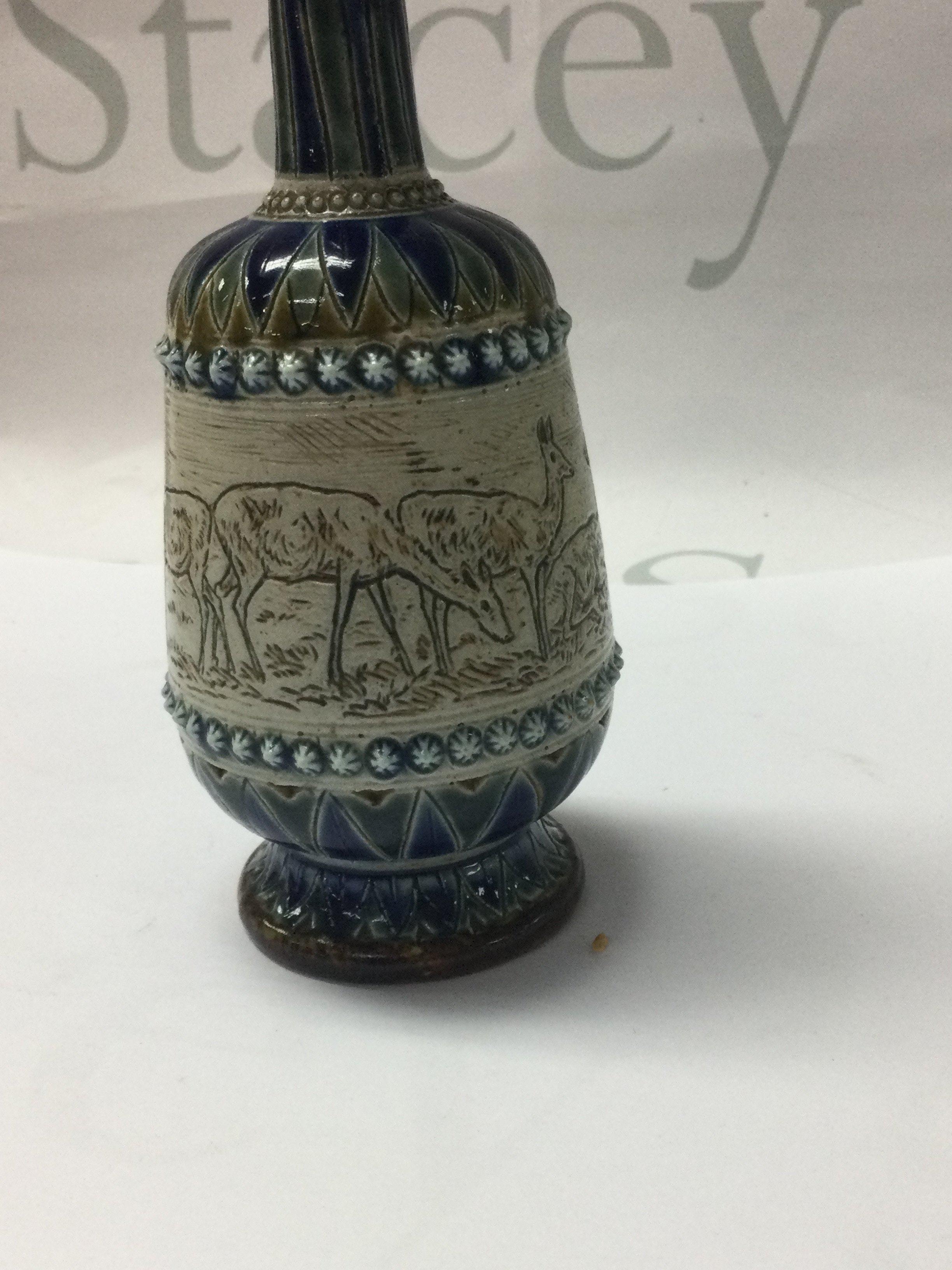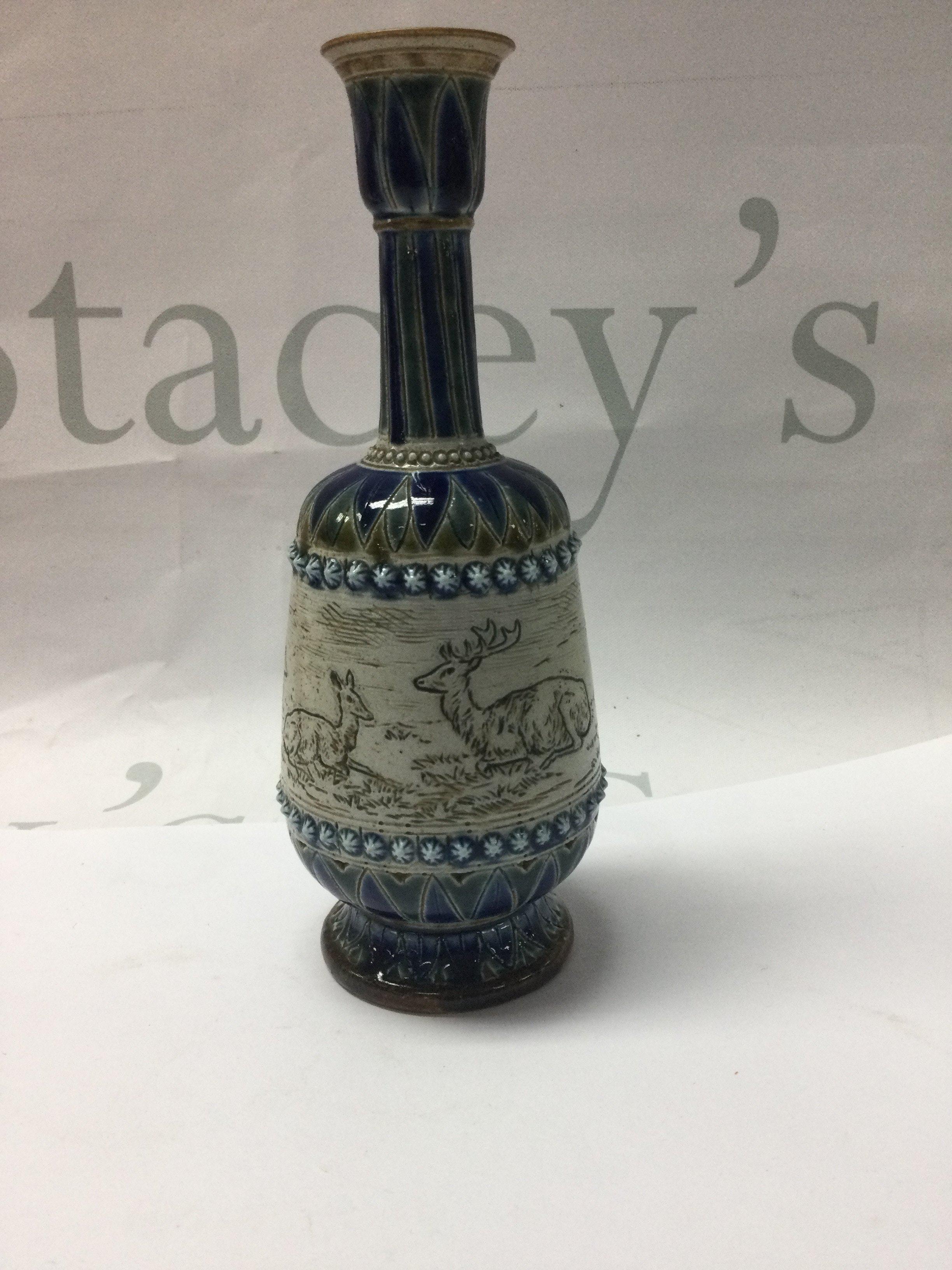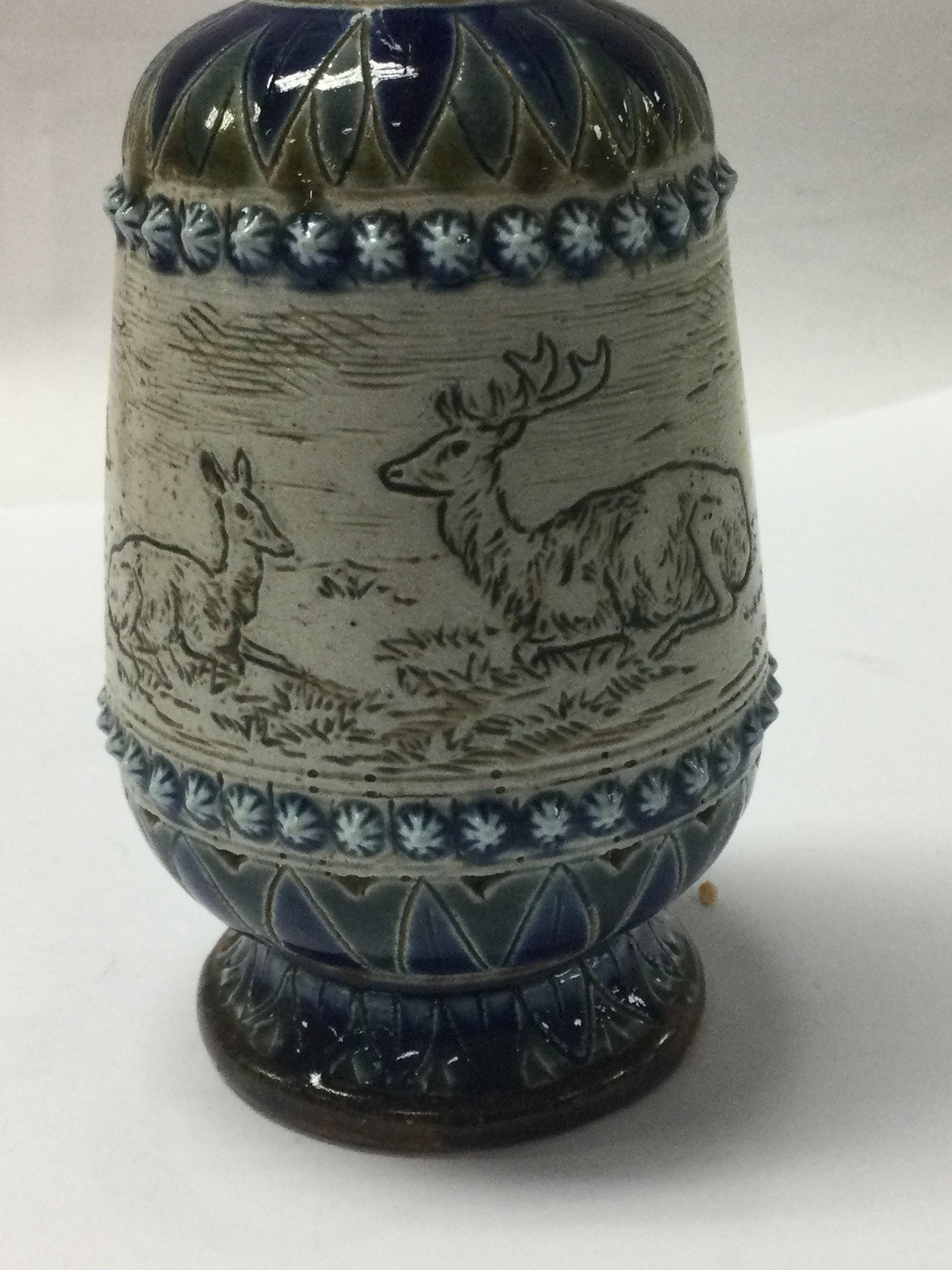 A Doulton Lambeth vase by Florence Barlow.decorated with deer . 17 cm