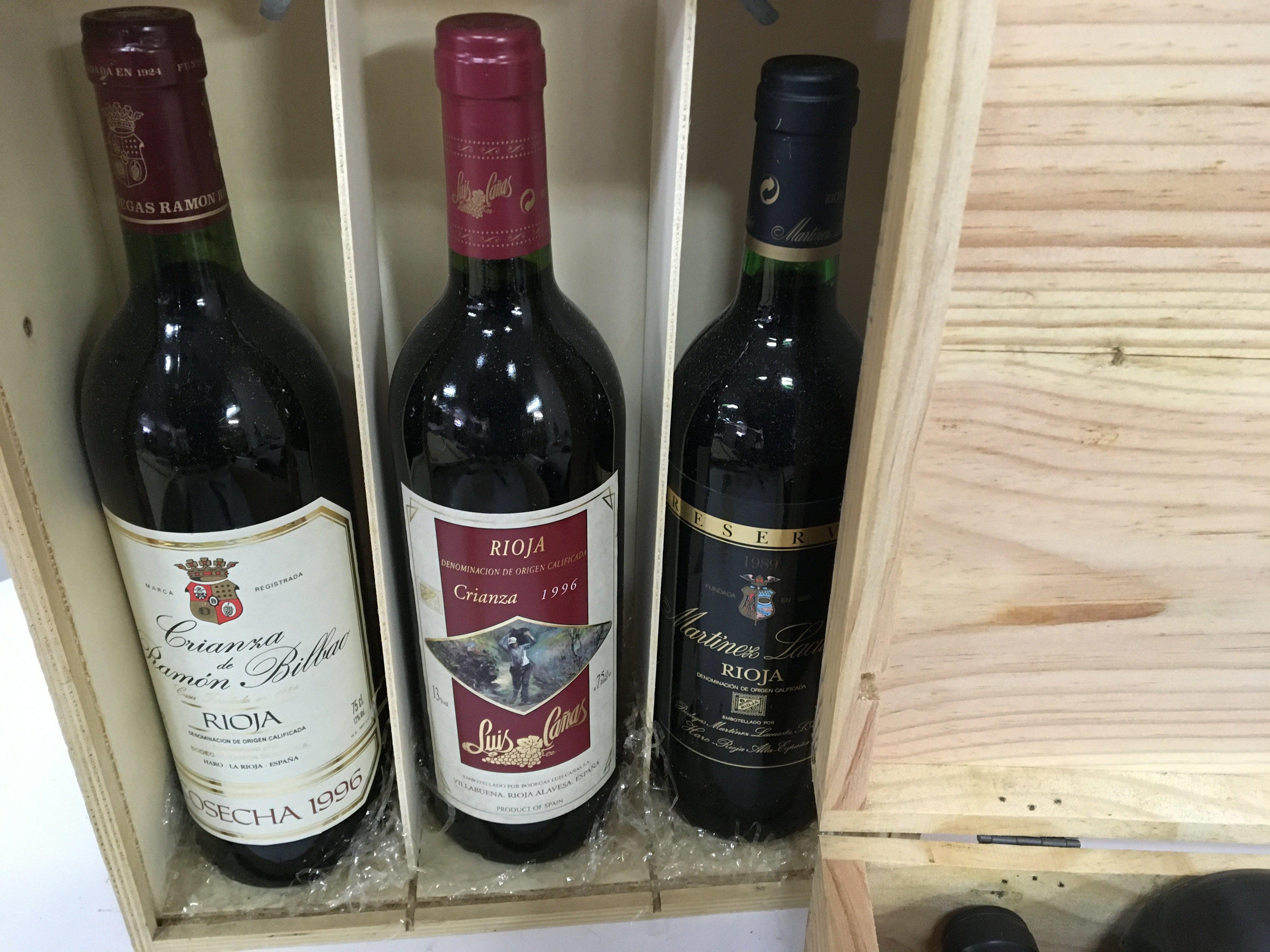 A case containing six bottles of Baron Philippe De Rothschild 1995 Pauillac and case containing three bottles of Spanish 1996 Rioja