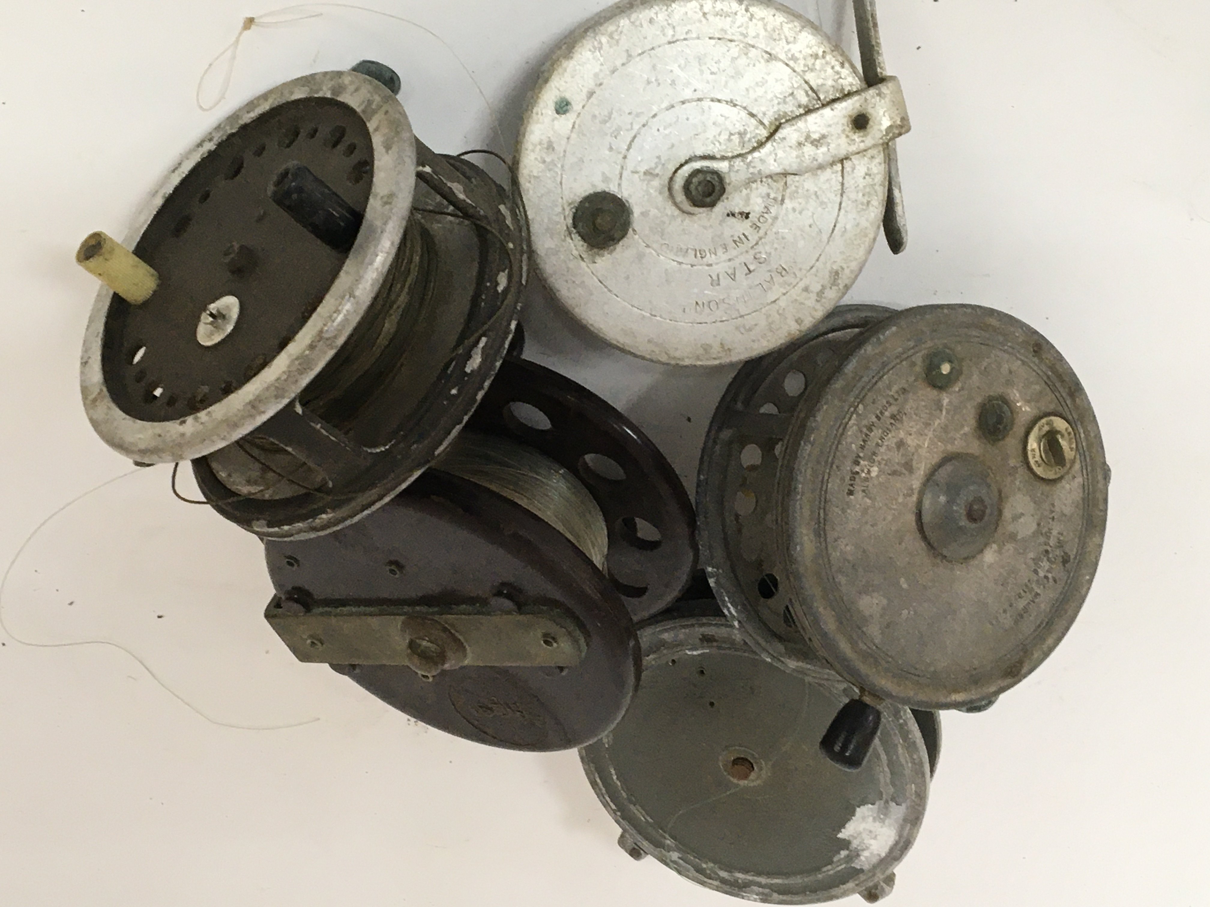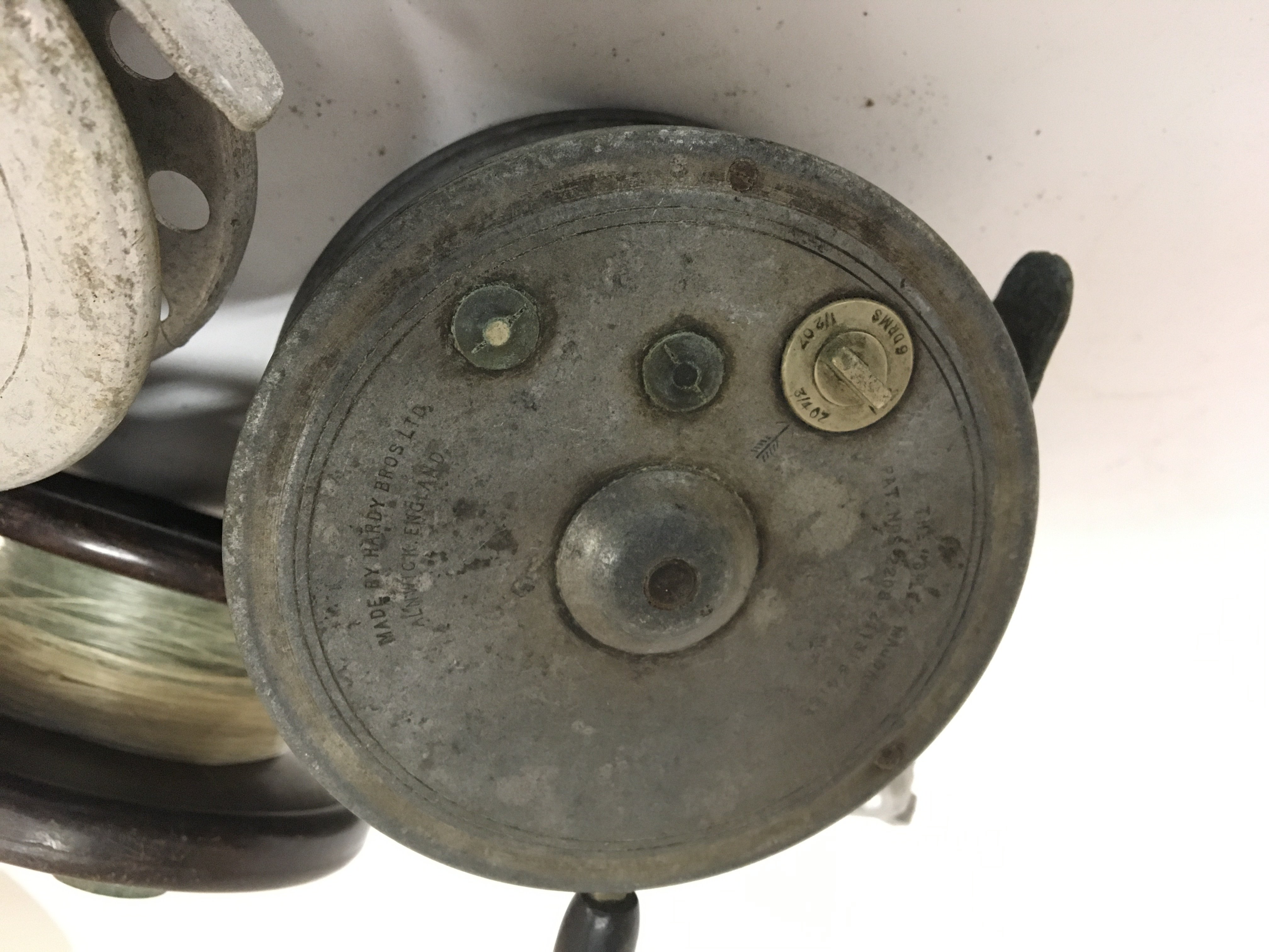 A Vintage Hardy Brothers of Alnwick fishing reel The Silex Major other vintage fishing reels a box of fishing tackle and oddments and split cane fishing rod