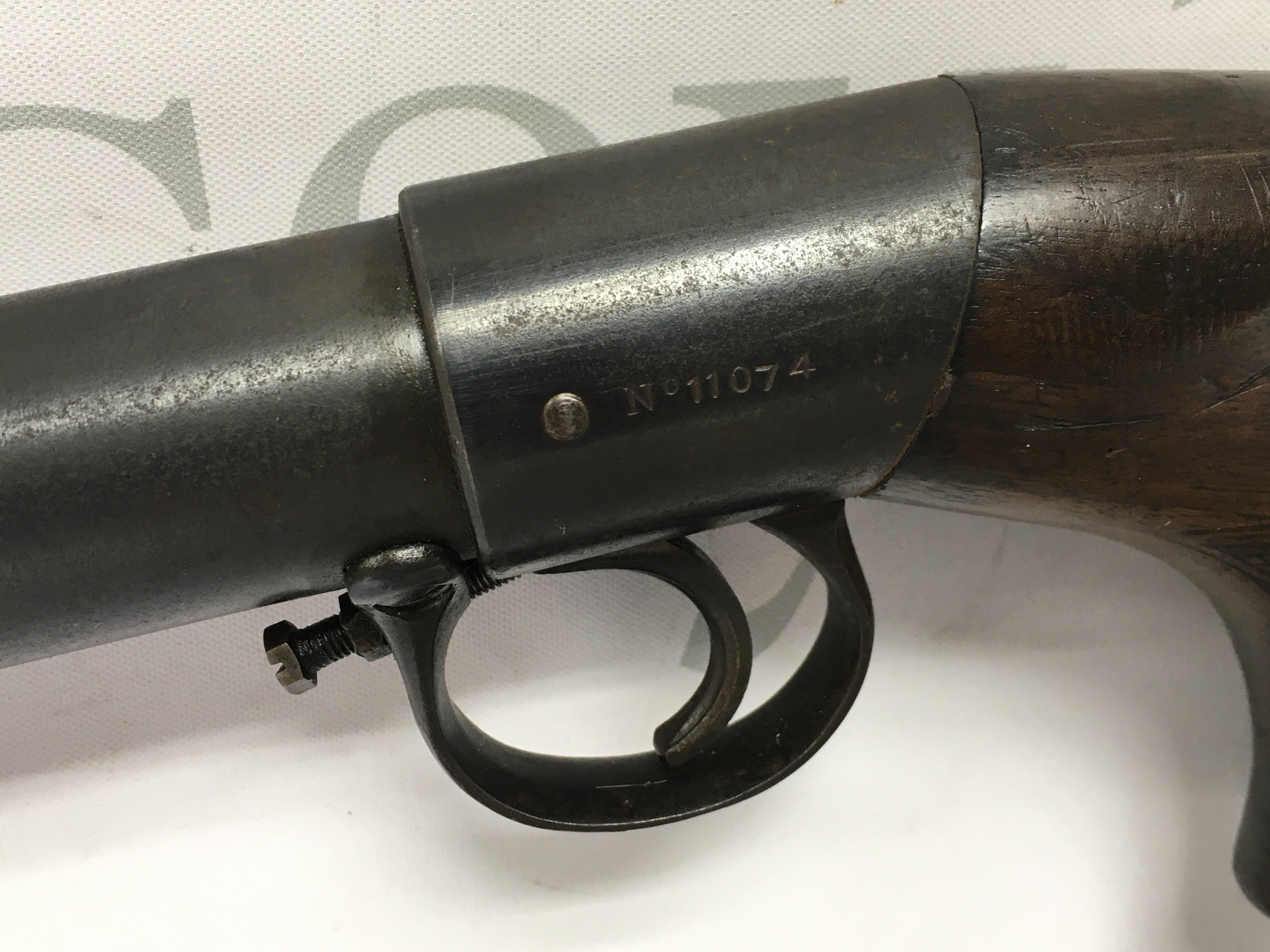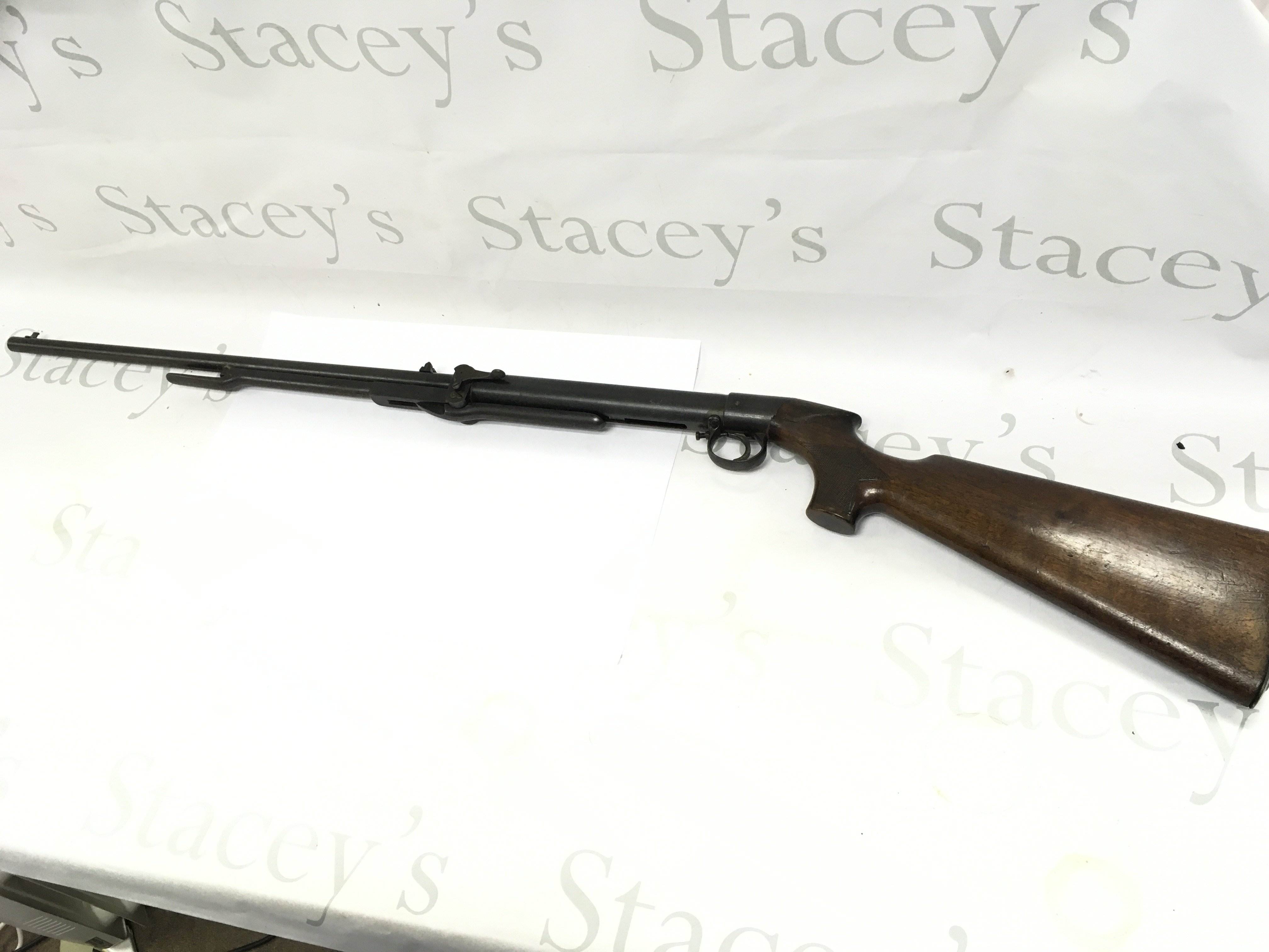 A vintage Lincoln air rifle with slip. 110cm overall length.