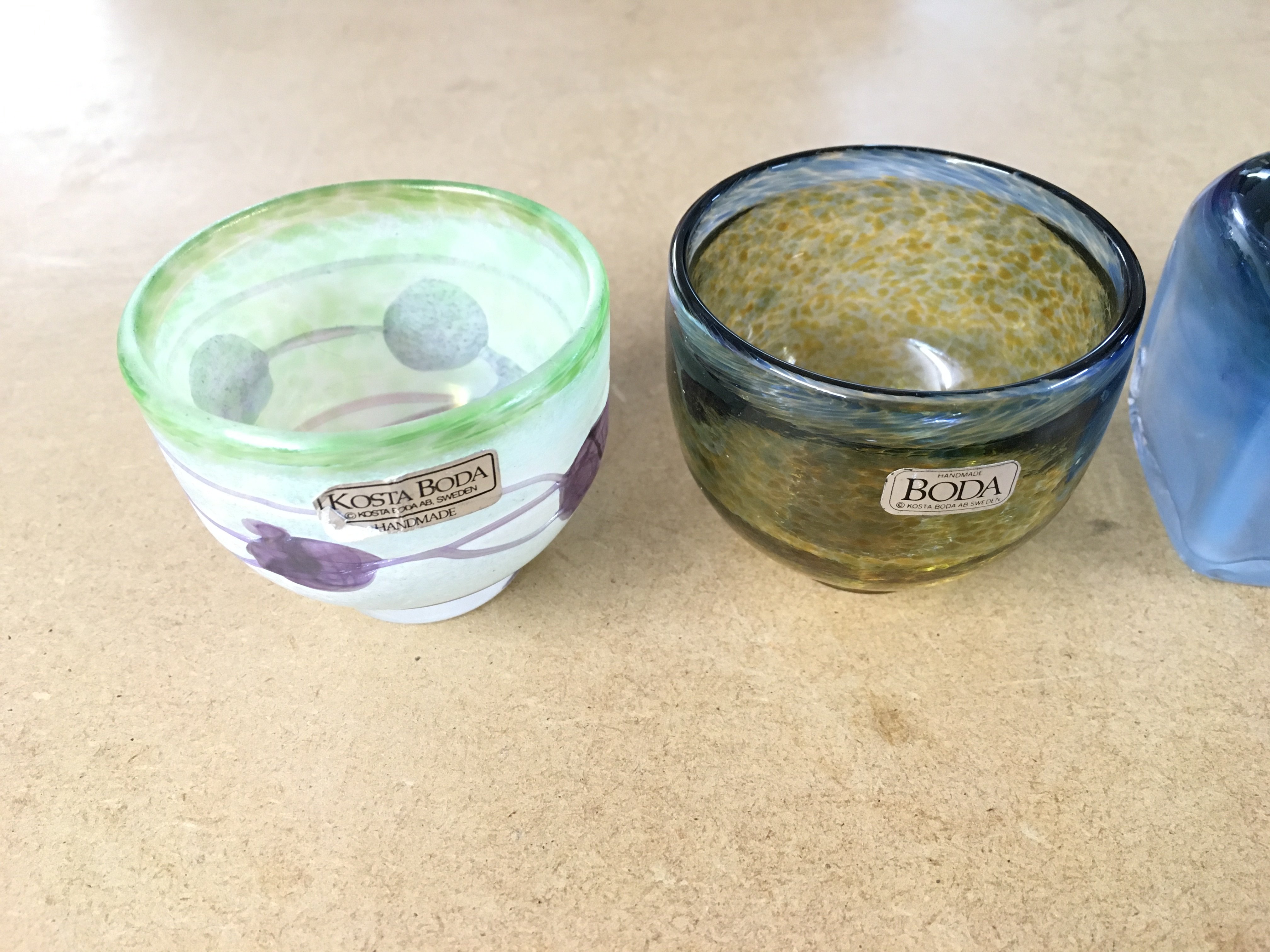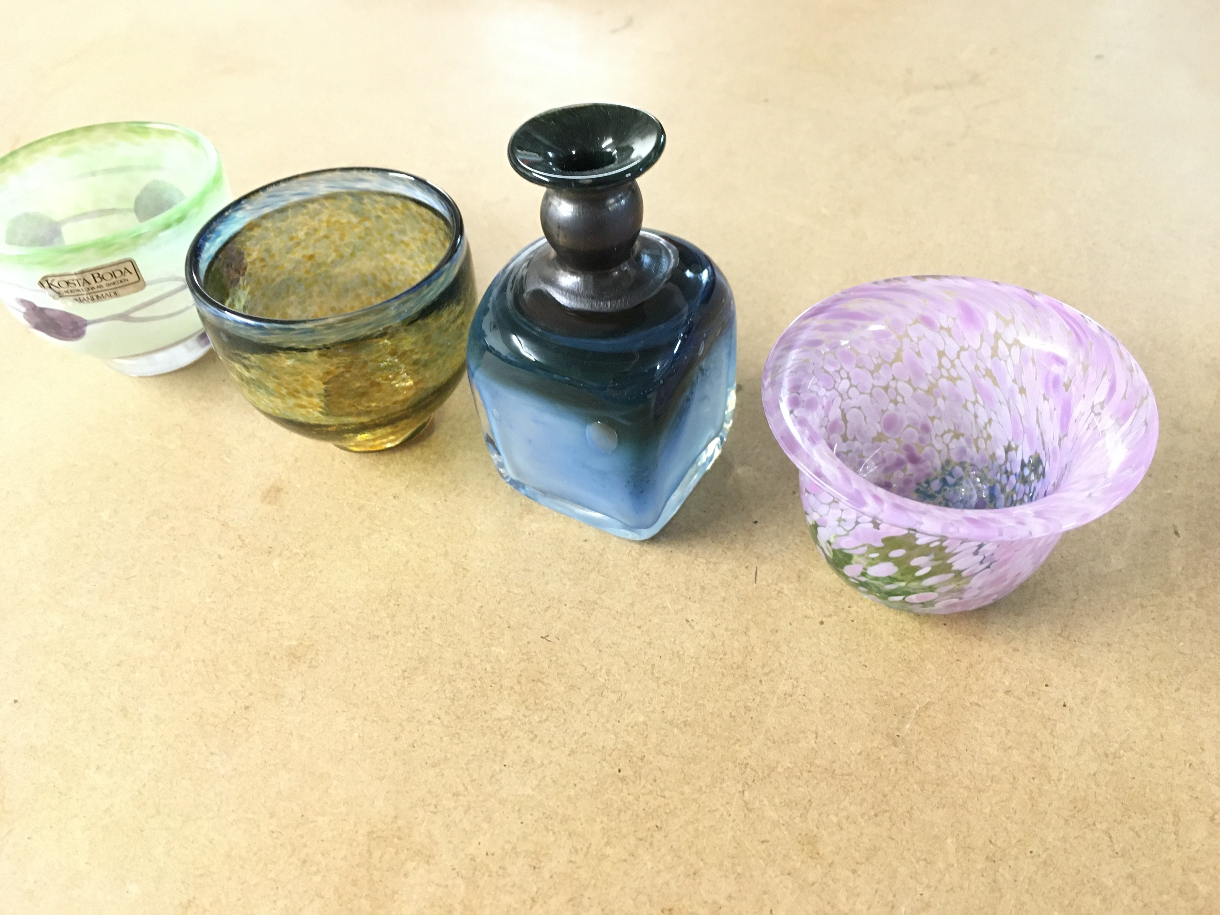 Four Kosta Boda miniatures from Galaxy and Satellite ranges by Bertil Vallien and Ulsica Hydman Vallien