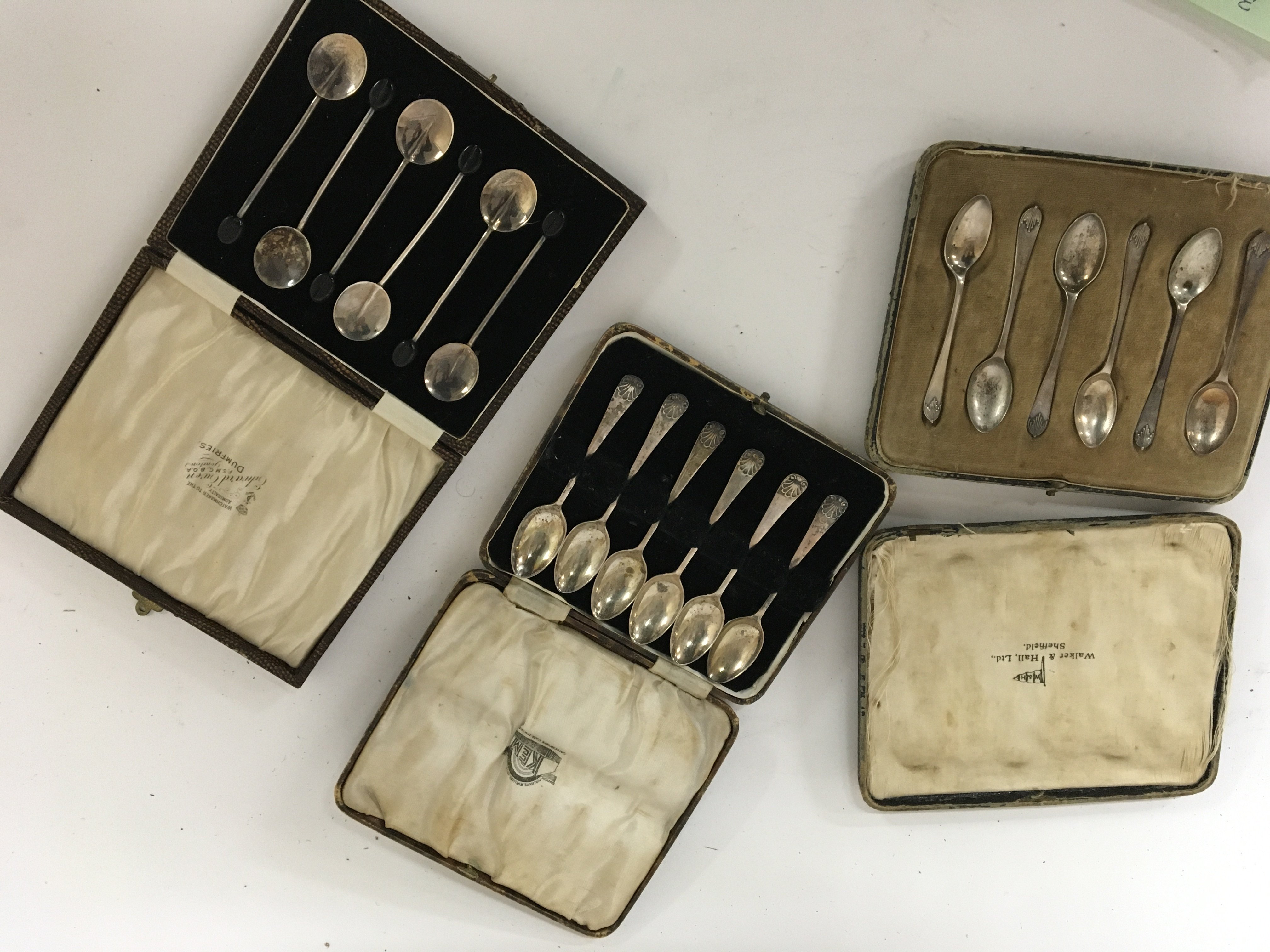 Three cased sets of silver tea and coffee spoons Walker Hall and other makers (3)