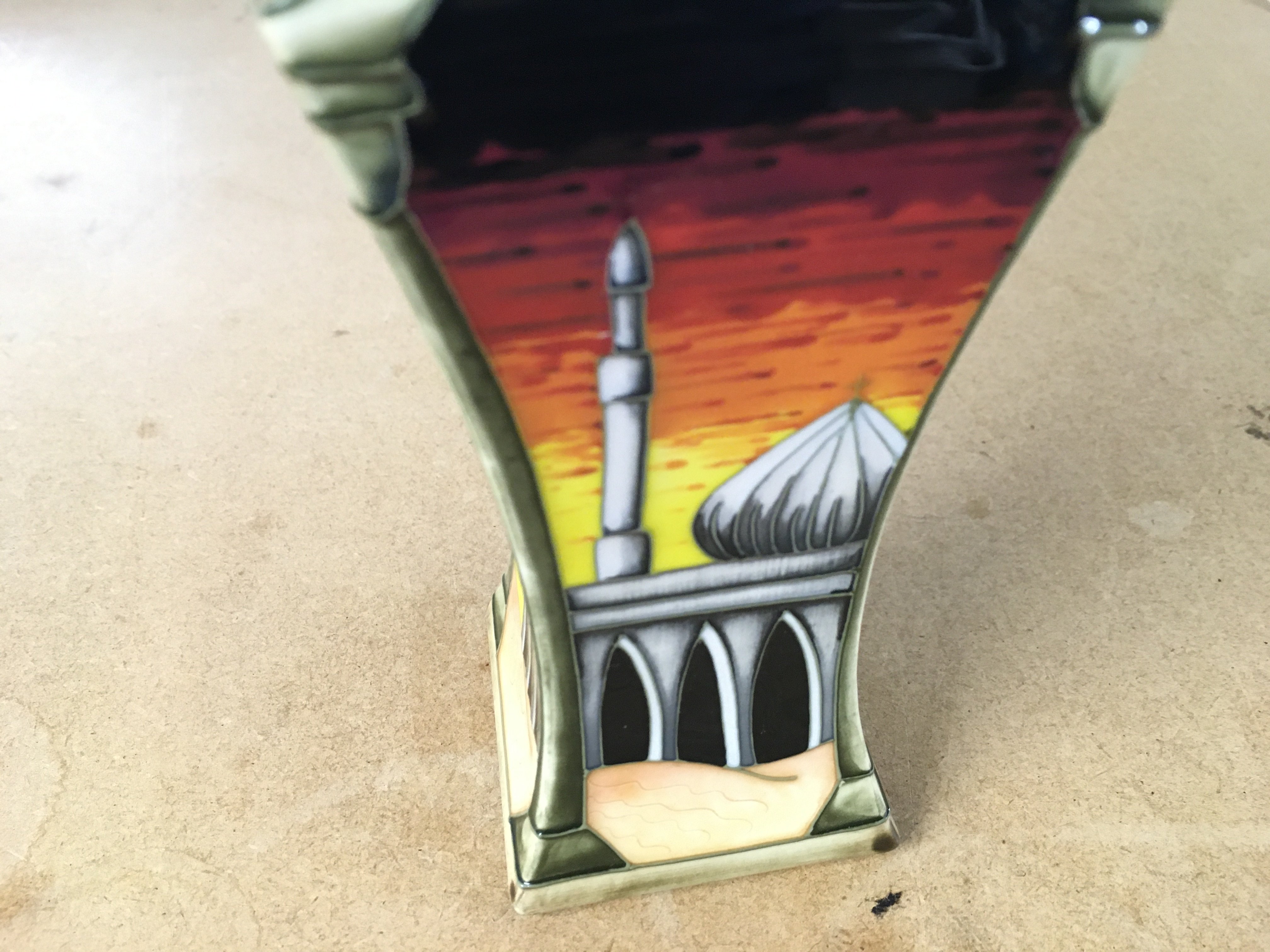 A moorcroft damascus vase designed by Beverley Wilkes 2009. 16.5cm tall and in good condition.