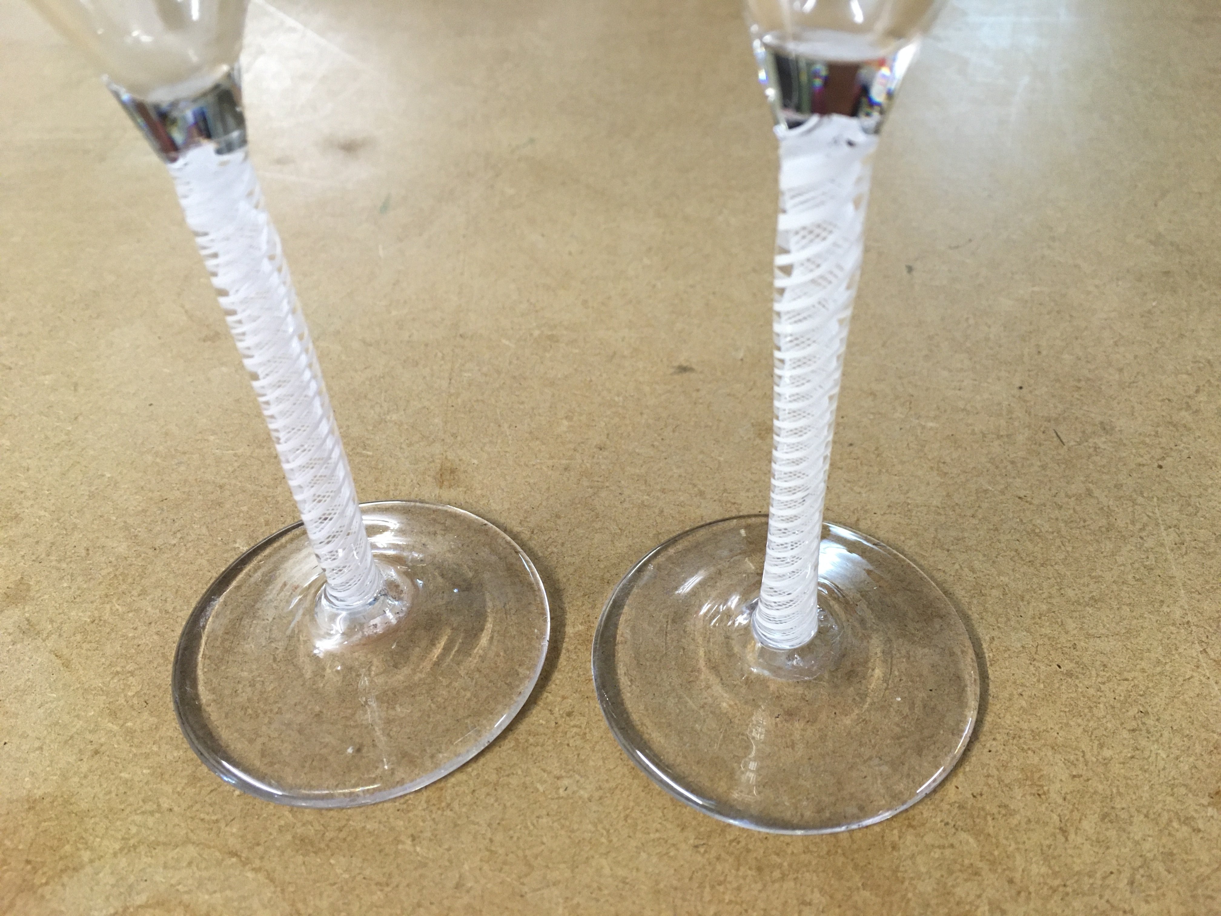 A apir of late 18th century opaque twist glasses. 11.5cm tall. Good condition