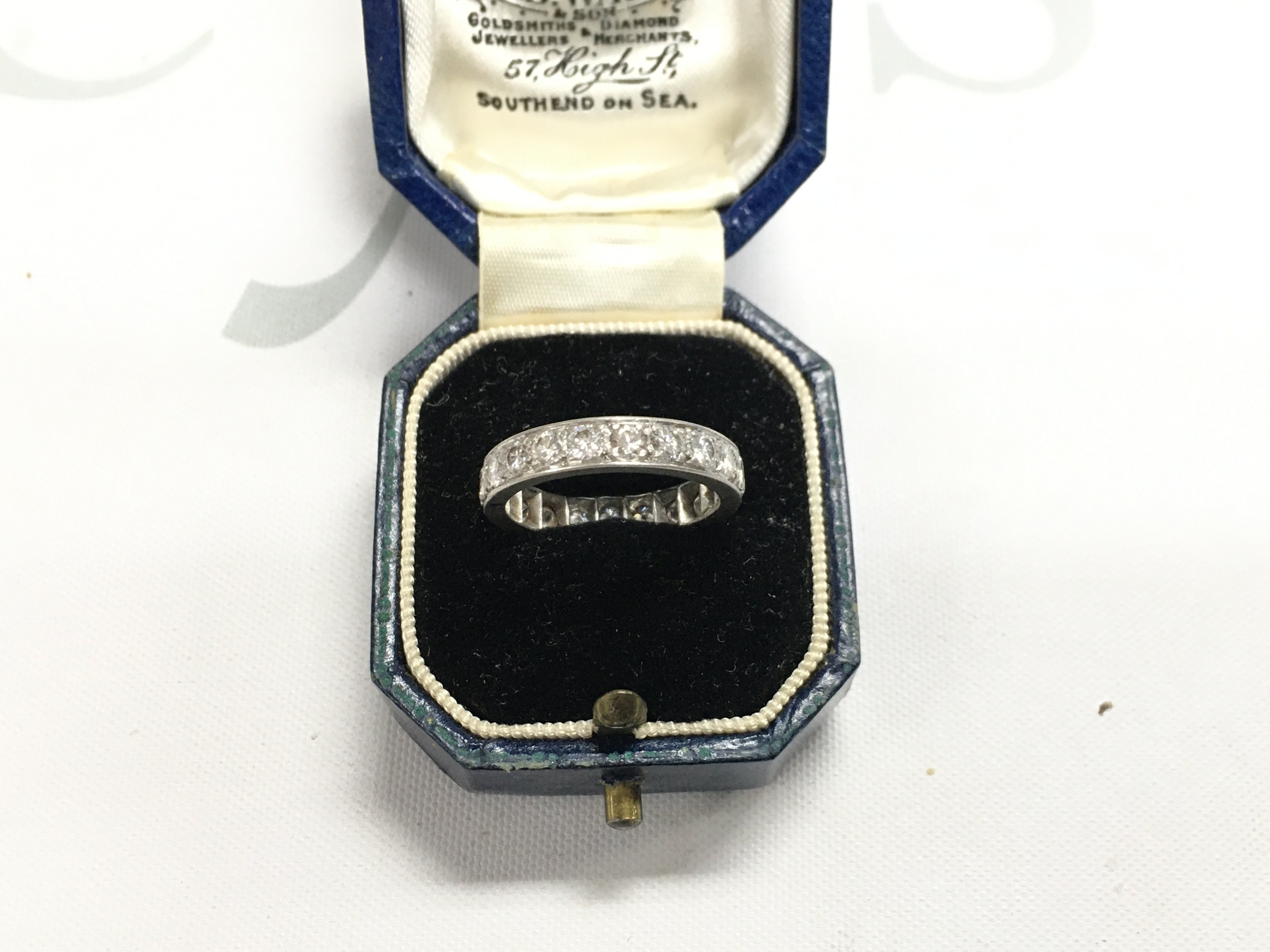 A platinum eternity ring set with diamonds. Approx weight 4.53 grams, size L.