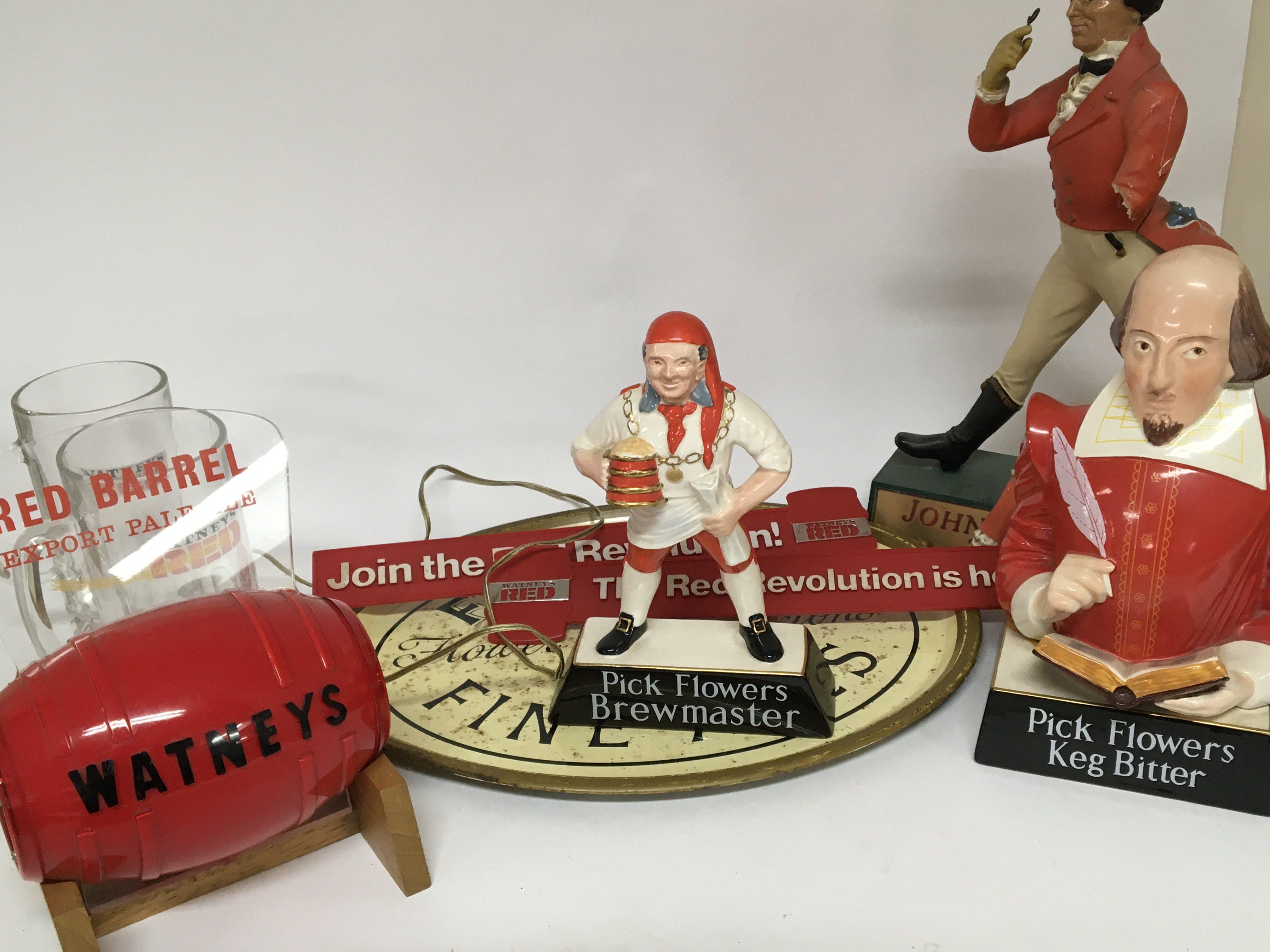 A collection of Breweriana including Carlton Ware Pick flowers figures.