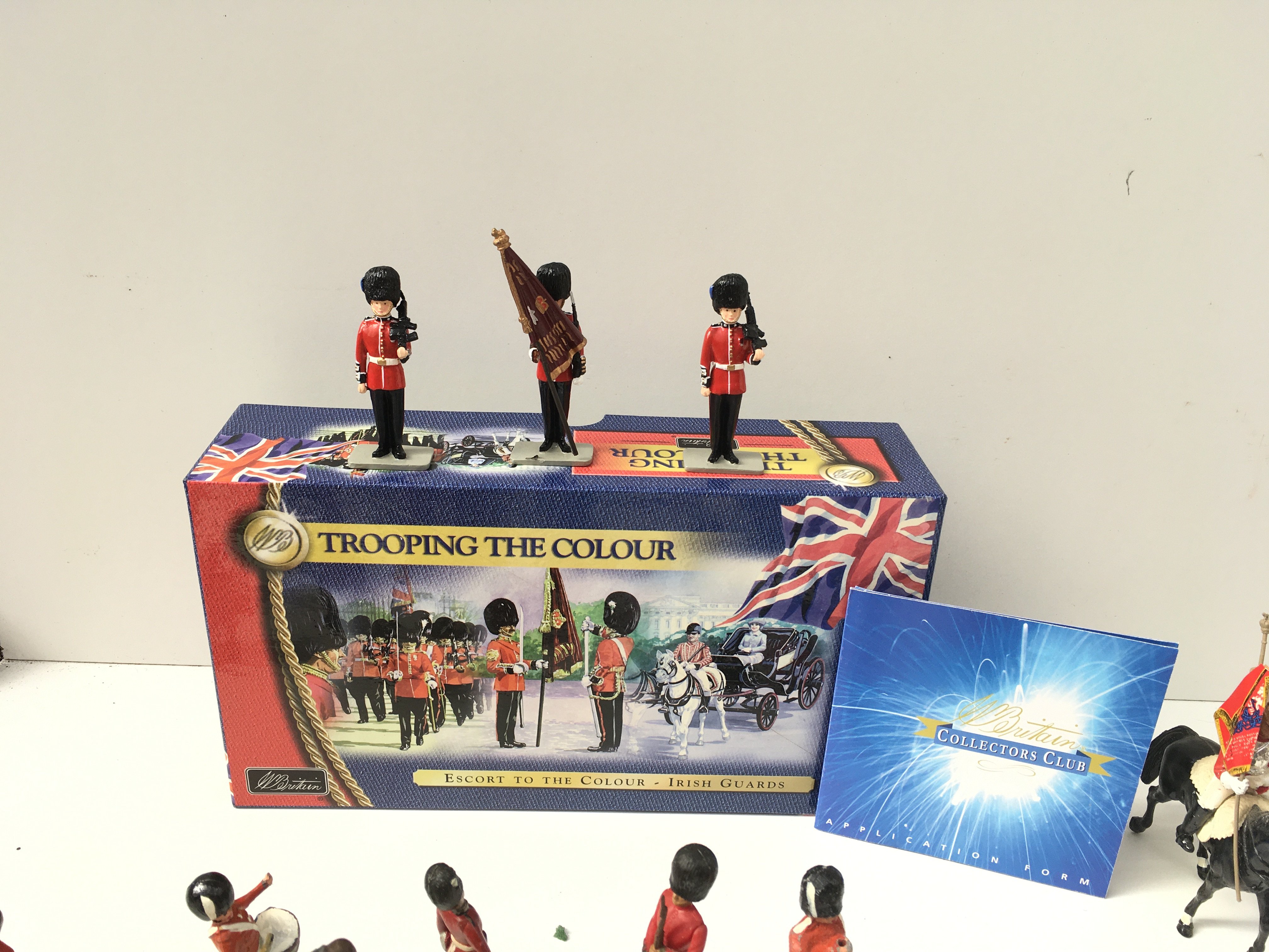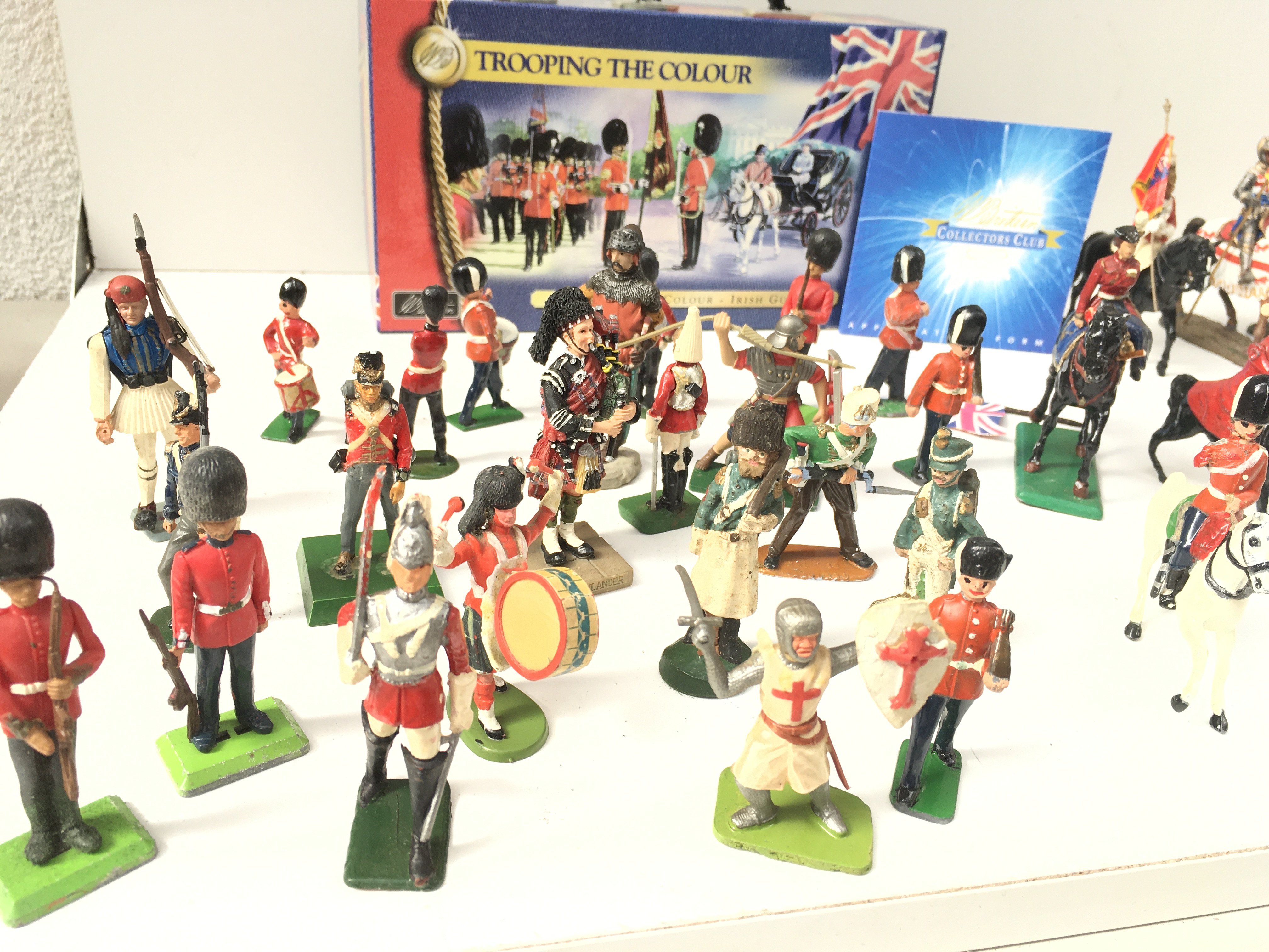 A mixed collection of model soldiers of approximately 50 pieces mostly metal pieces. Includes a boxed Britains Trooping the colour. No reserve