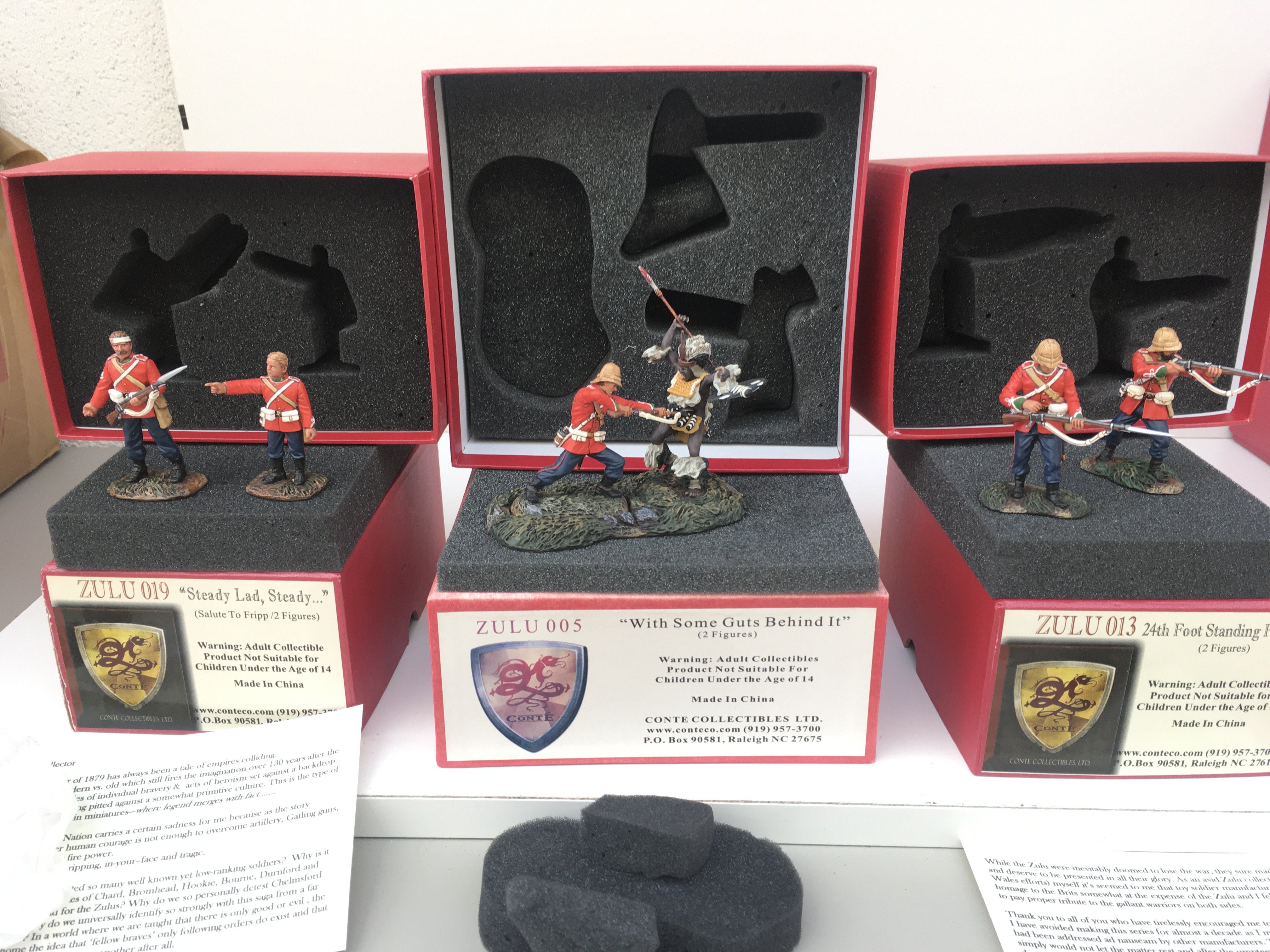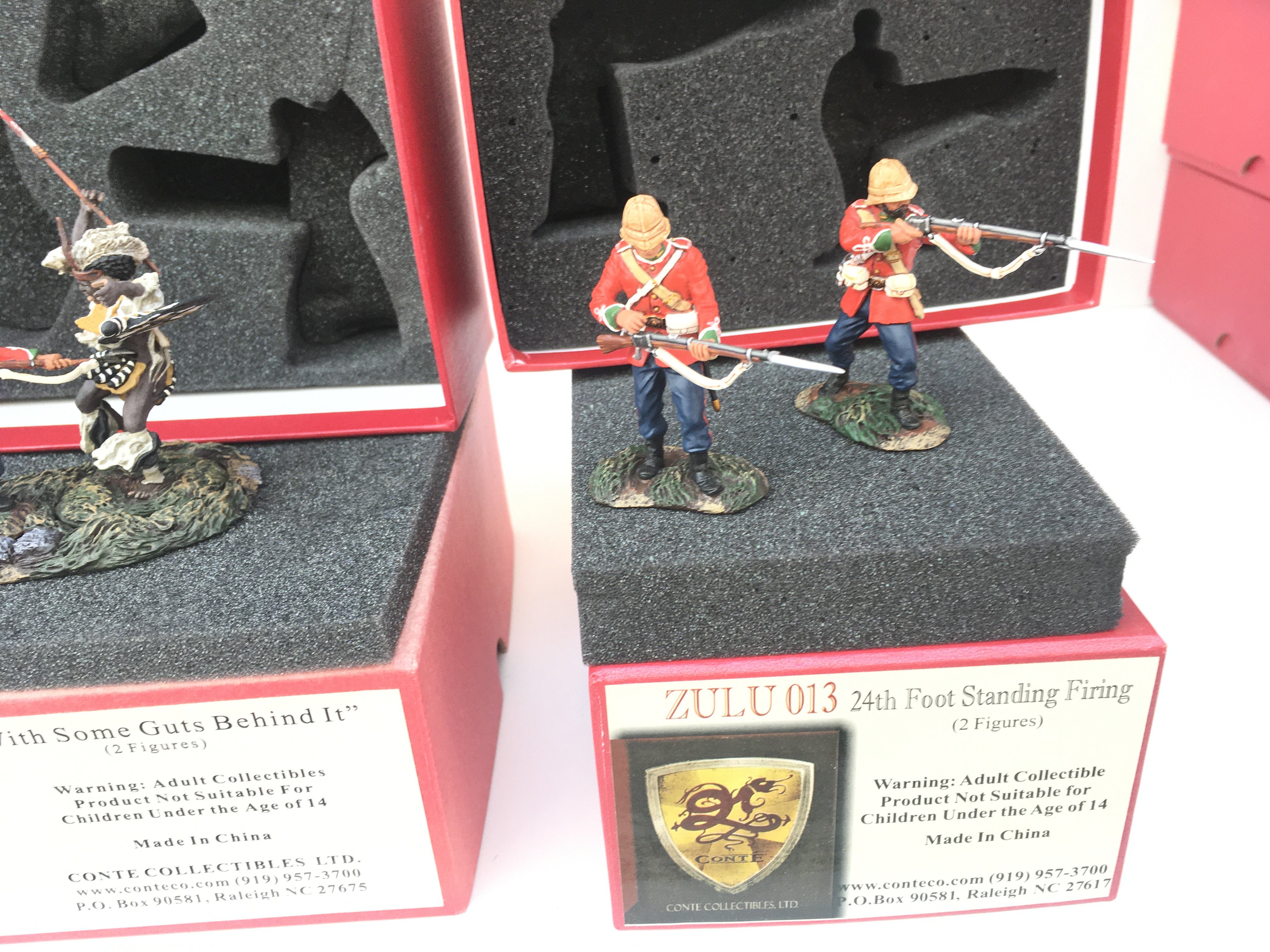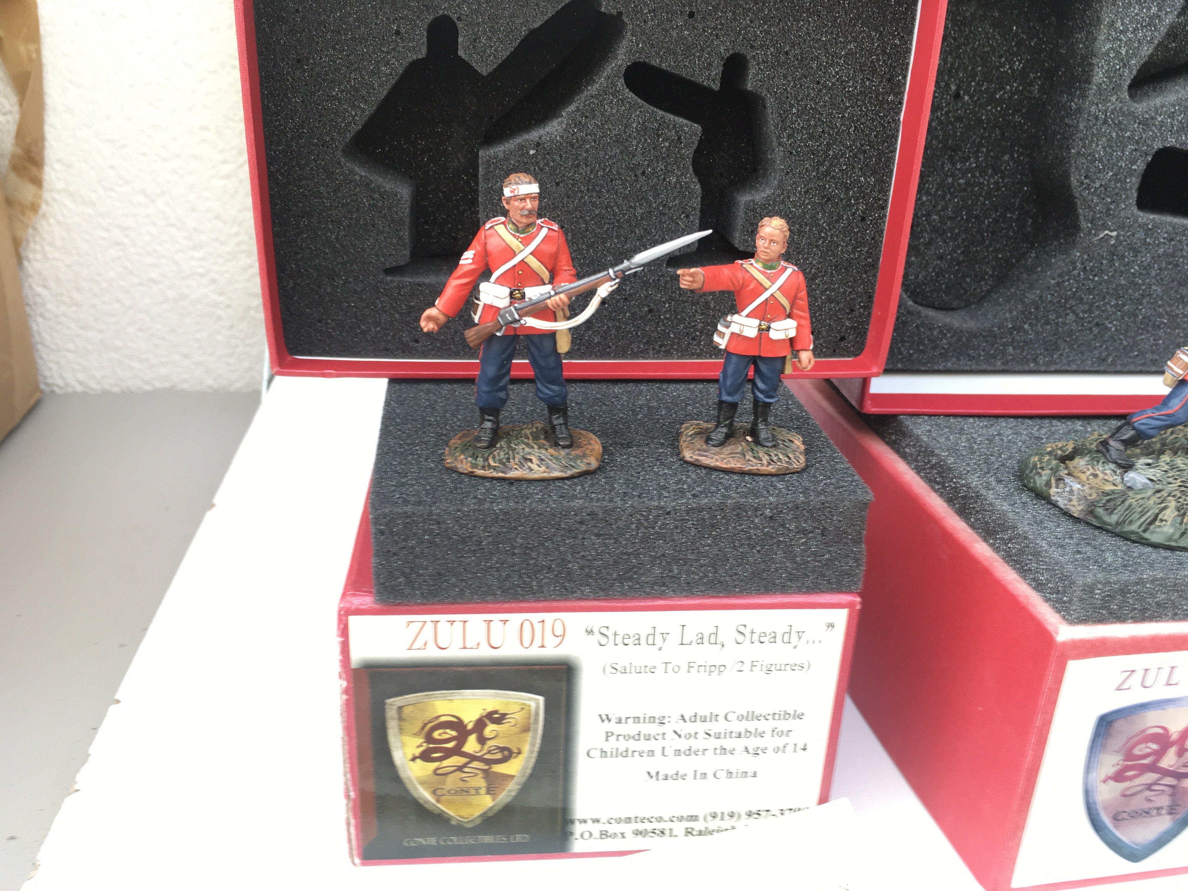 3x boxed metal Minature military figures by Conte Collectibles in the Zulu series. Includes Zulu 005 ..Zulu 013 and Zulu 019. No reserve