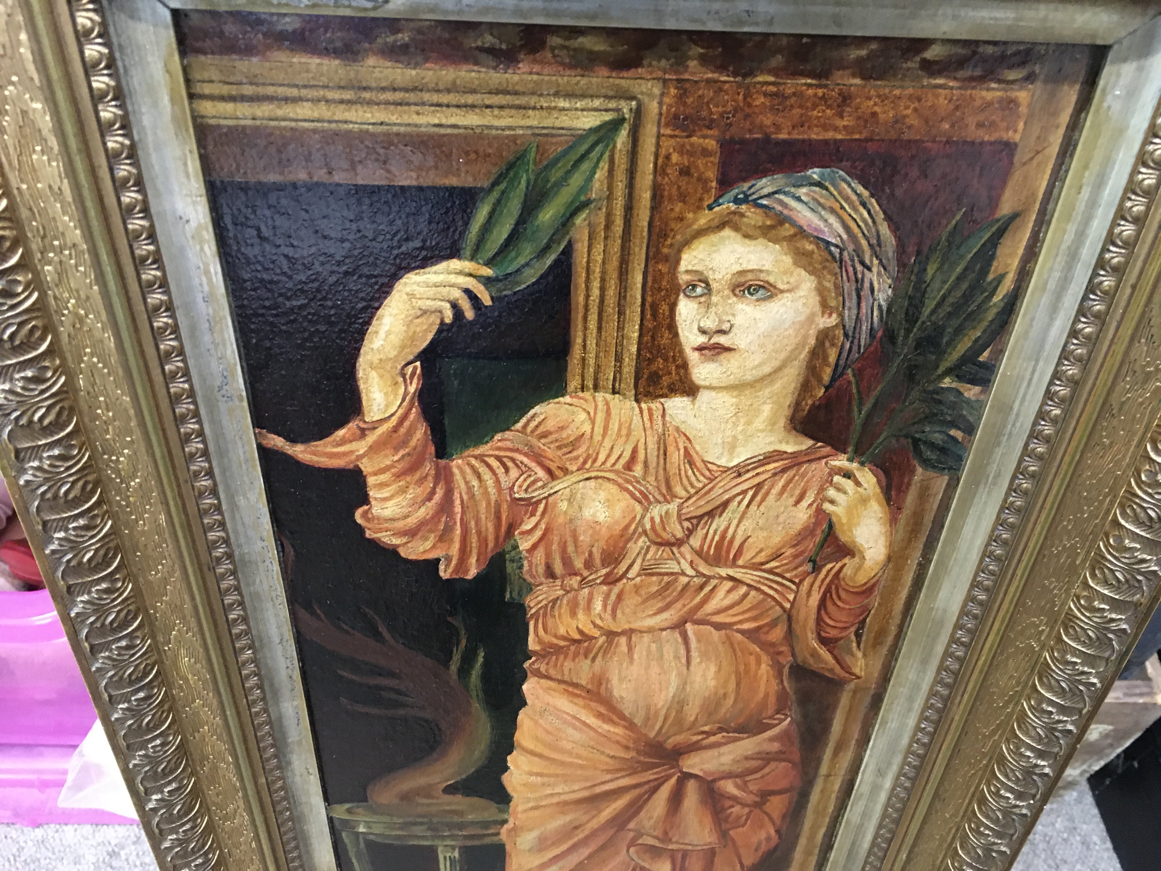 An oil on board by K T Jackson after Sir Edward Burne - Jones Sibylla Delphica in original frame. Manchester art gallery 1901
