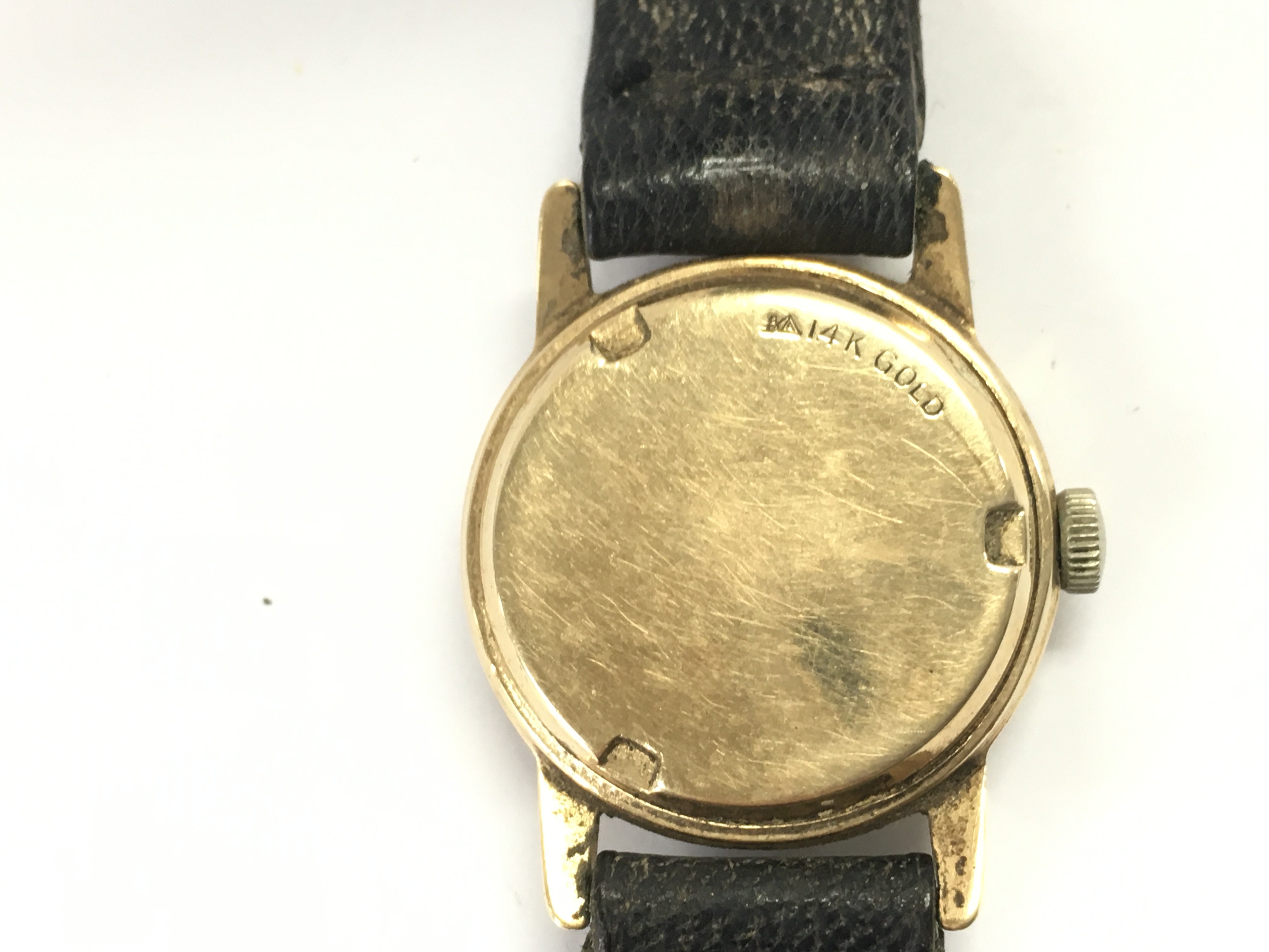 A gents 1940s 14ct gold cased Crawford watch. Winds and runs. 35.28g total weight
