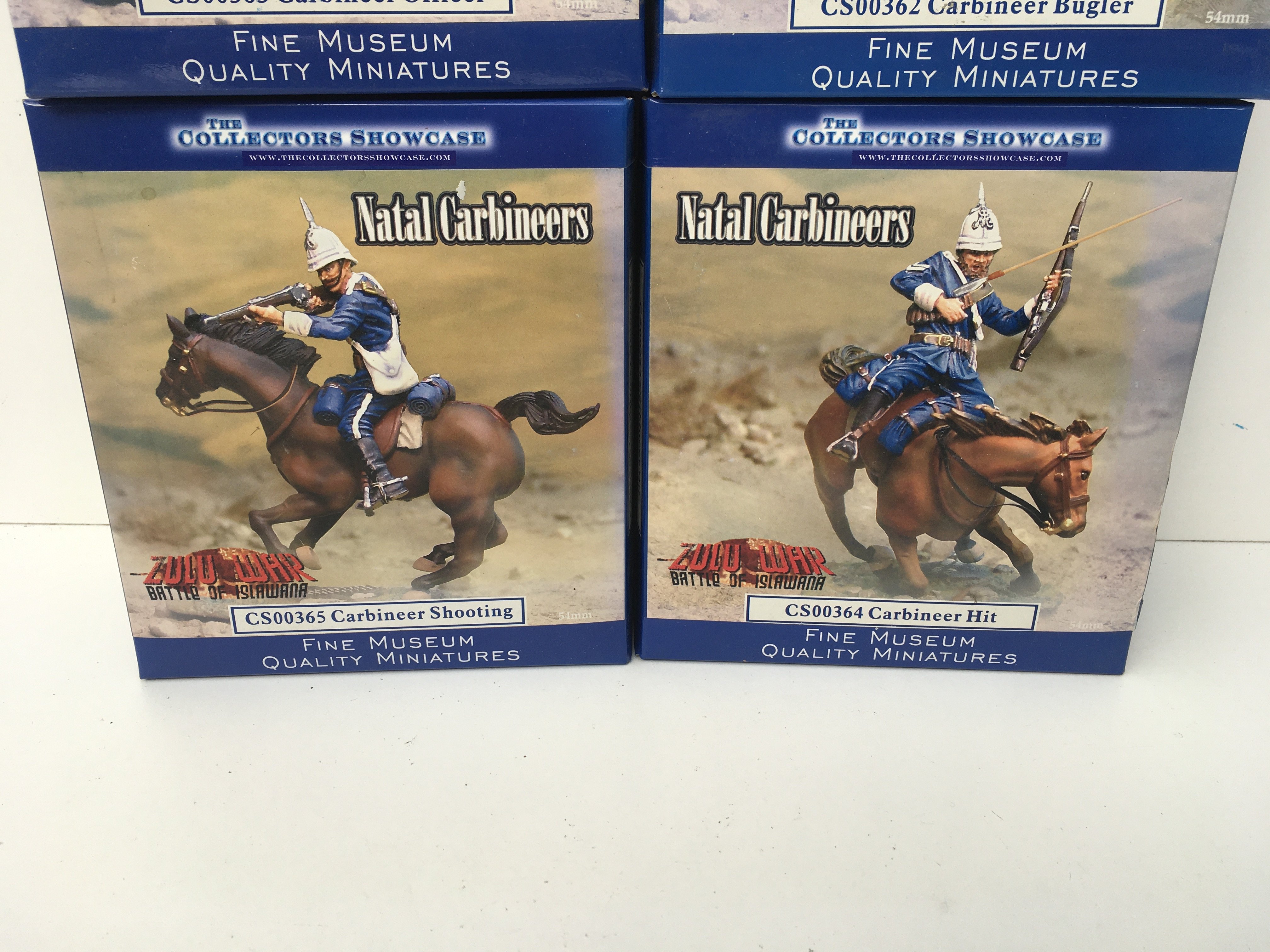 A collection of 4x boxed 54mm military models by The Collectors Showcase . Featuring Natal Carbineer.. CS00362..CS00363..CS00364..CS00365. No reserve