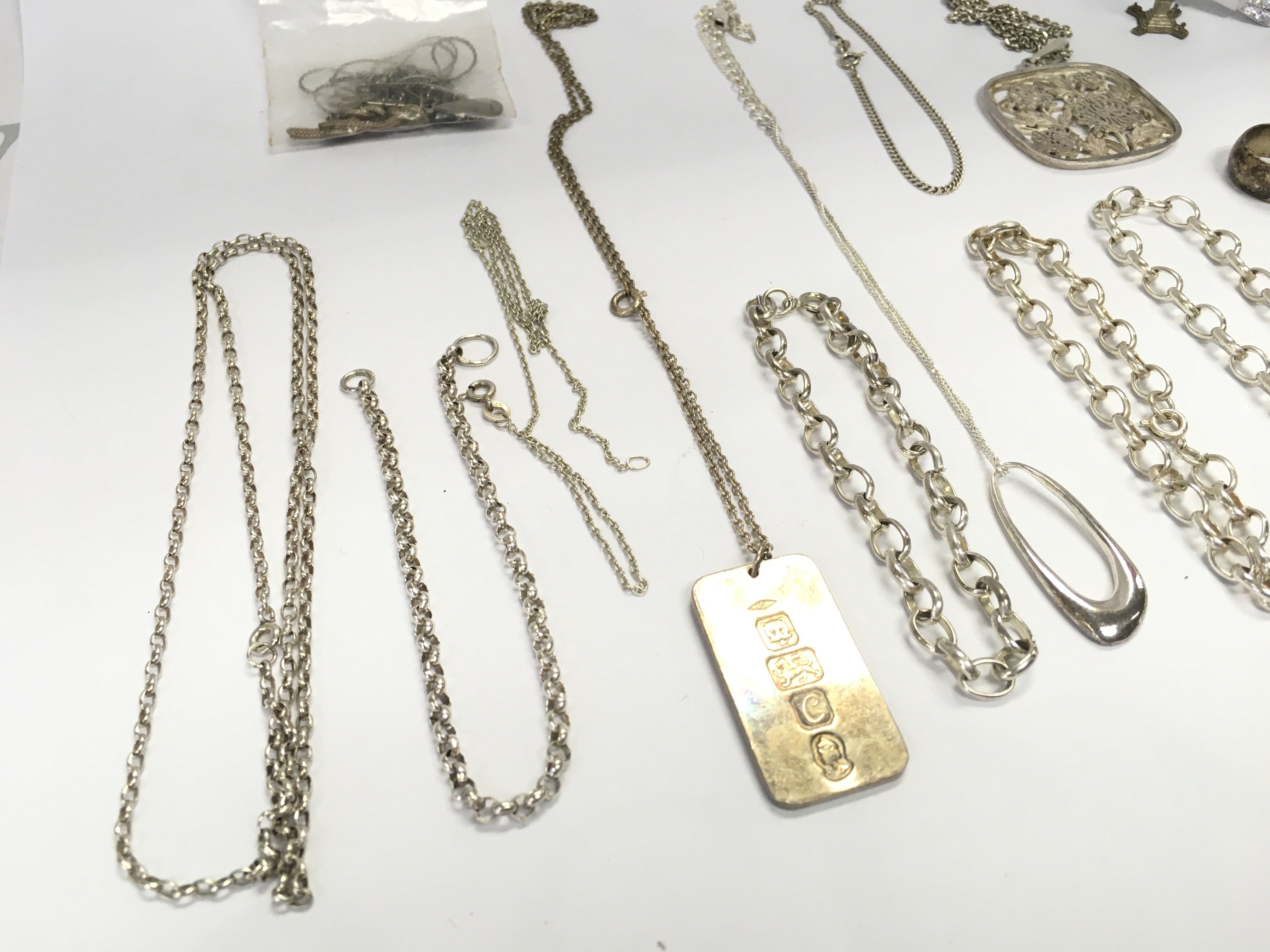 A collection of assorted silver jewellery items including chains bracelets etc Approx 155g Postage B