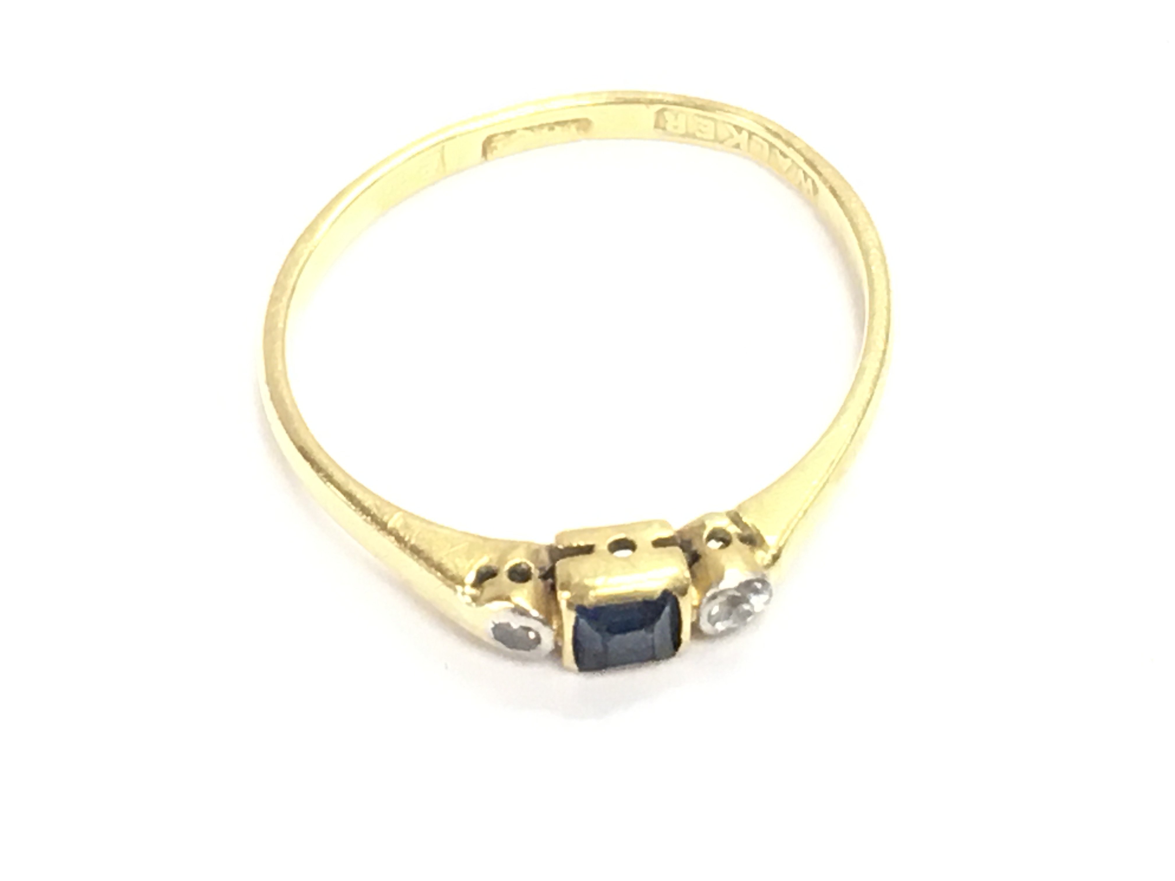 An 18ct sapphire and diamond ring size J 1/2 1.38g. Note ring is out of shape.